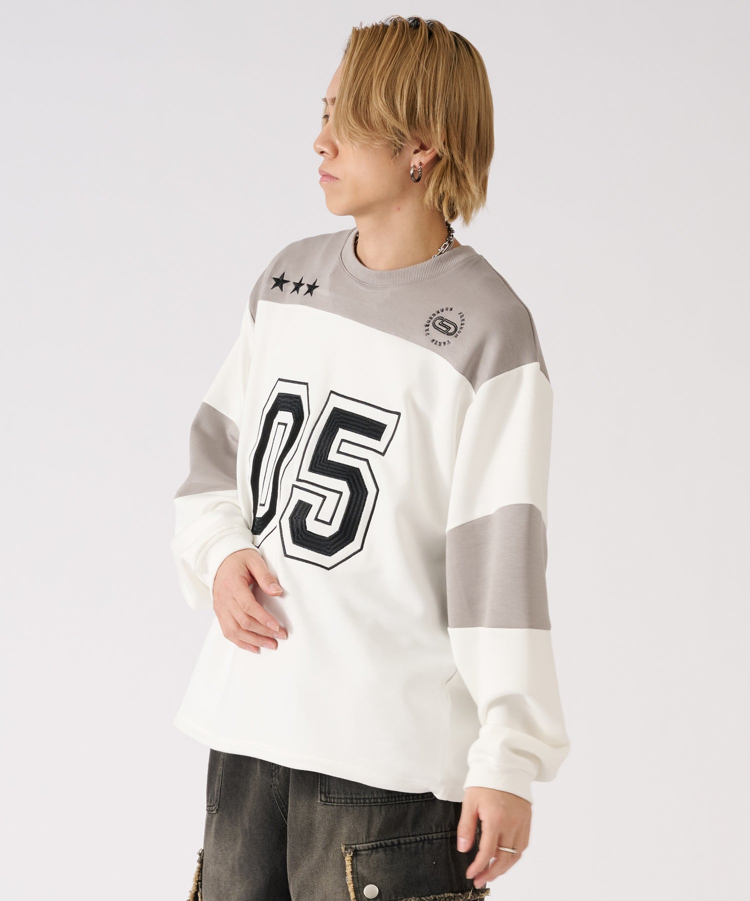 その名の通りホッケーのユニフォームの様なデザインが特徴で、袖口はリブで裾はドローコードが付属しているので絞って着用することも可能です♪