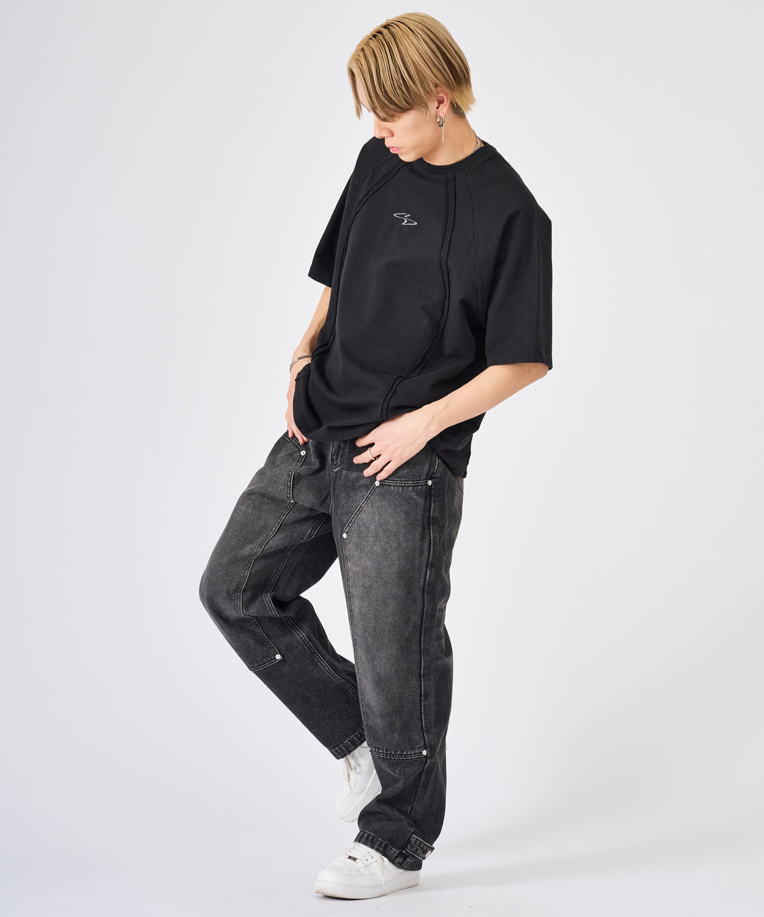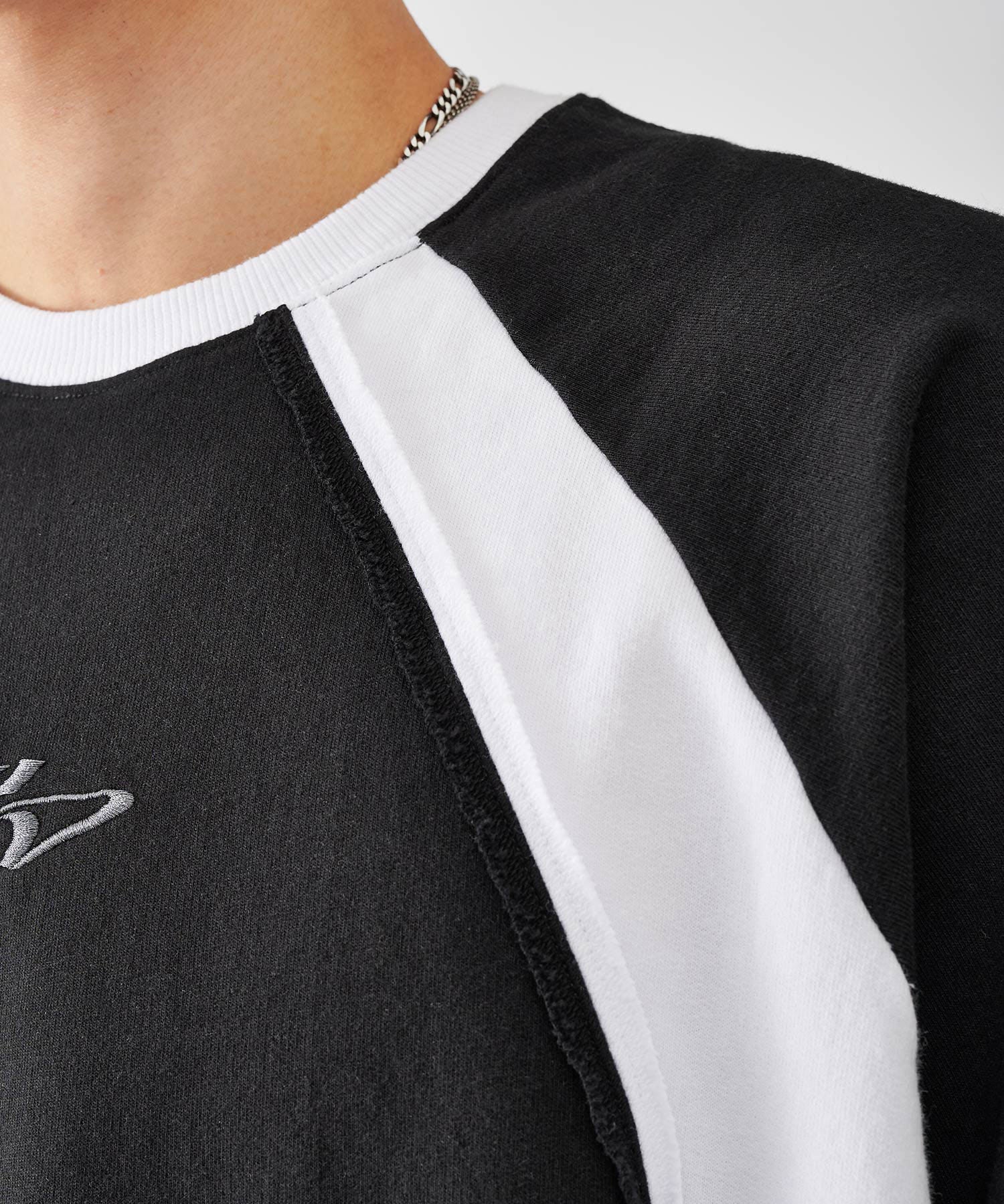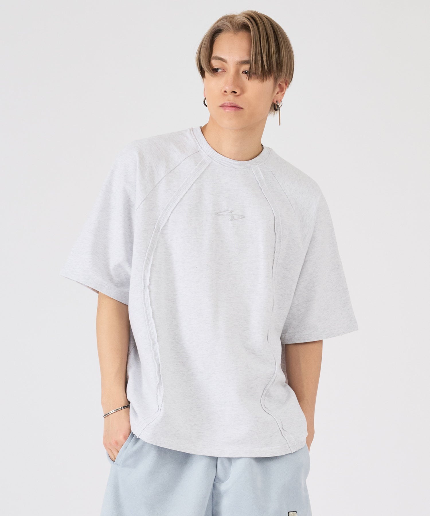 コットン素材のミニ裏毛は、Tシャツとしてはしっかりした素材で、薄めのトレーナーと言ったイメージの春から使える半袖アイテム♪