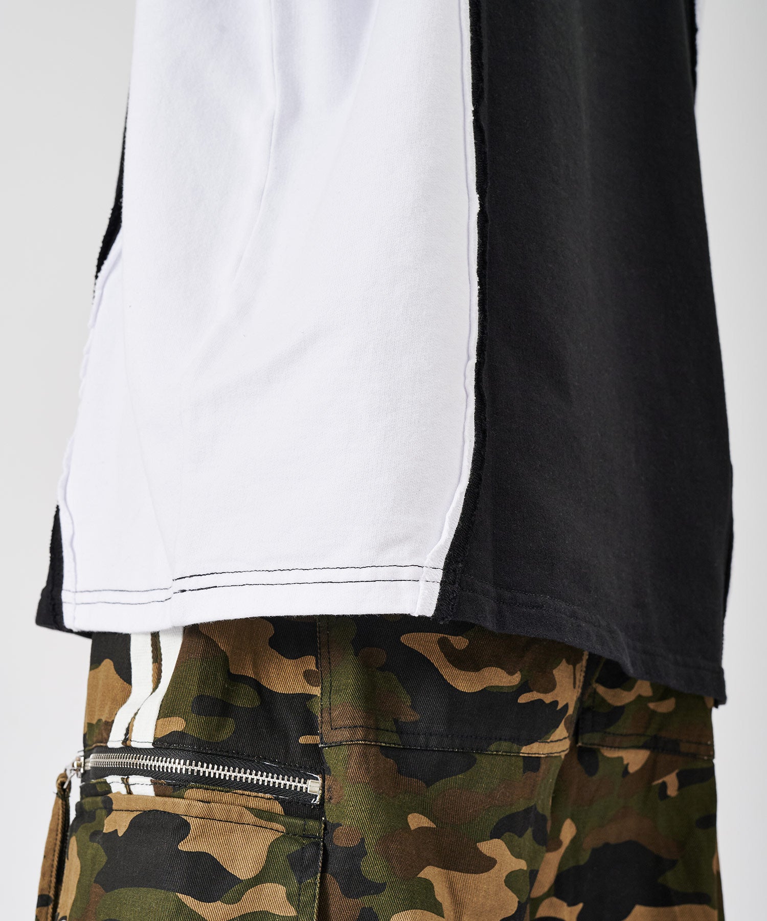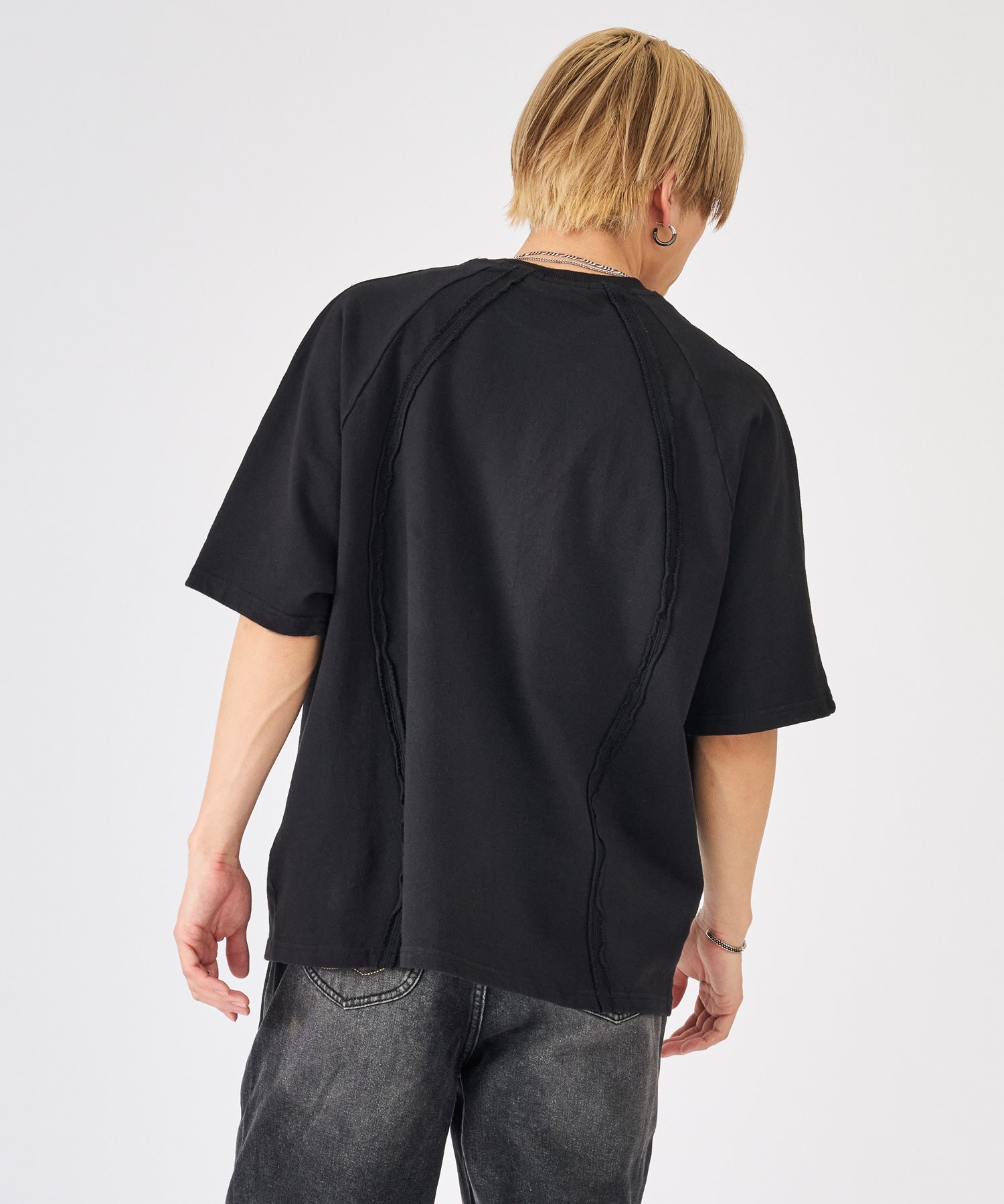 ウェーブ状の切り替えが印象的なデザインで、その切替部分は生地の始末をしないカットオフ仕上げが特徴的☆