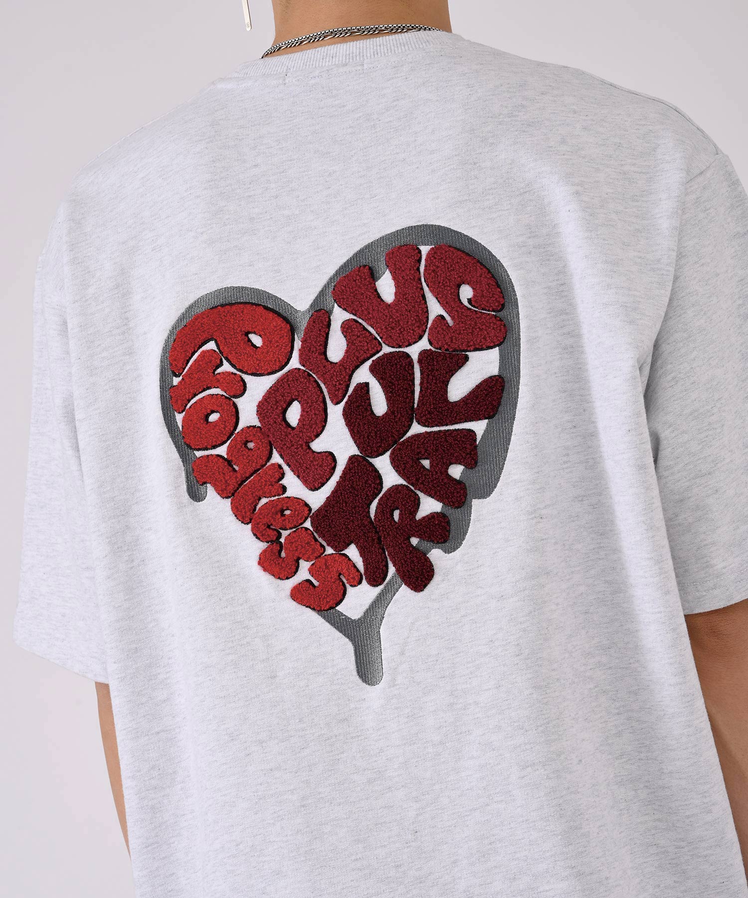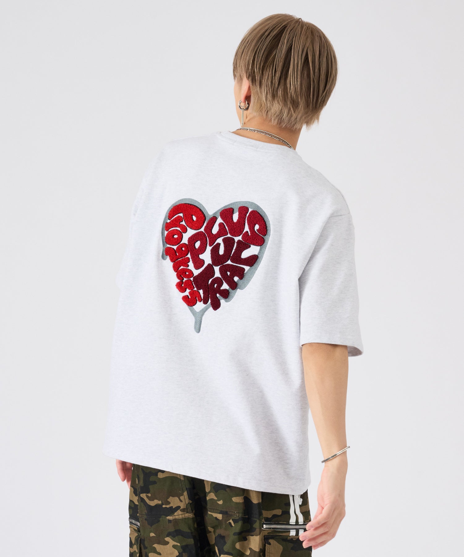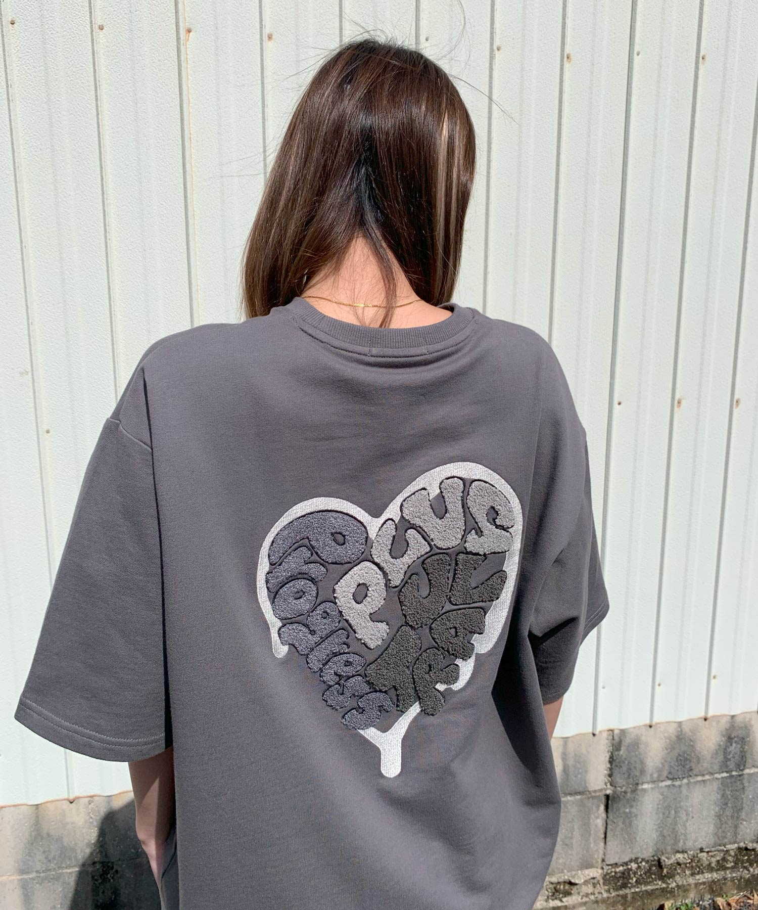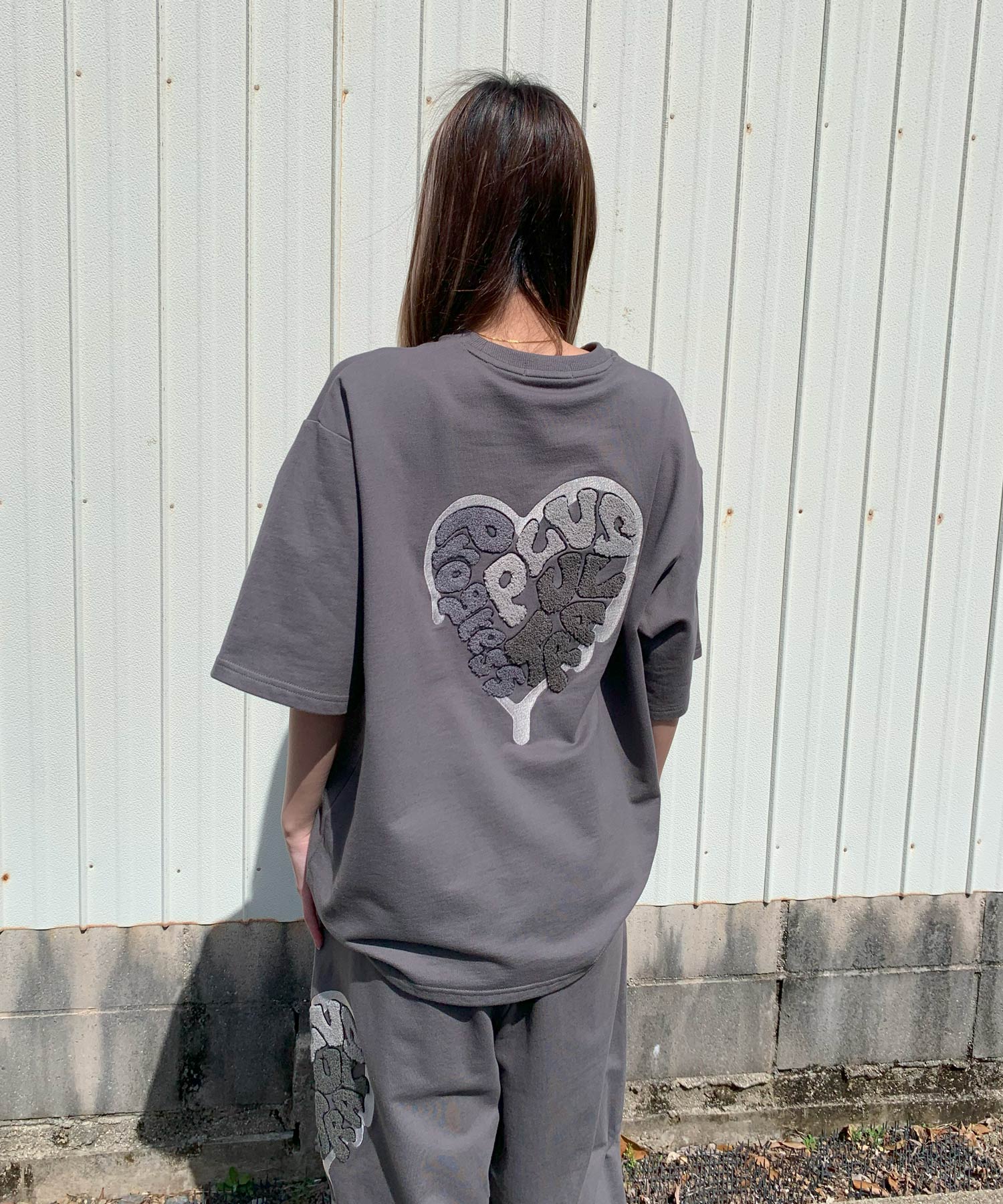 ふわふわのサガラ刺繍でロゴをハート型にかたどった背中の文字は、グラデーションになっていて可愛い( *´艸`)