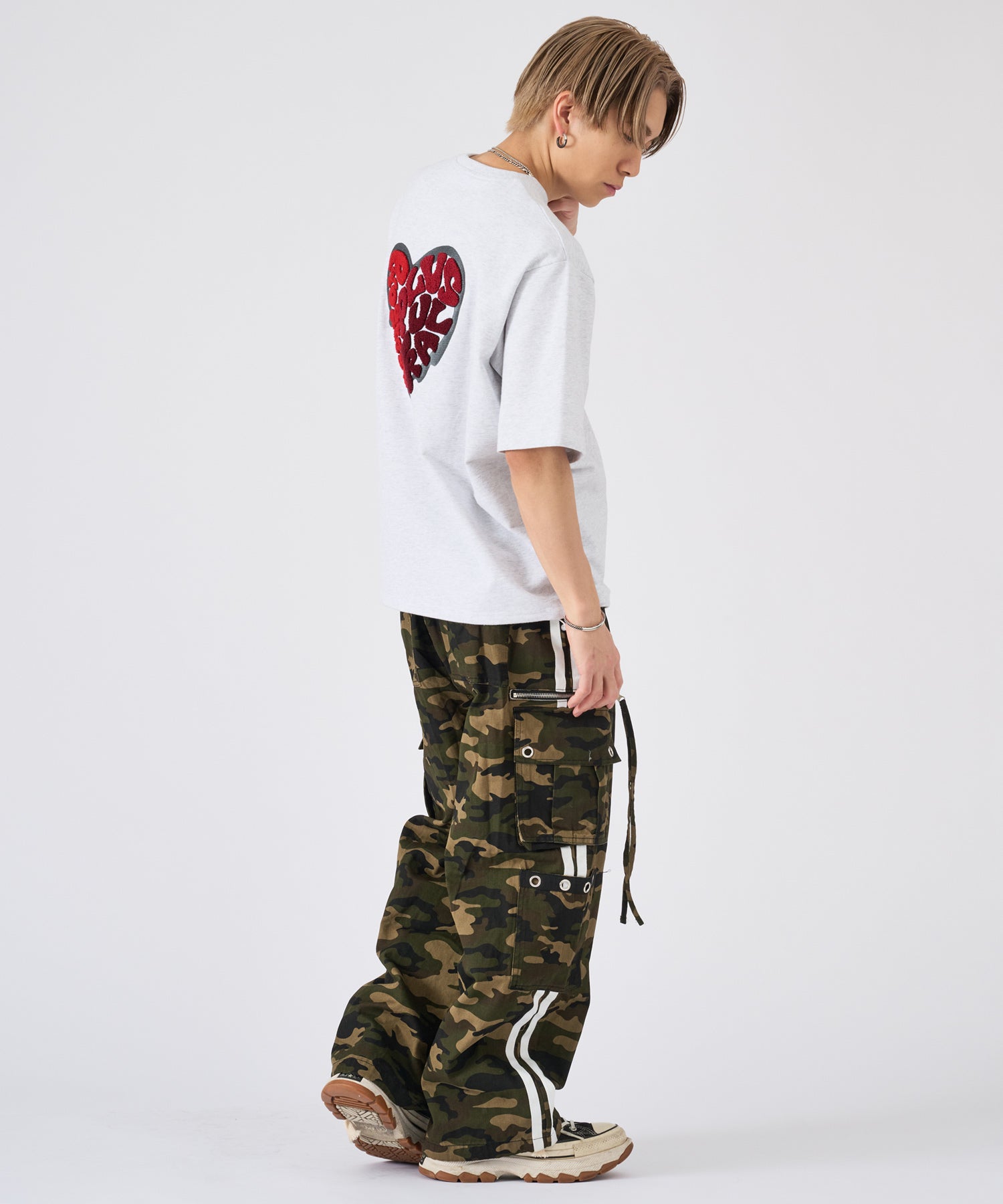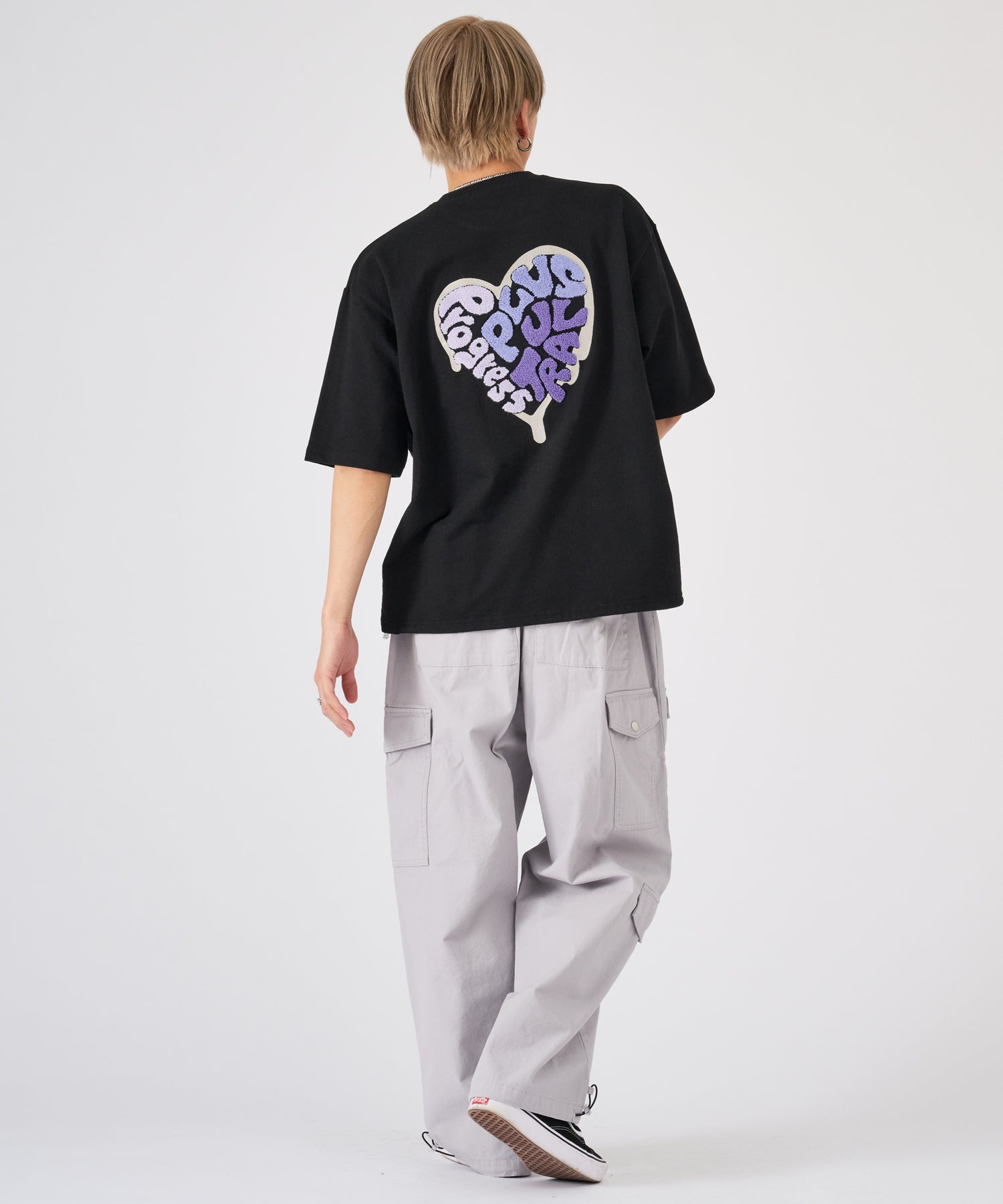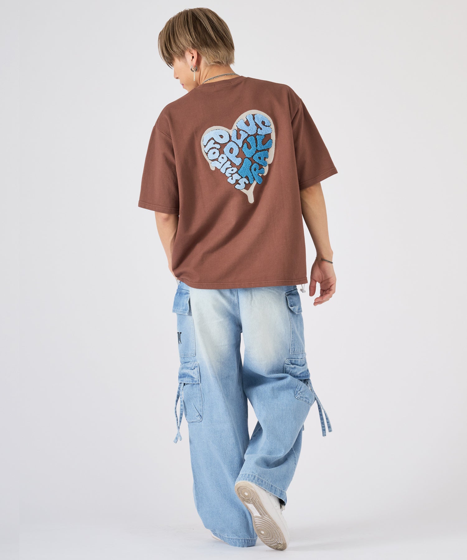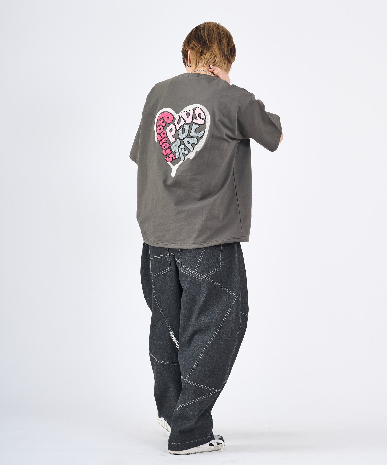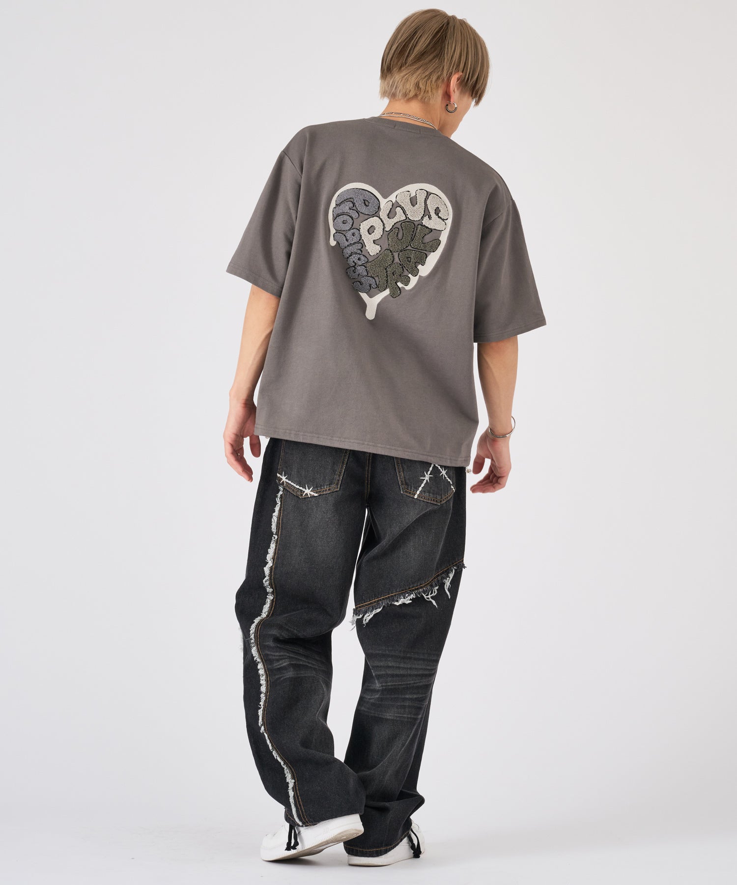 ふわふわのサガラ刺繍でロゴをハート型にかたどった背中の文字は、グラデーションになっていて可愛い( *´艸`)