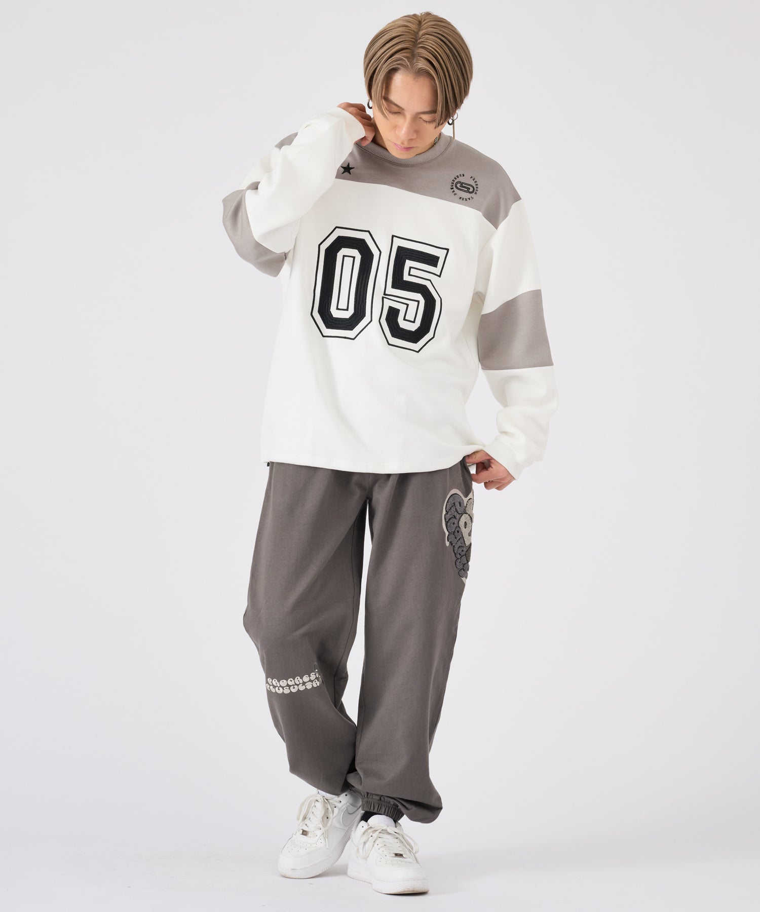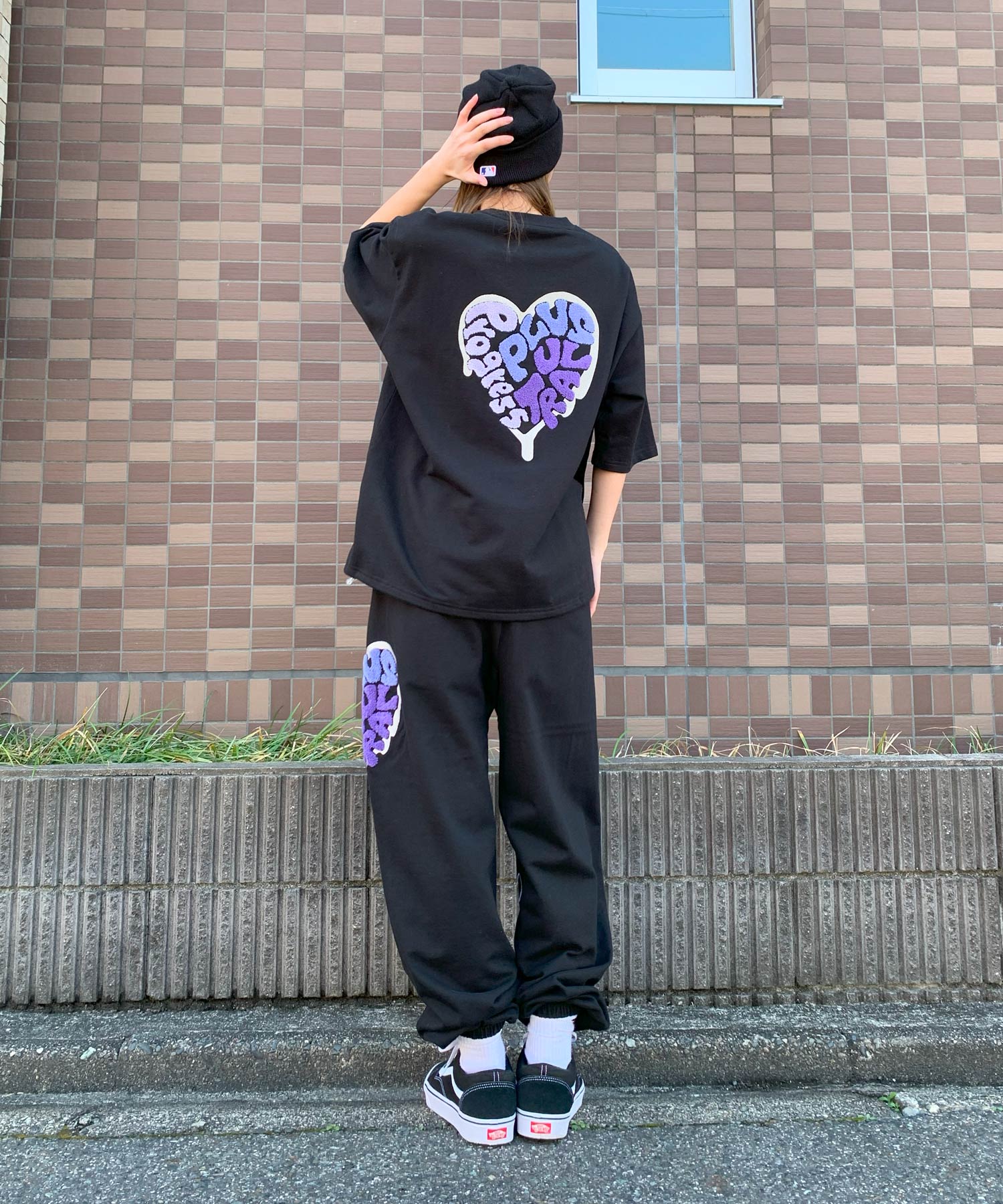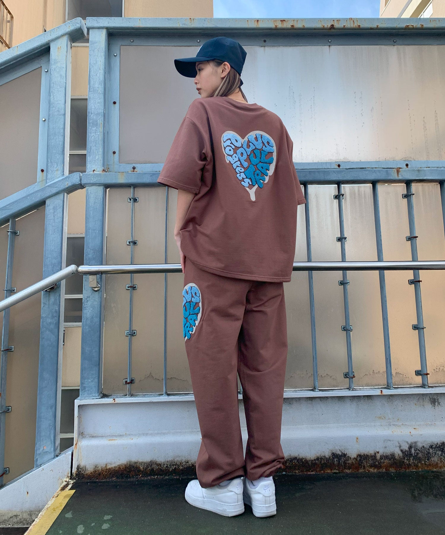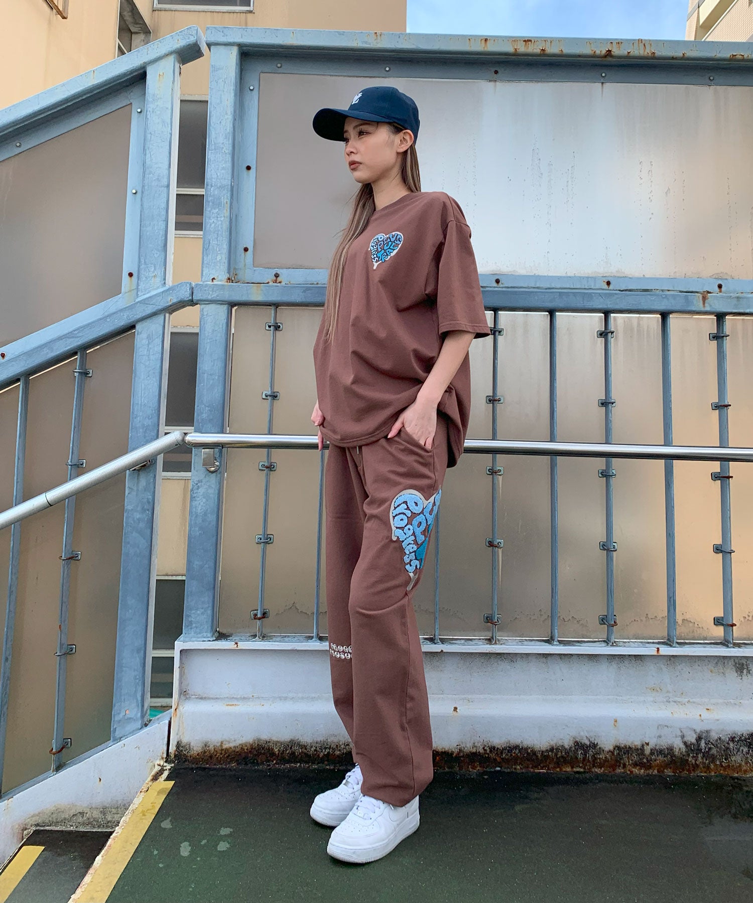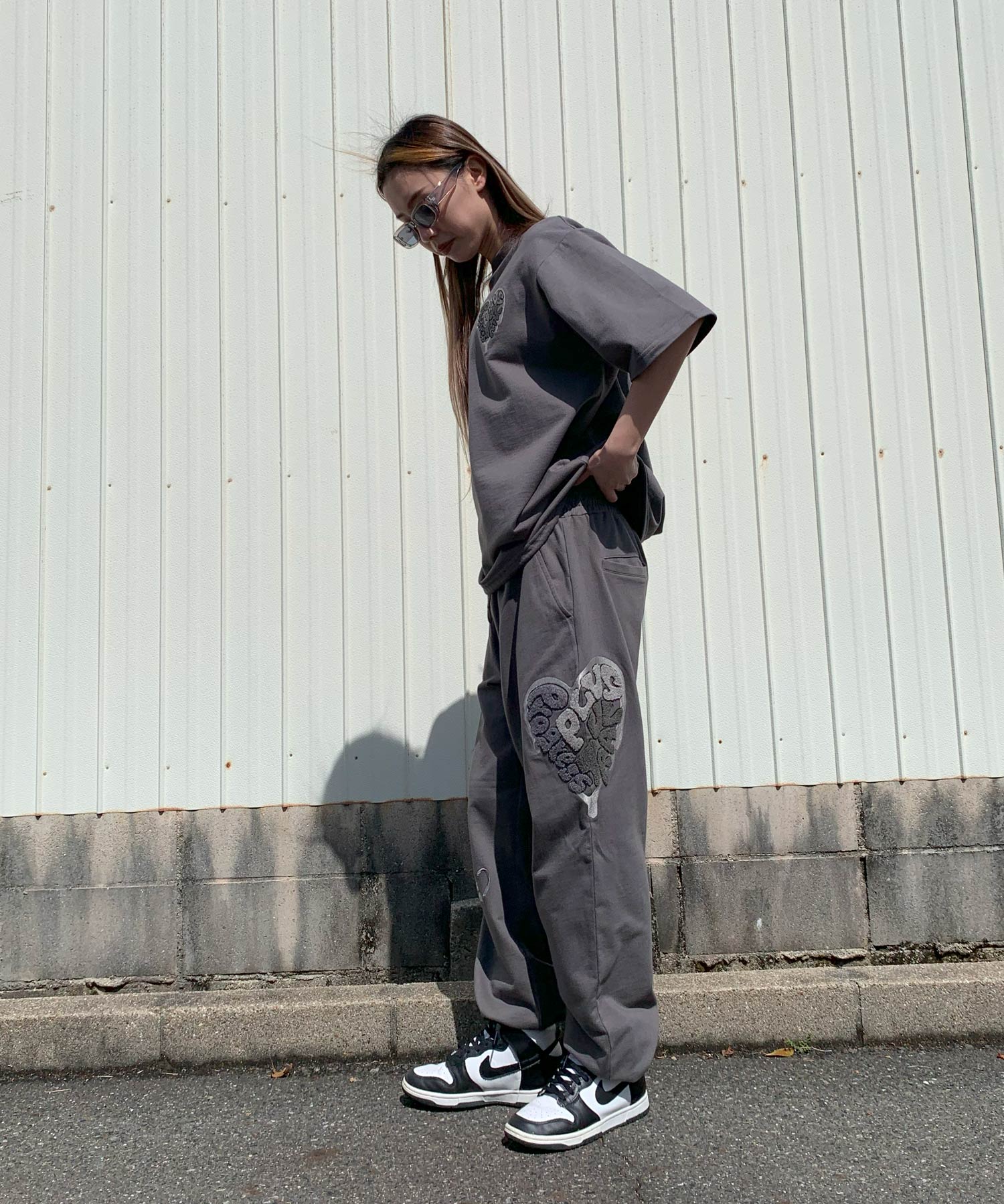 同素材のTシャツとセットアップスタイルが楽しめカップルコーデにピッタリなアイテムです