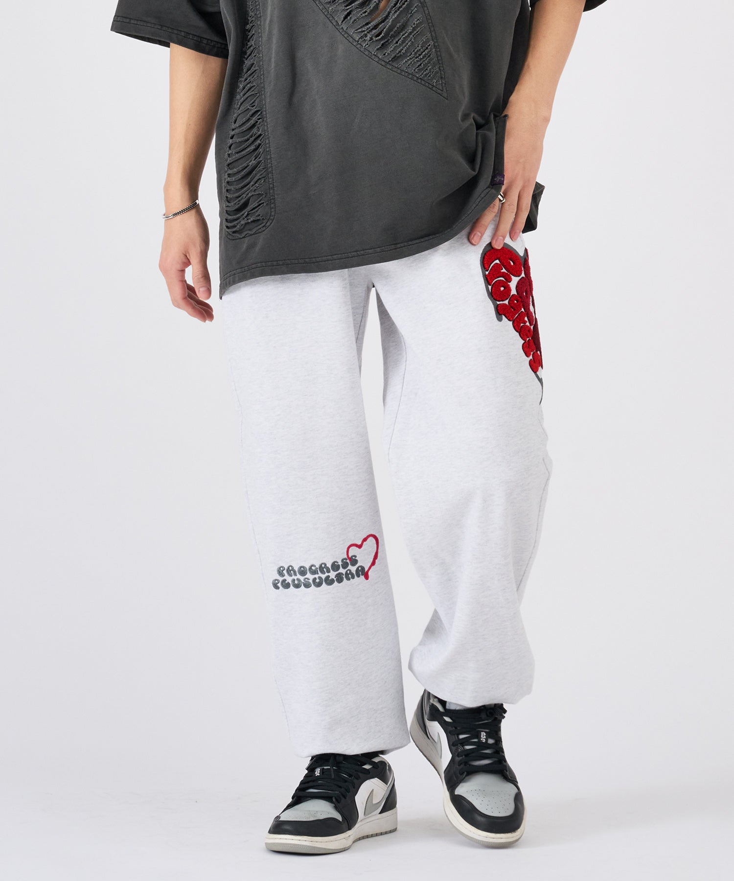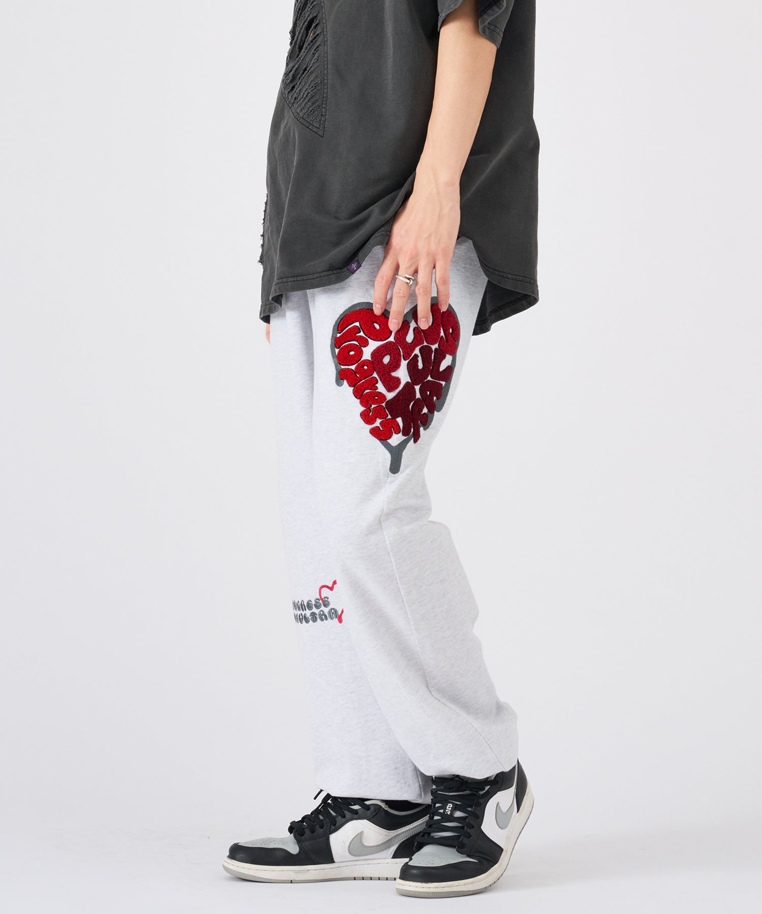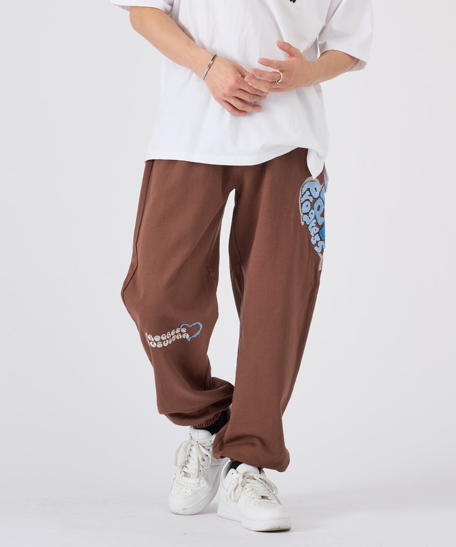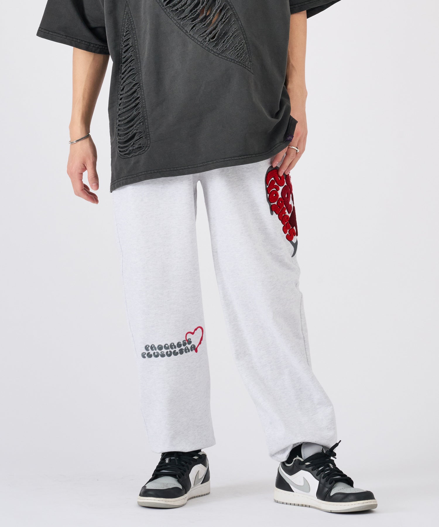 左のポケット下の柄は、ふわふわのサガラ刺繍のロゴをグラデーションカラーでハート柄にかたどったデザインサイドに配置することで前後、サイドからも目に付くアクセントになっています