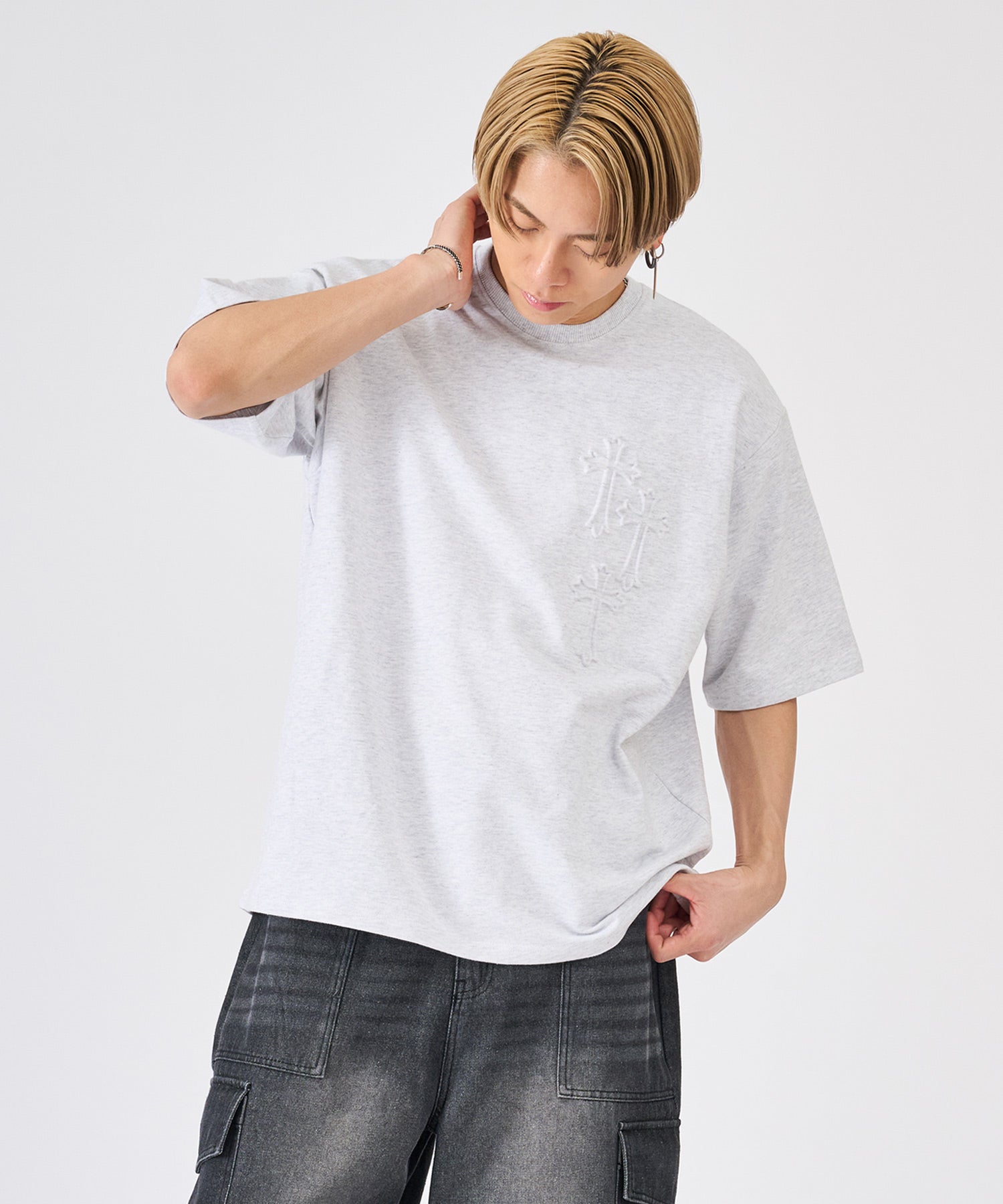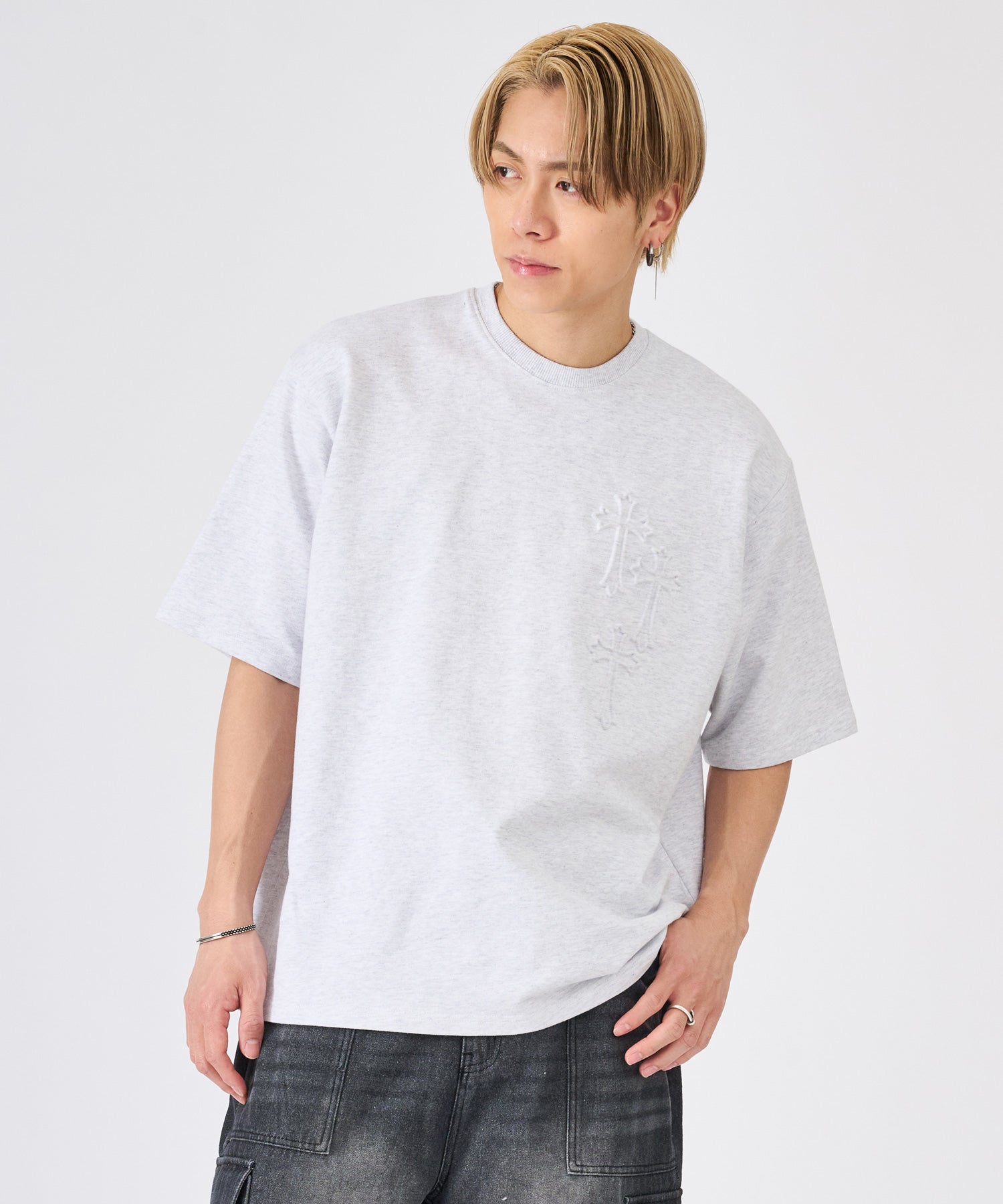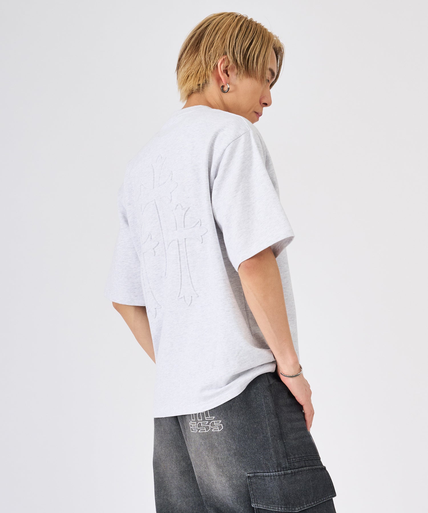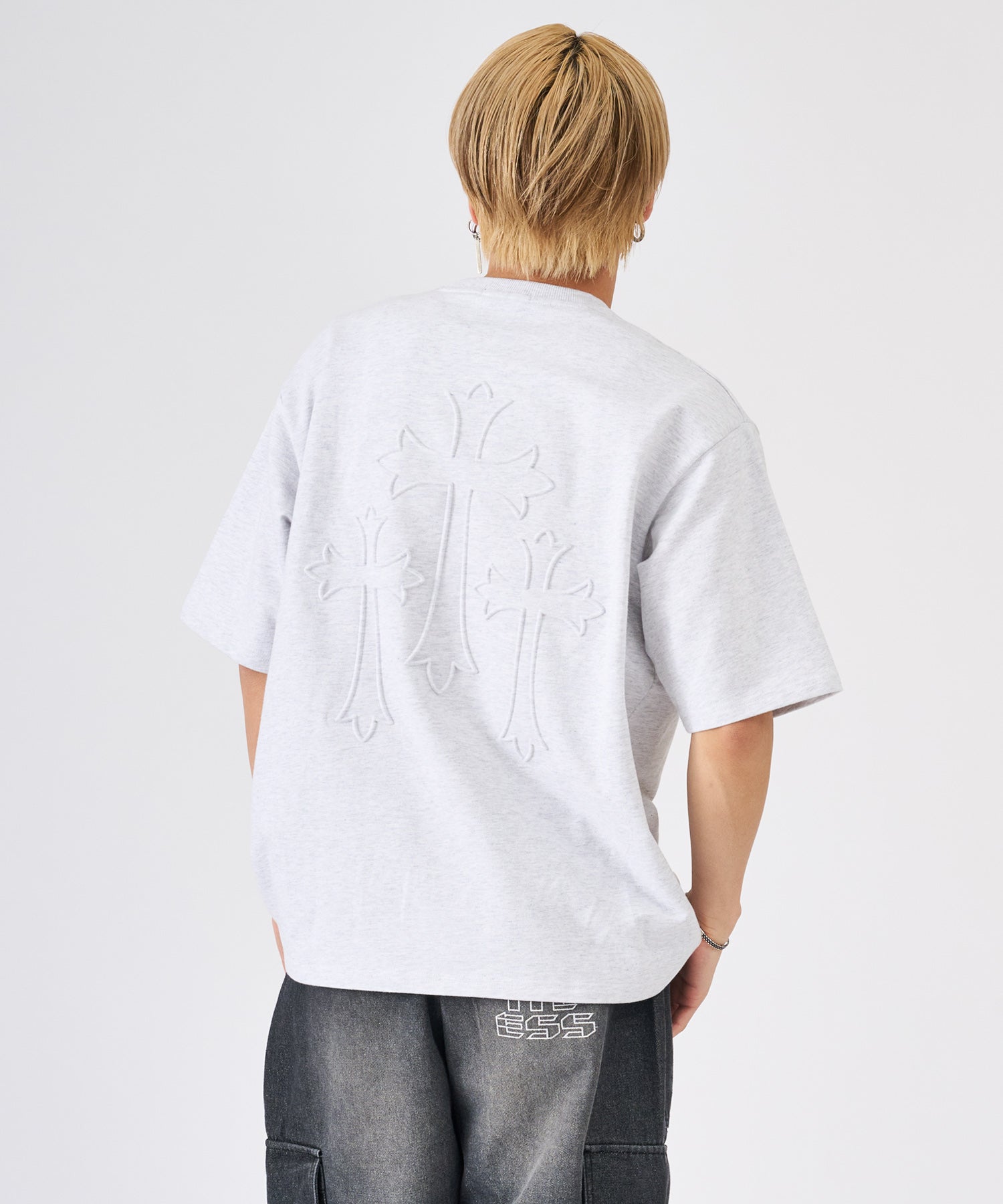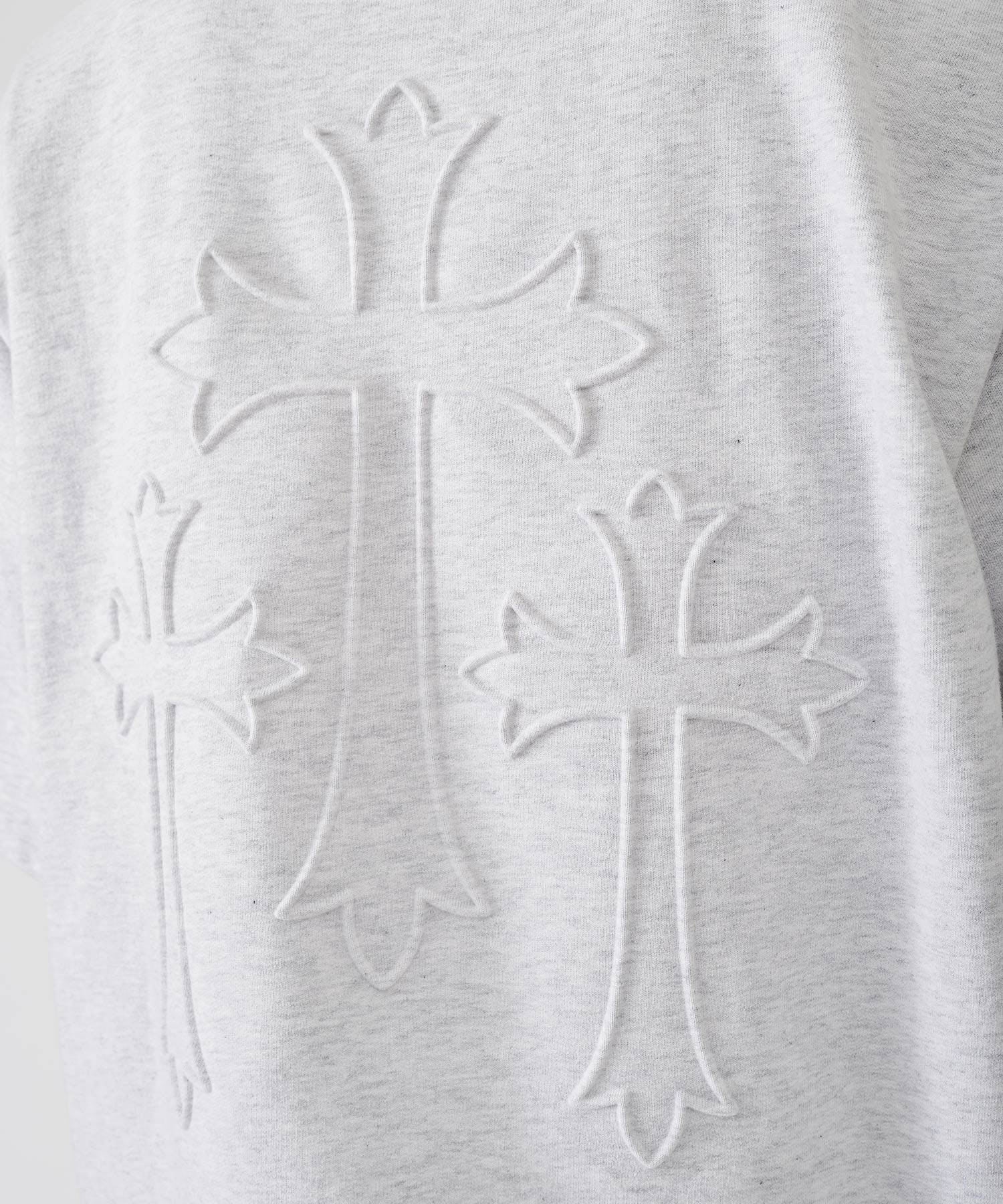 十字架をモチーフにしたエンボス加工のTシャツ☆