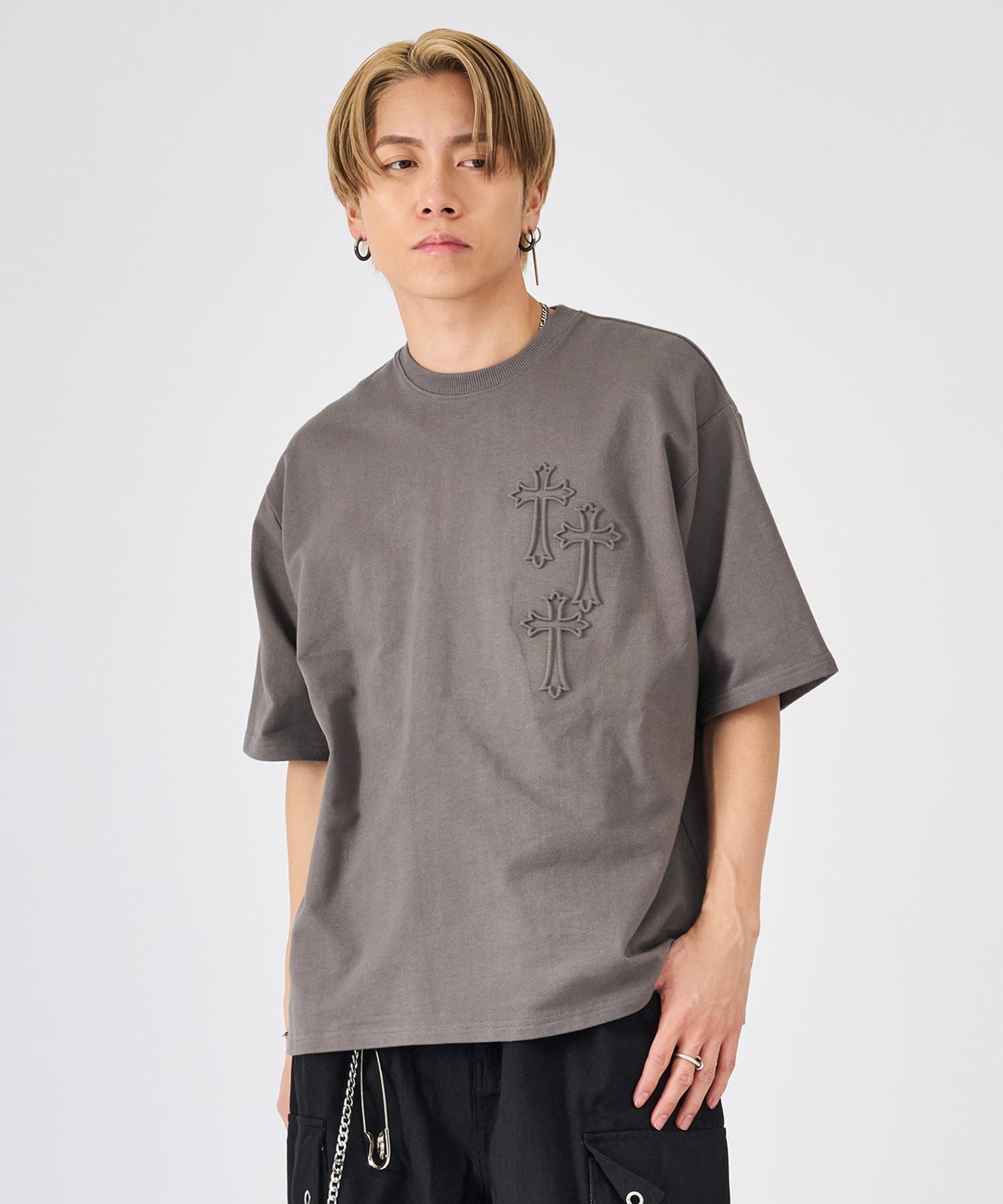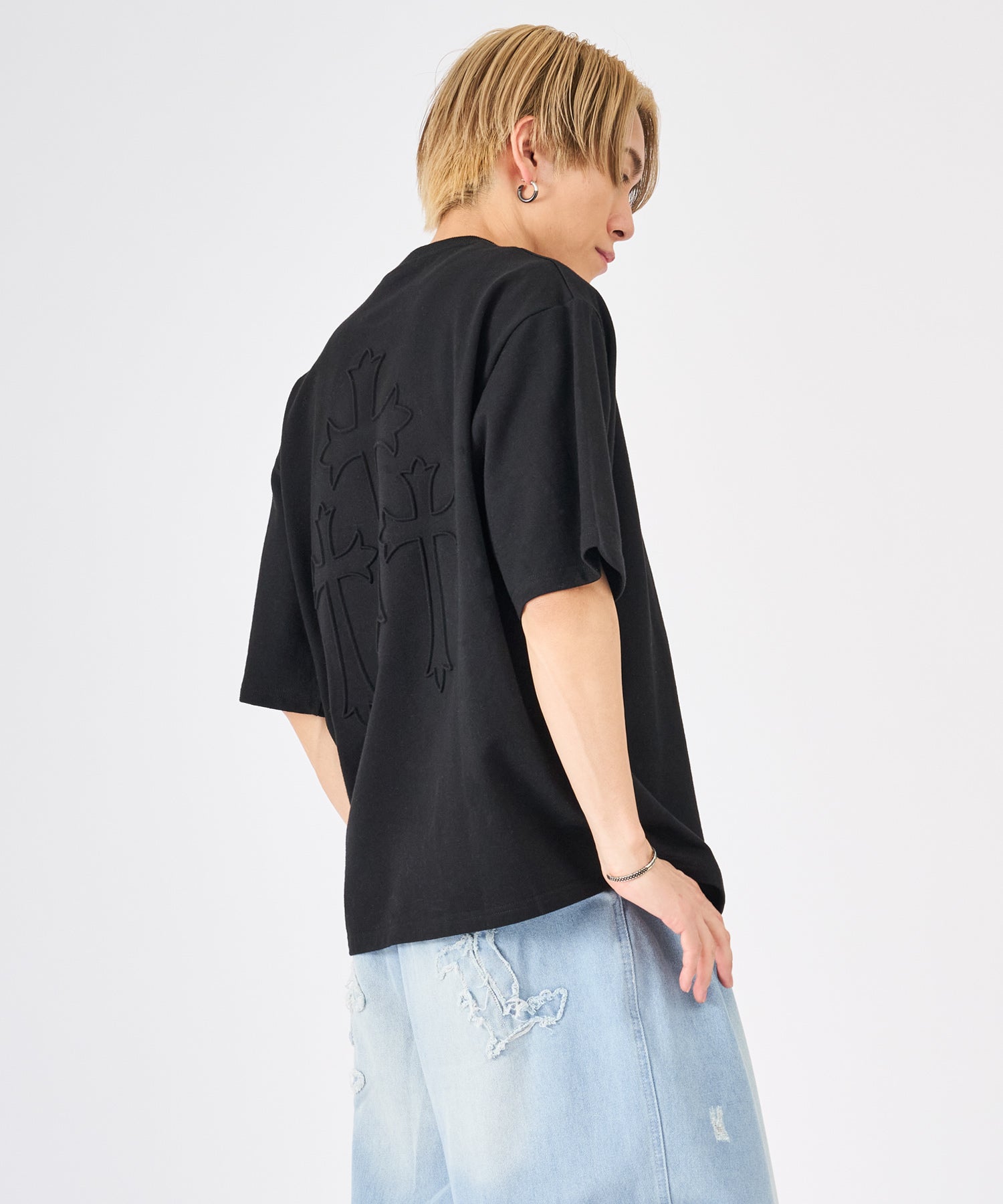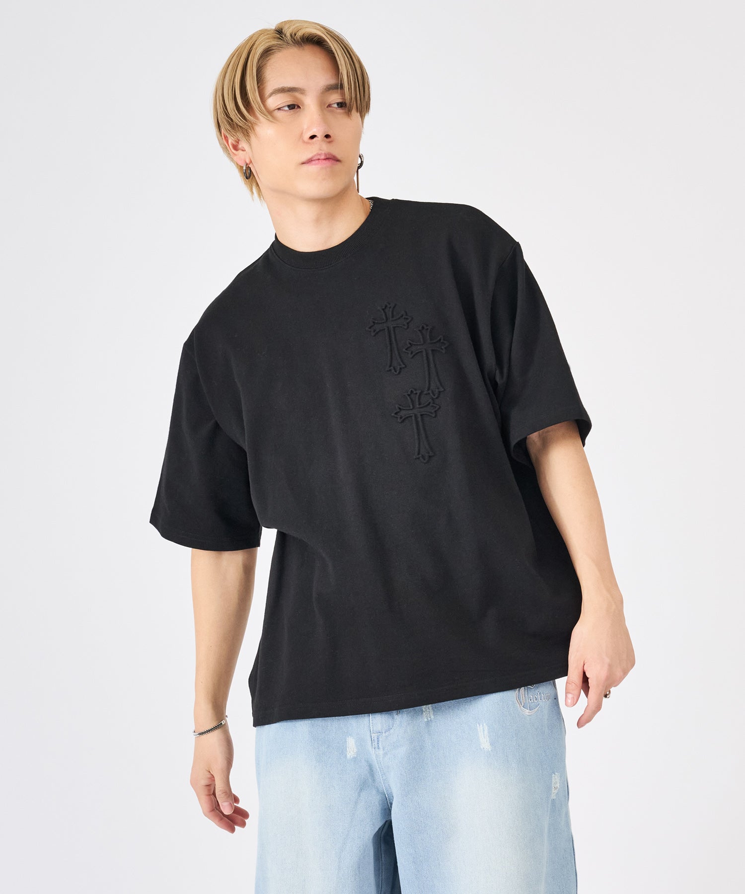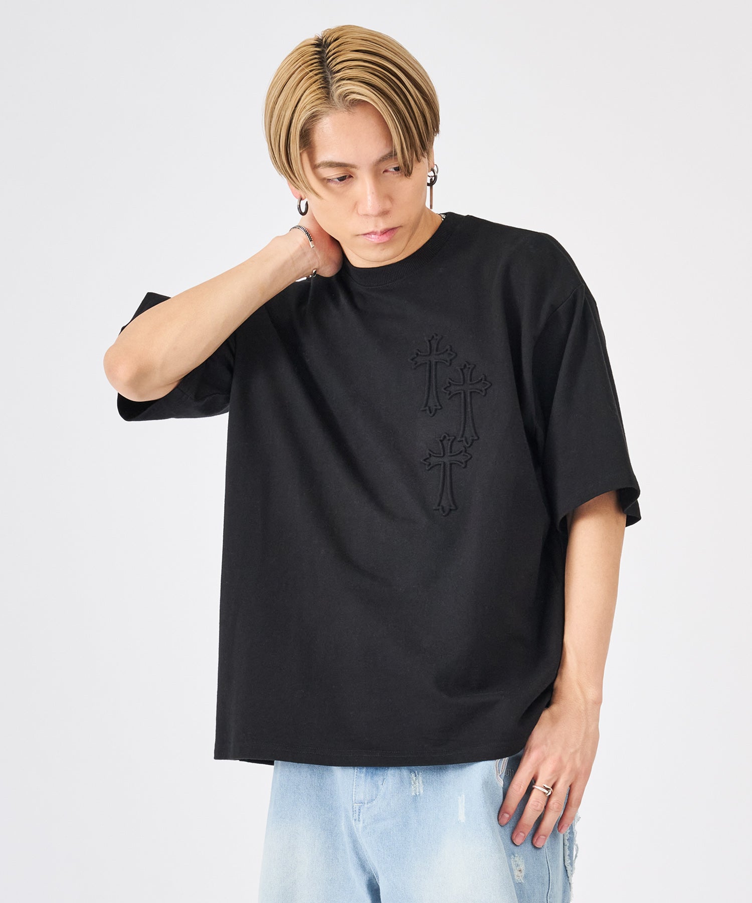 十字架をモチーフにしたエンボス加工のTシャツ☆