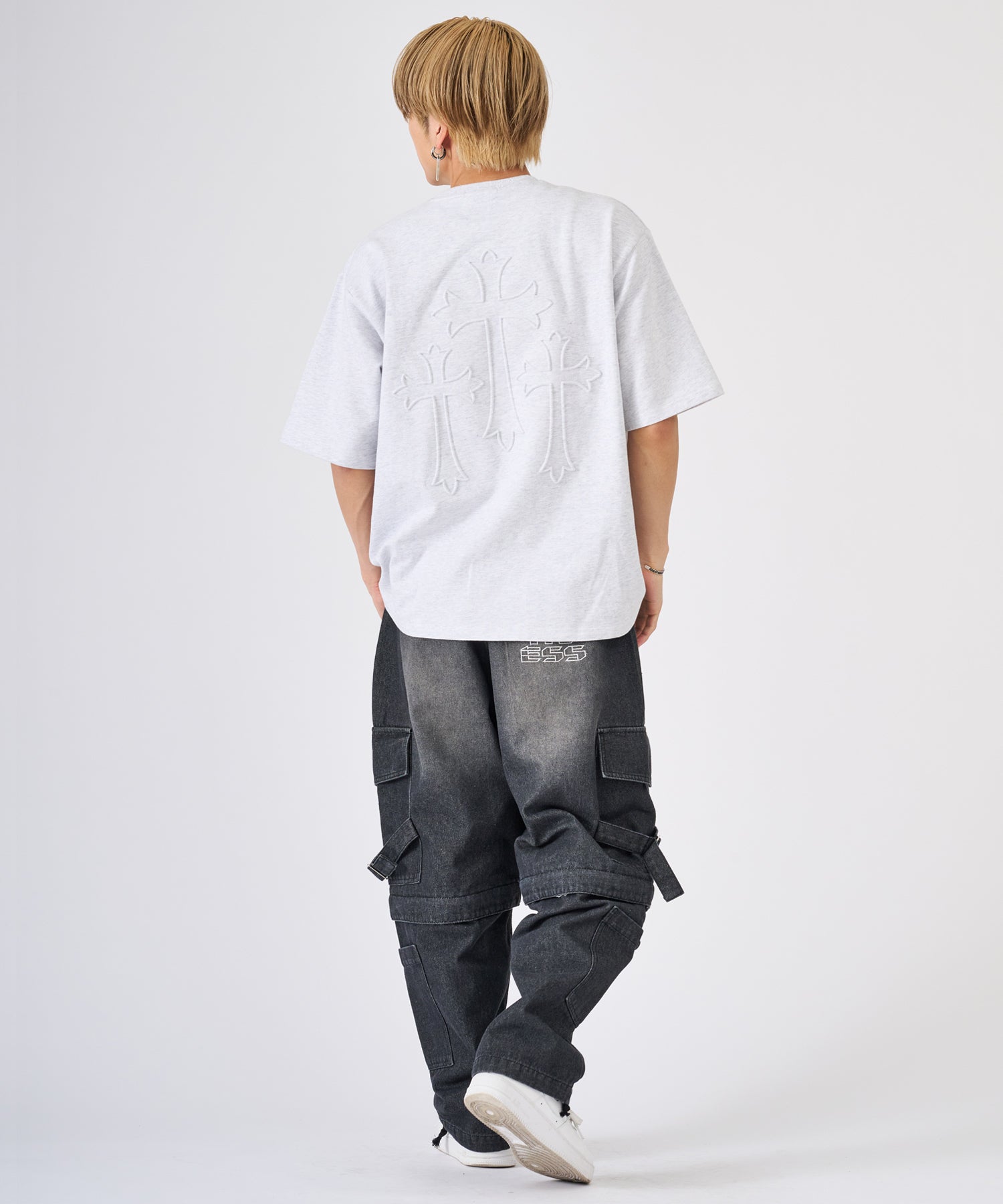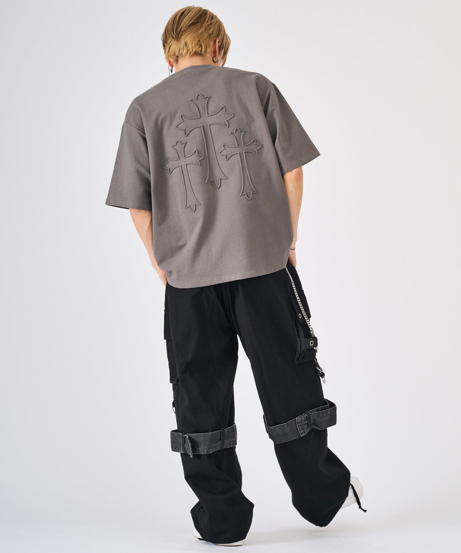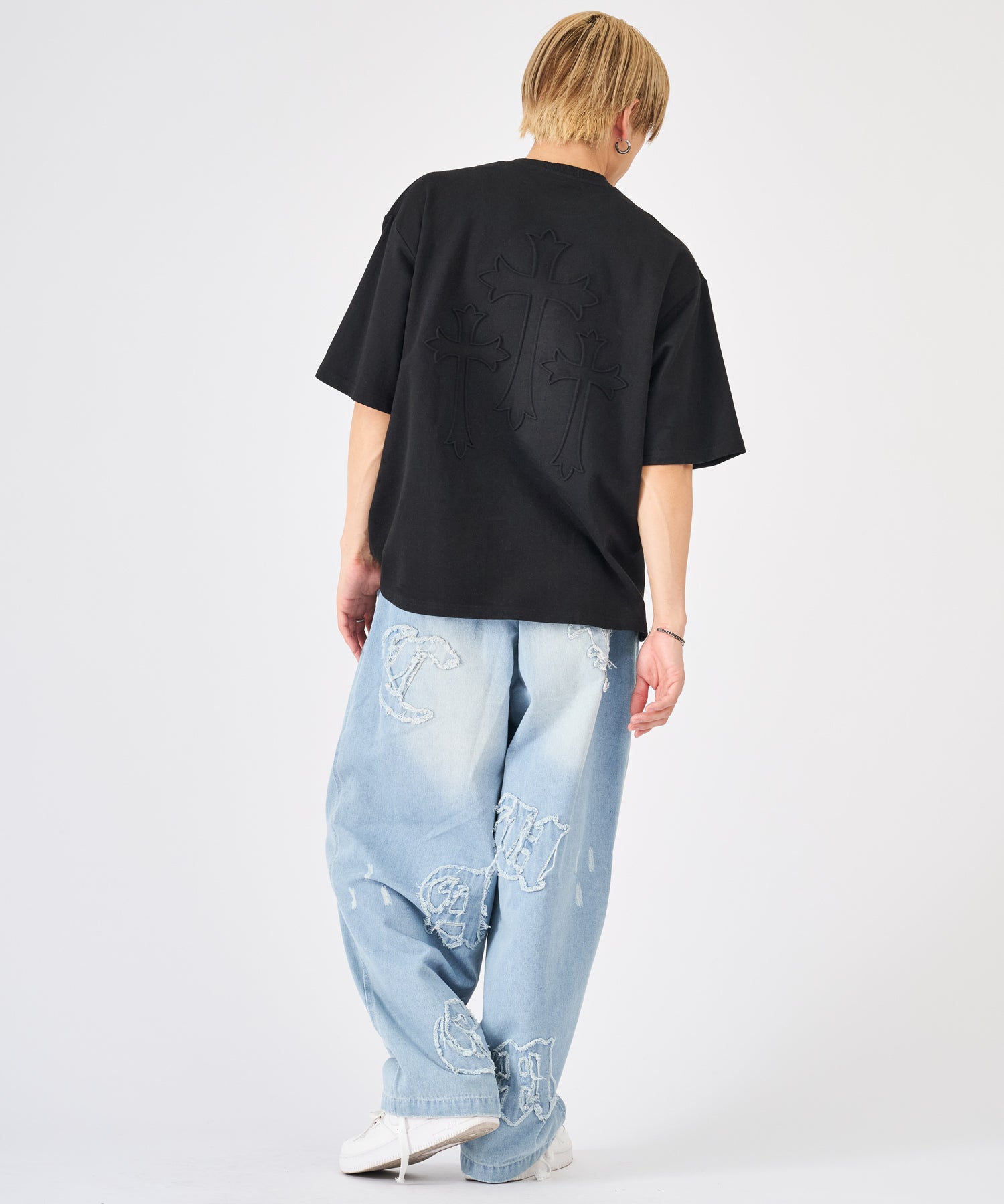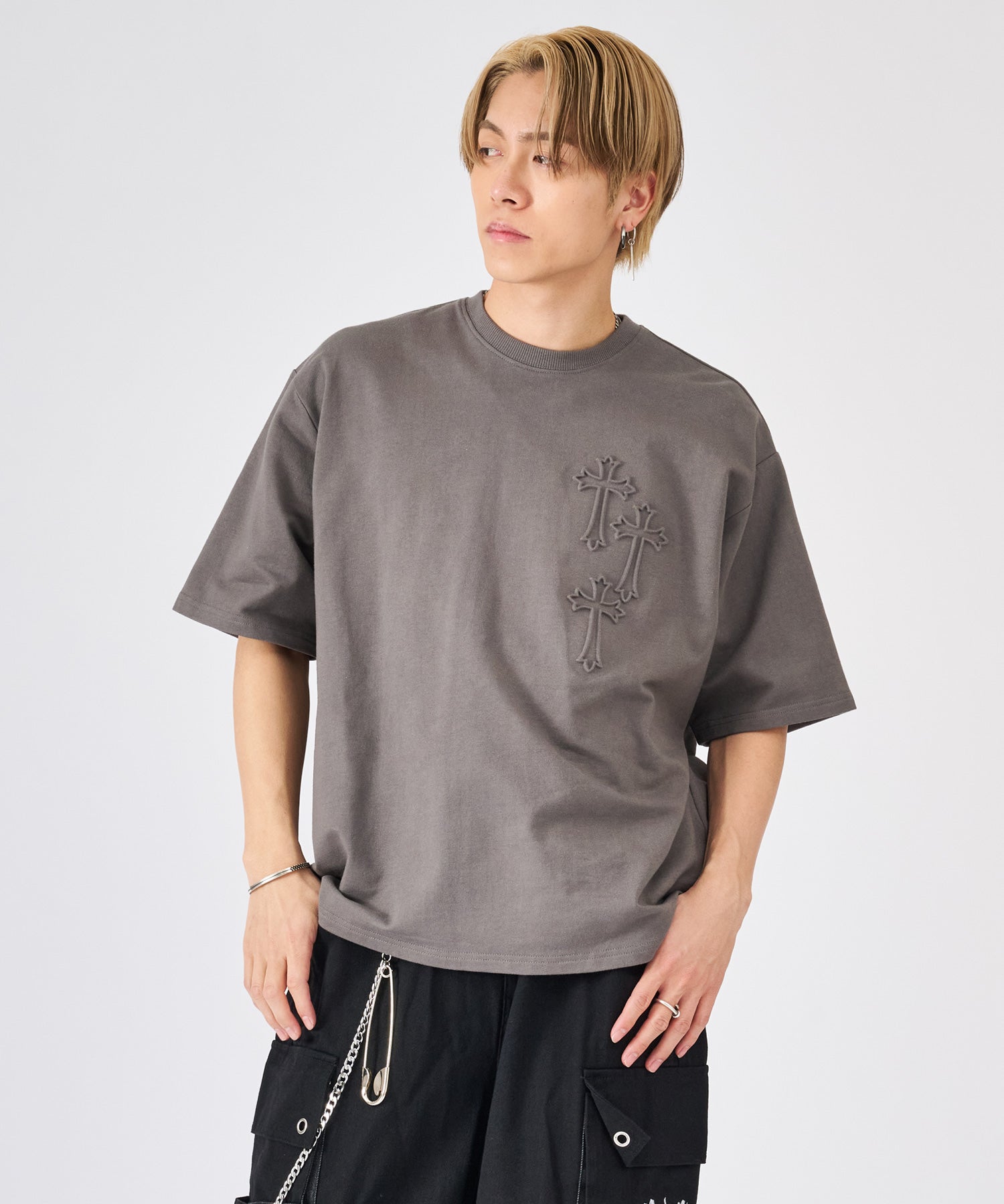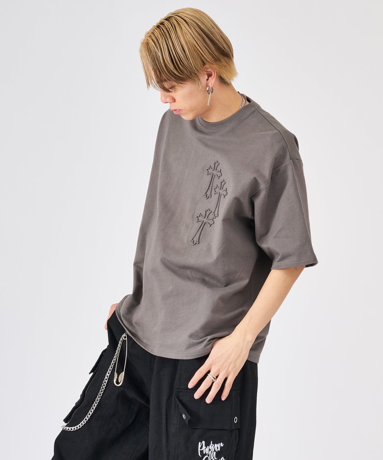 十字架をモチーフにしたエンボス加工のTシャツ☆