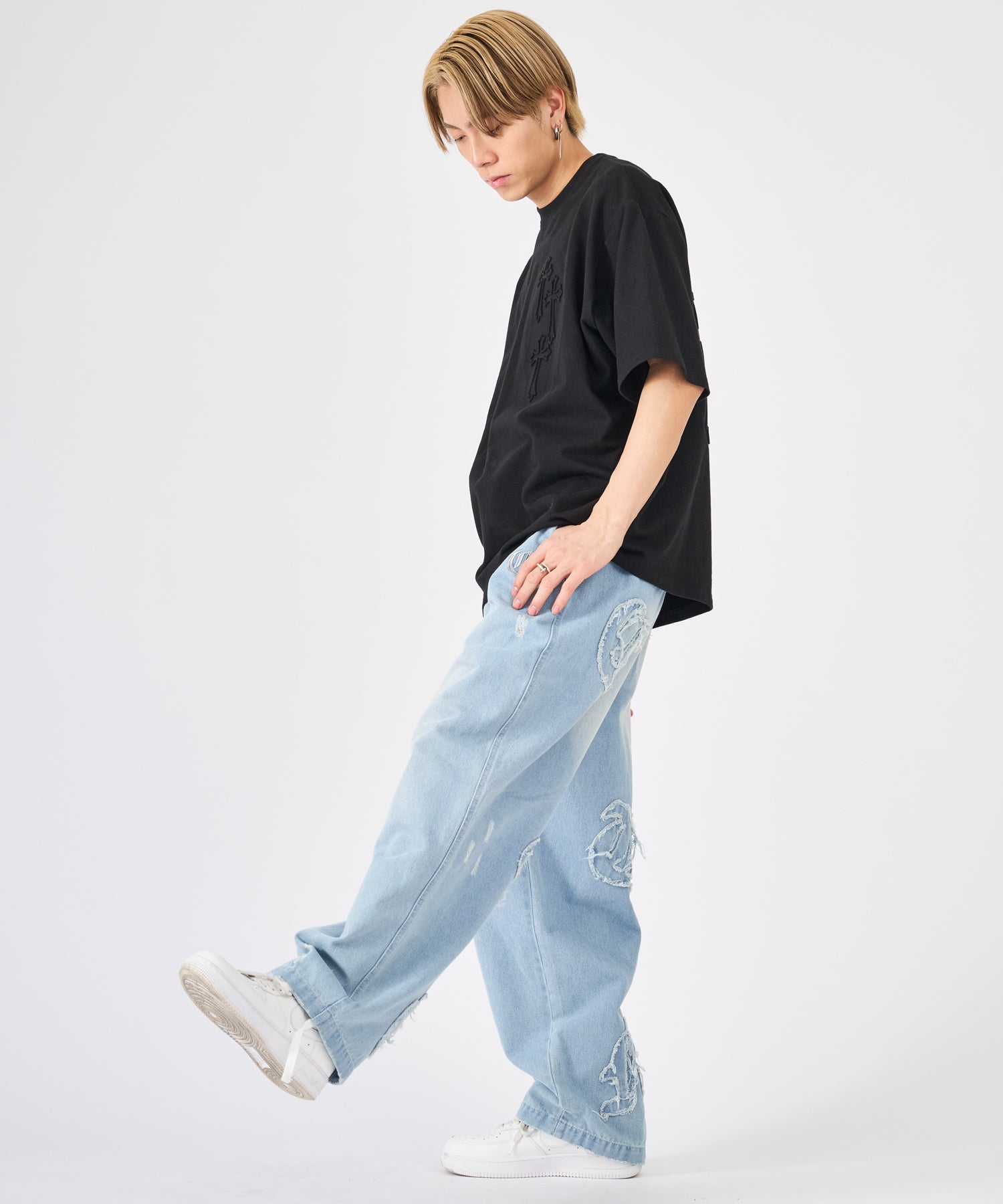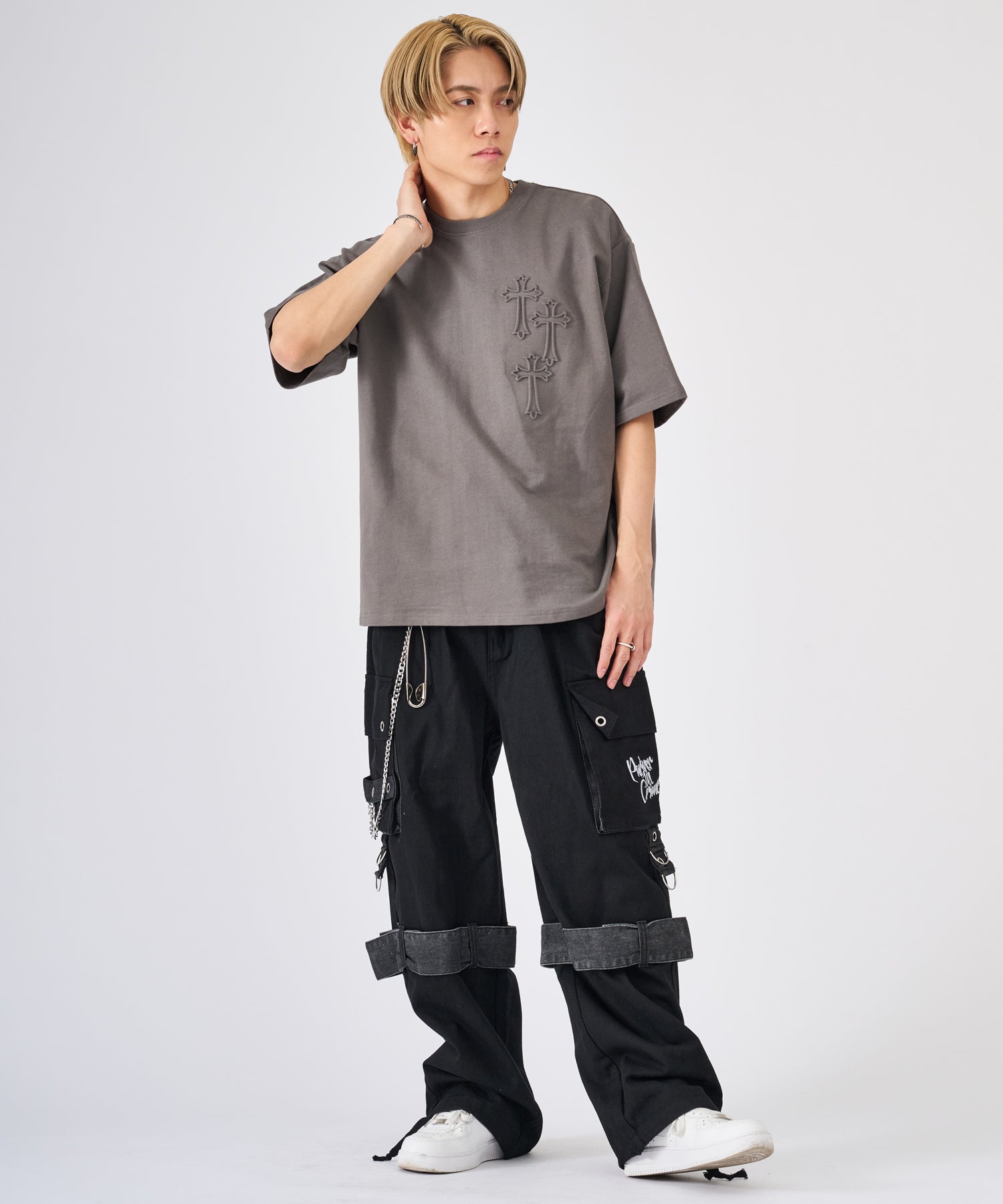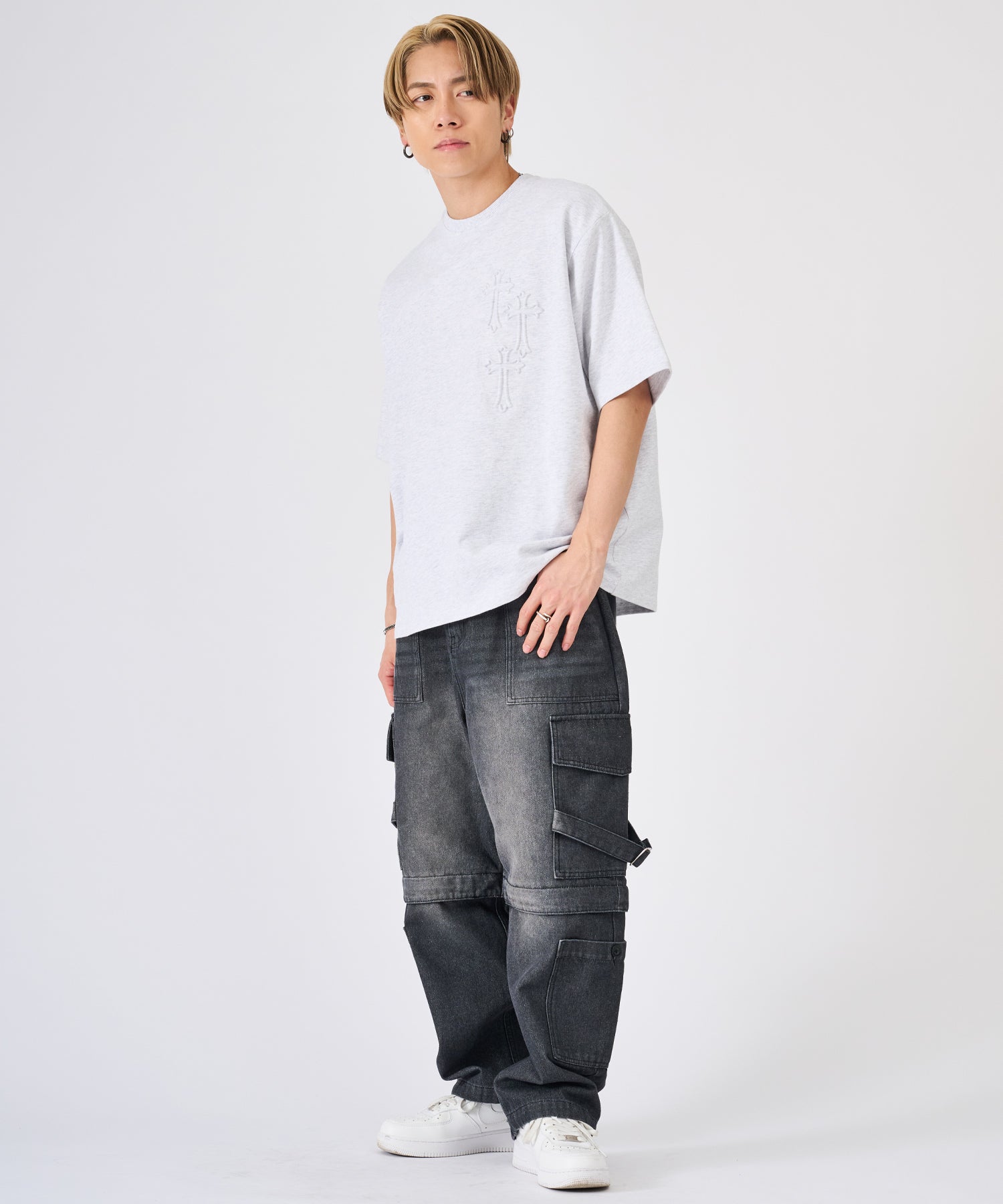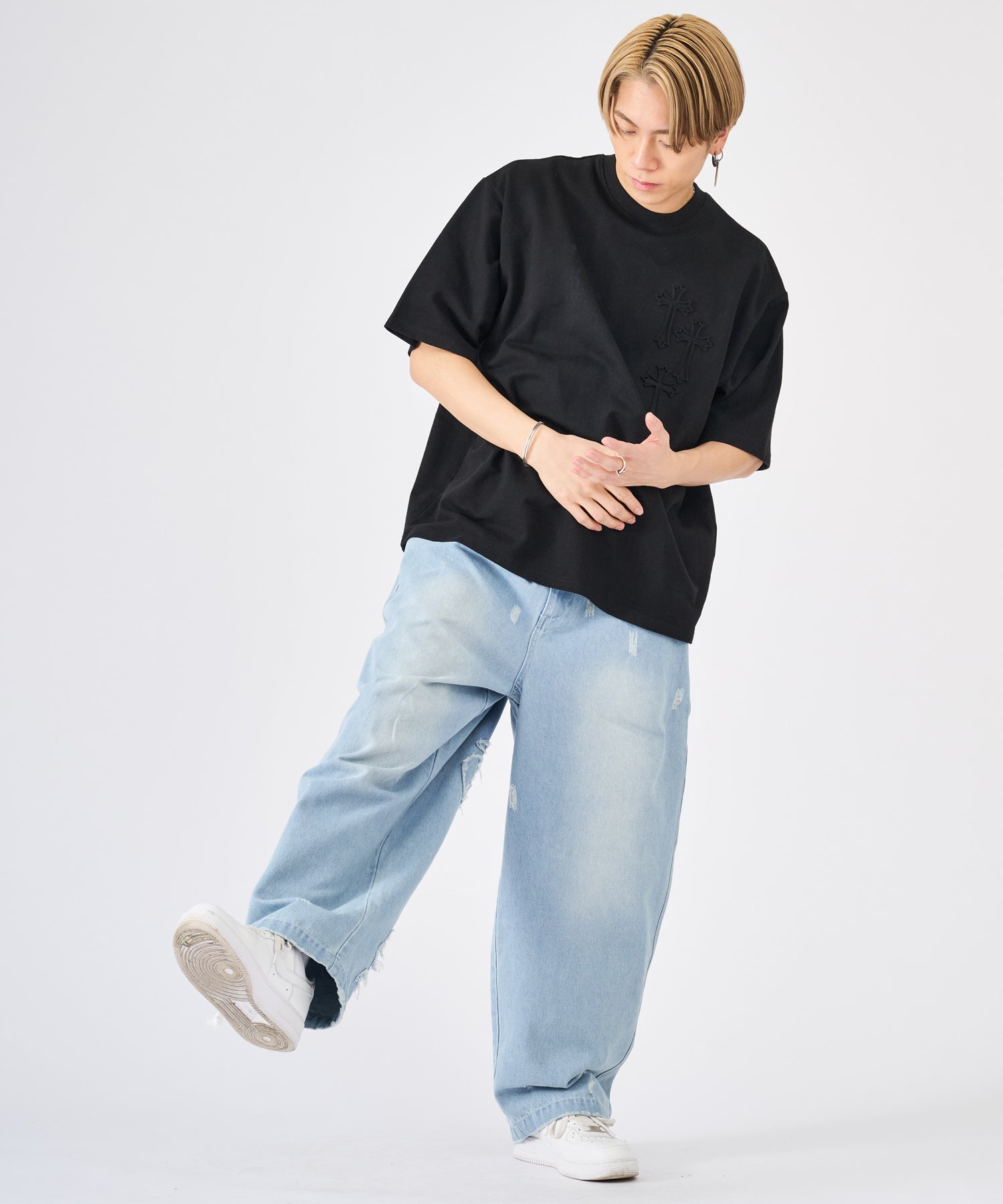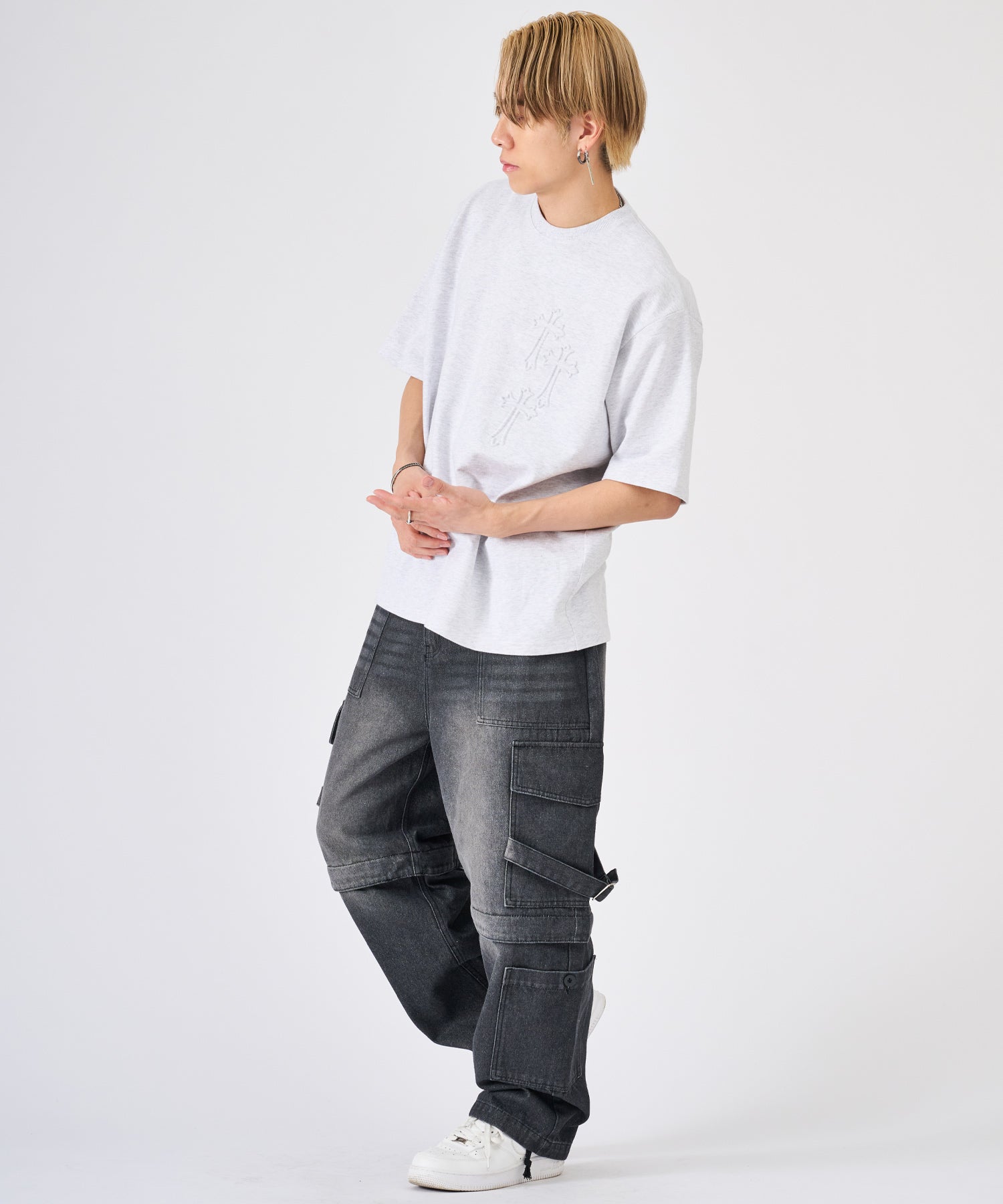 十字架をモチーフにしたエンボス加工のTシャツ☆
