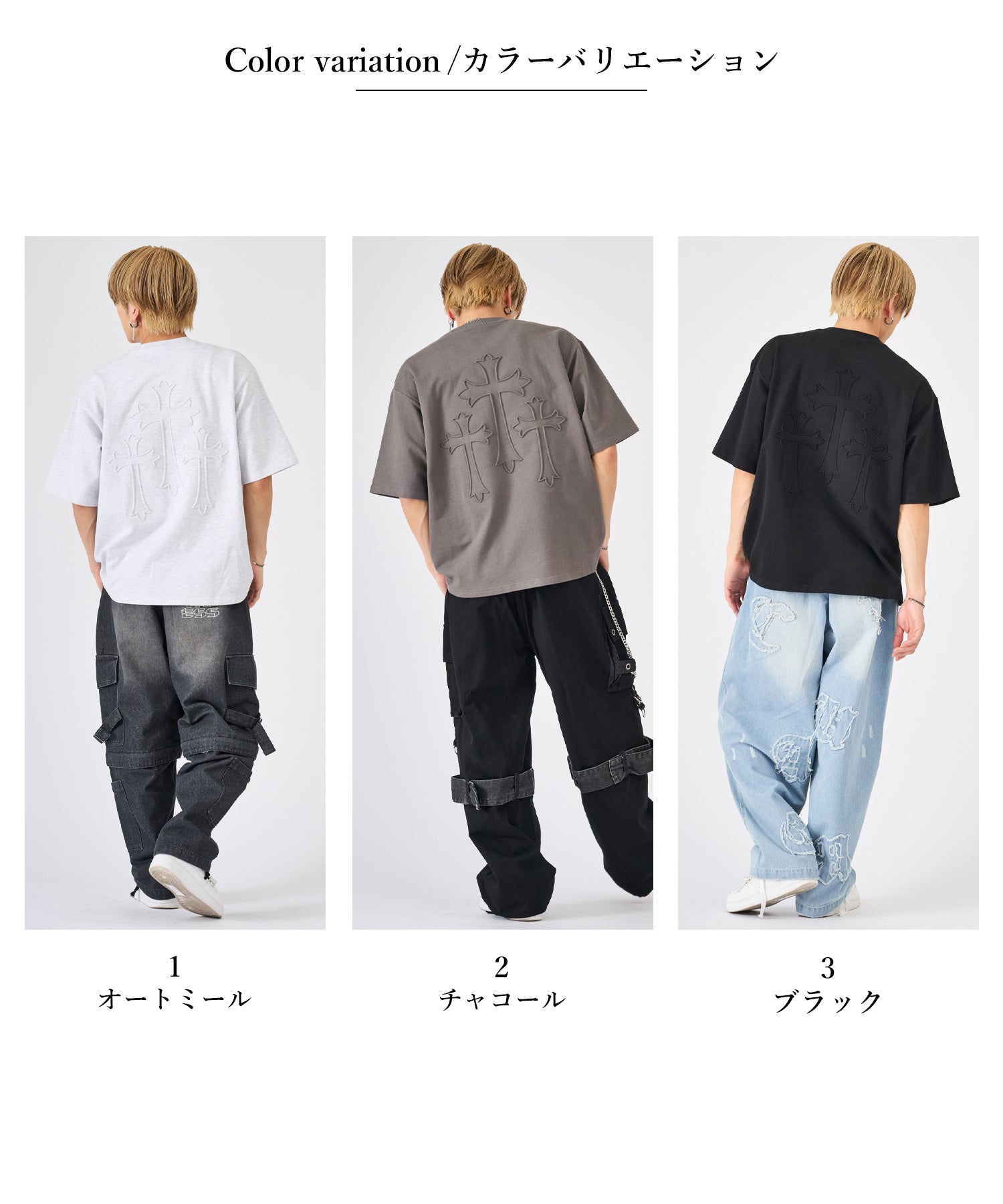 同色で型押ししたクロスエンボスは左胸と背中に大きく配置しており、一見は無地っぽく見えながらも印象的なデザイン☆