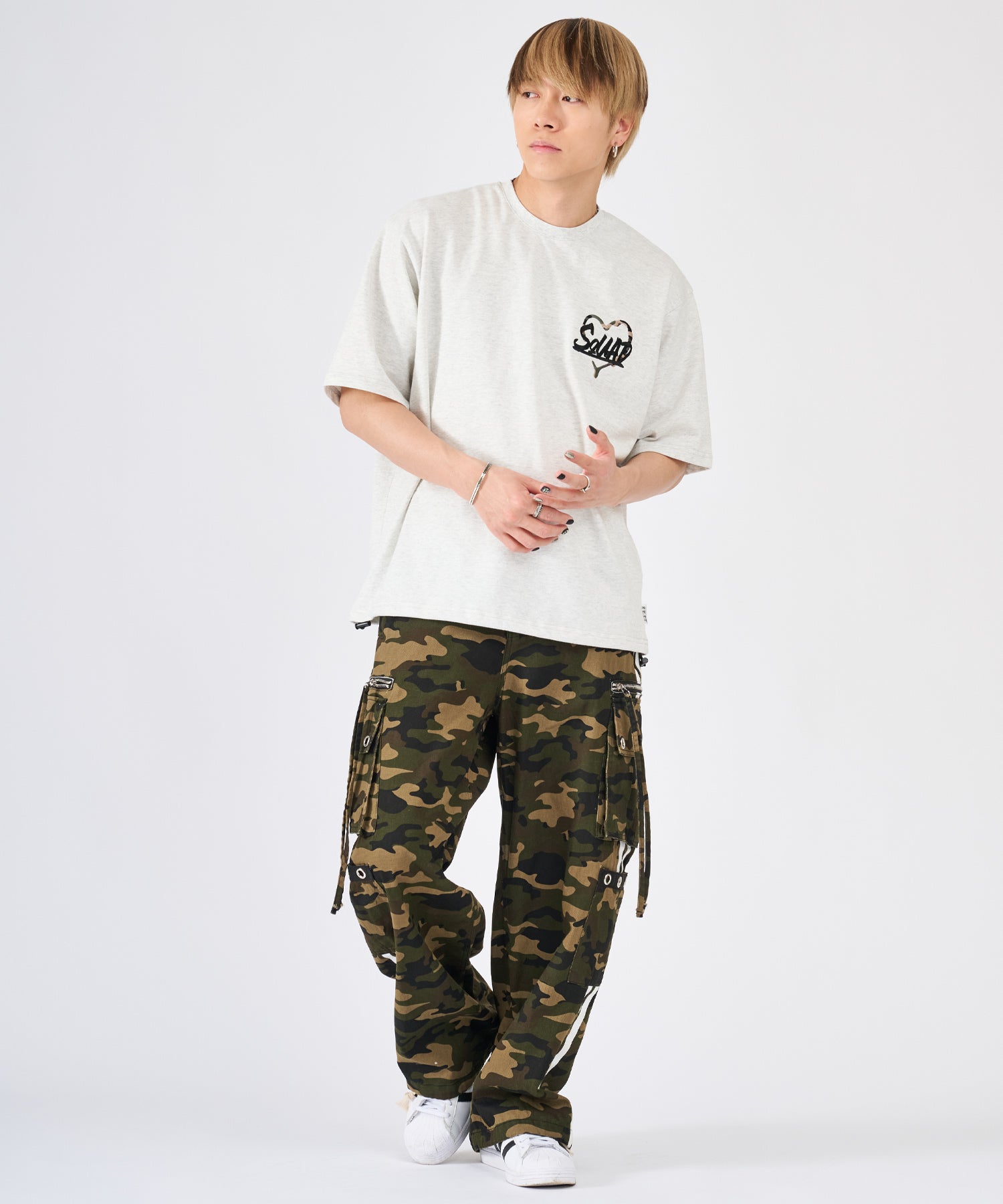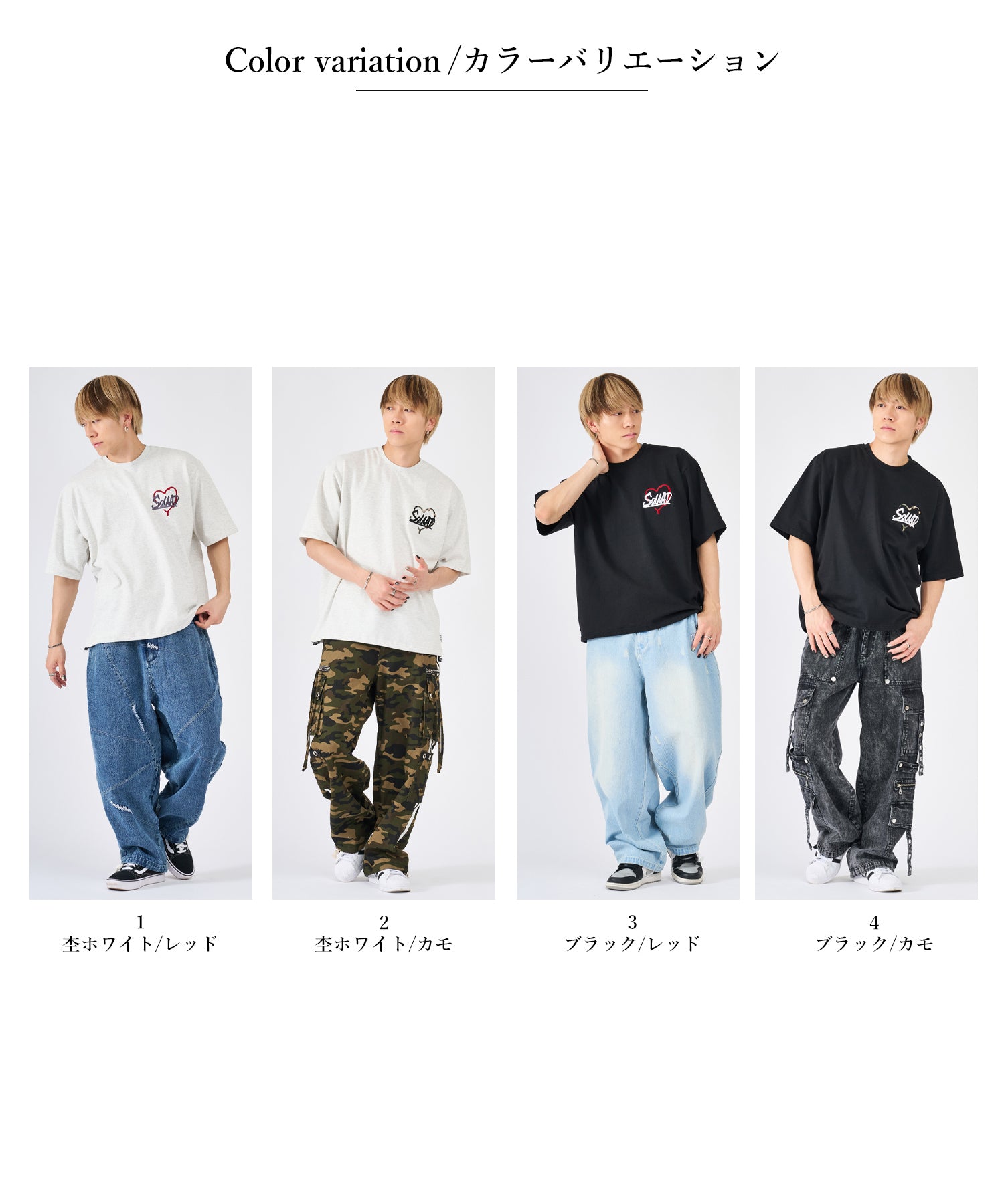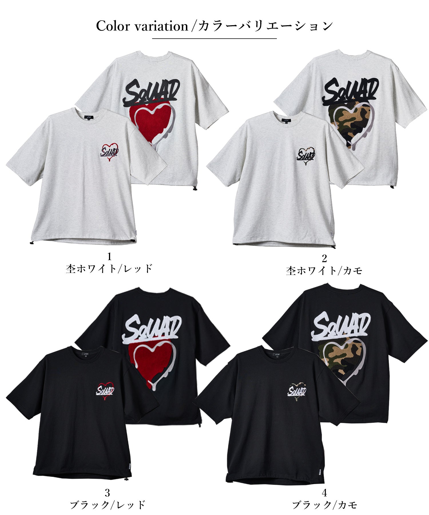 オートミールとブラックのカラバリで、それぞれ赤とカモフラのハートをラインナップ☆カップルやペアコーデにもぴったりなアイテムです