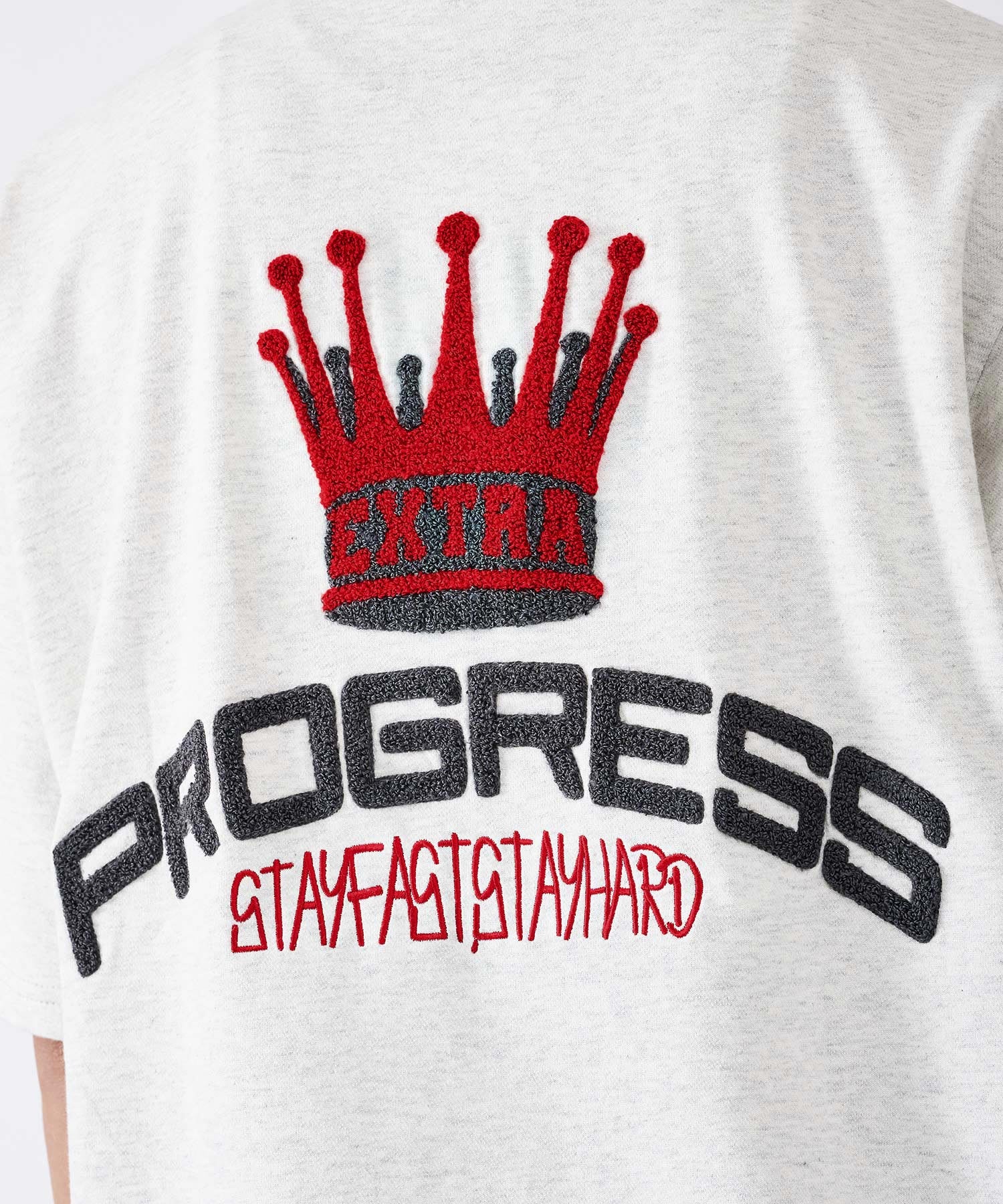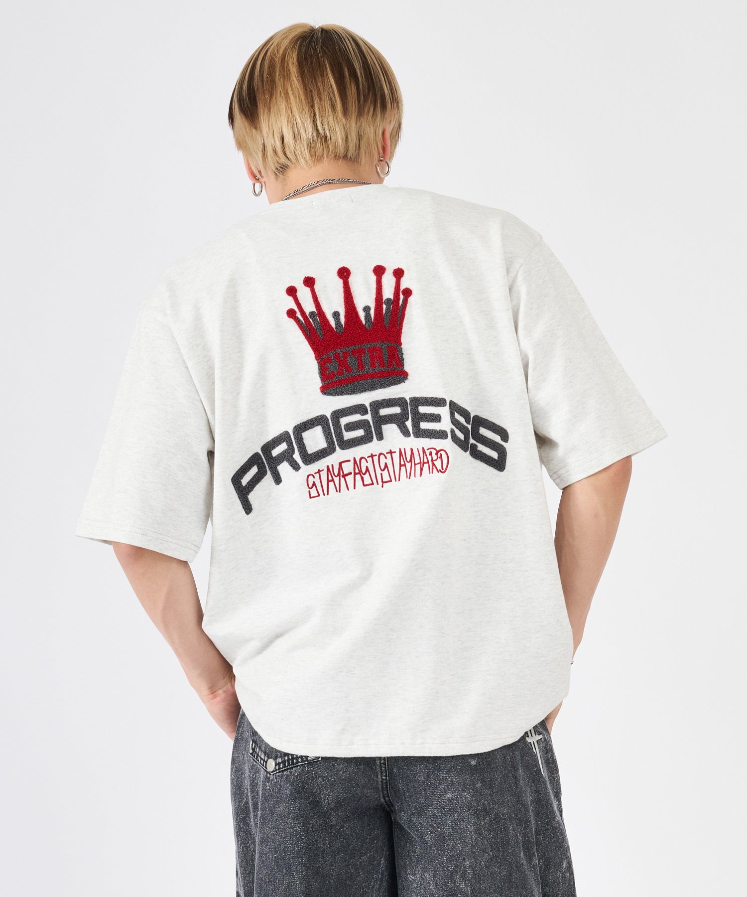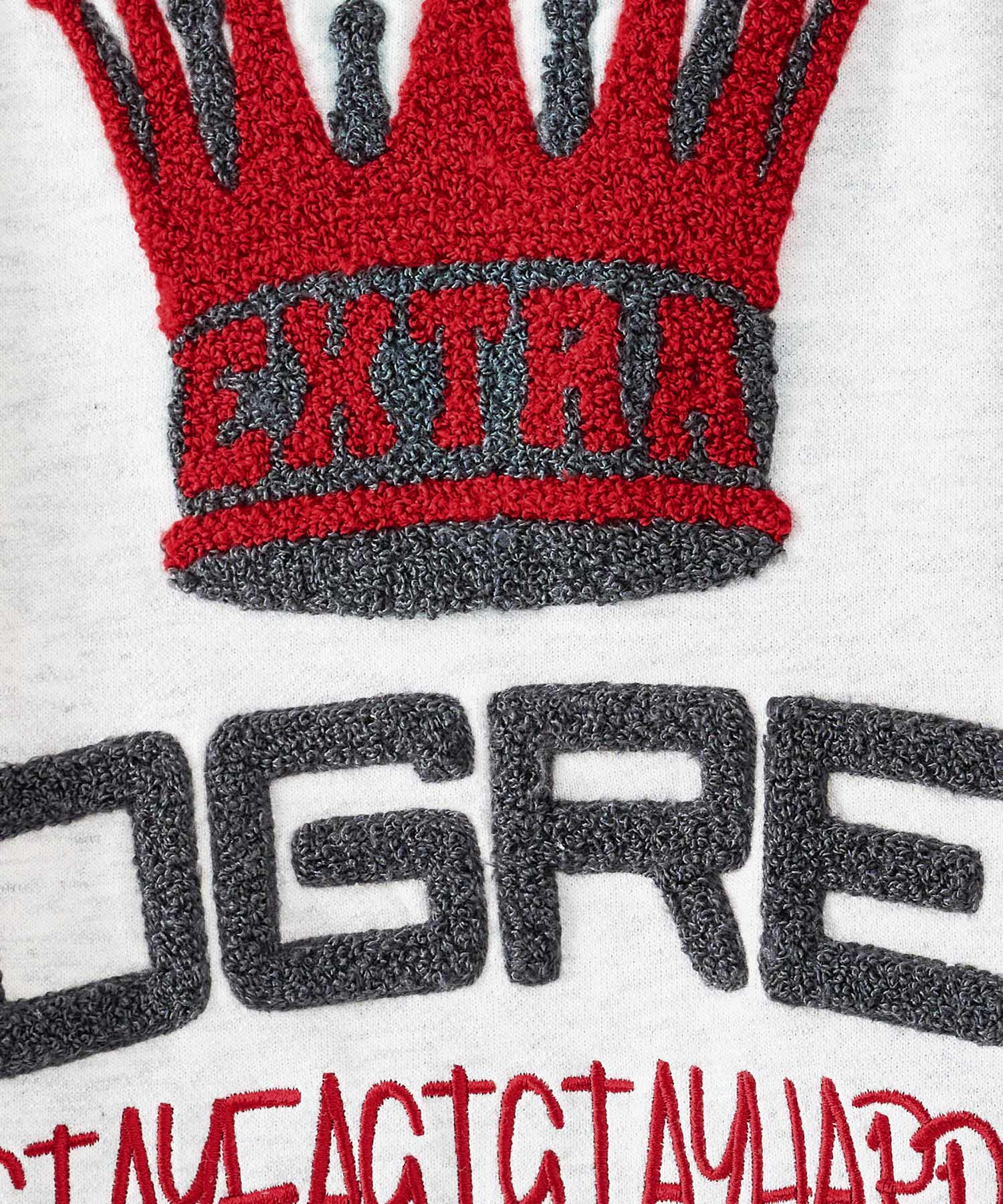 背中はフワフワのサガラ刺繍でデザインしたクラウンとロゴが大胆で印象的☆