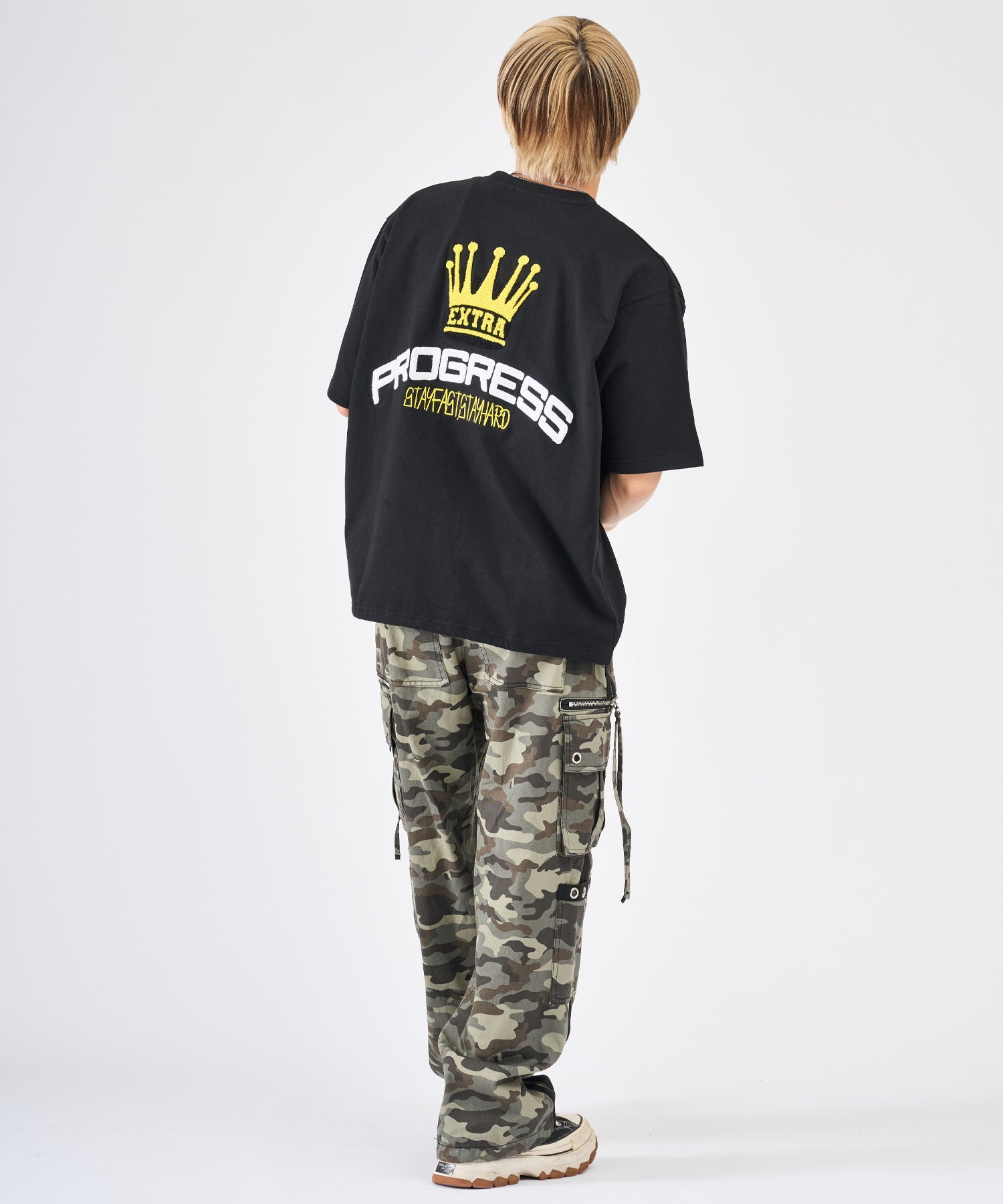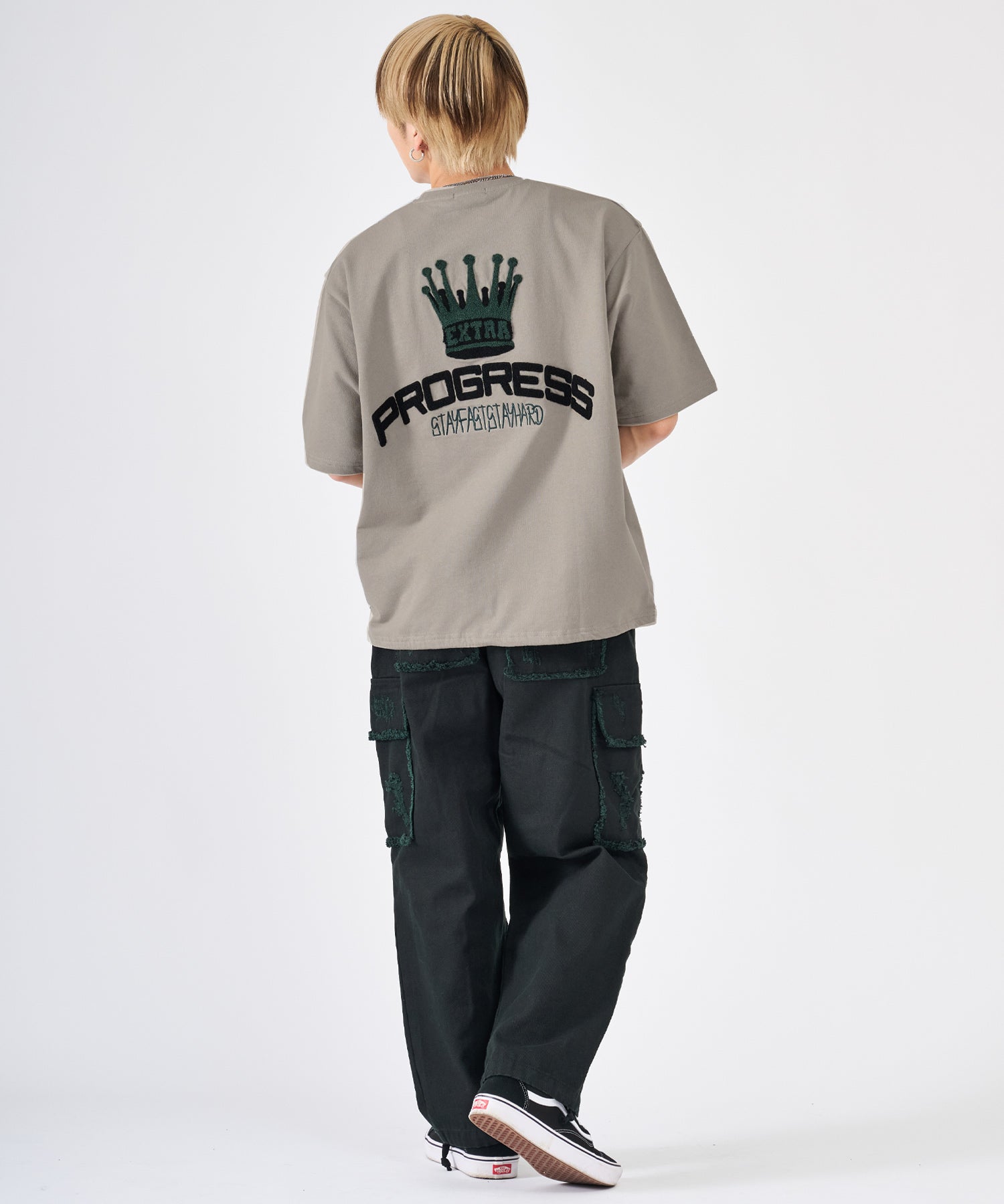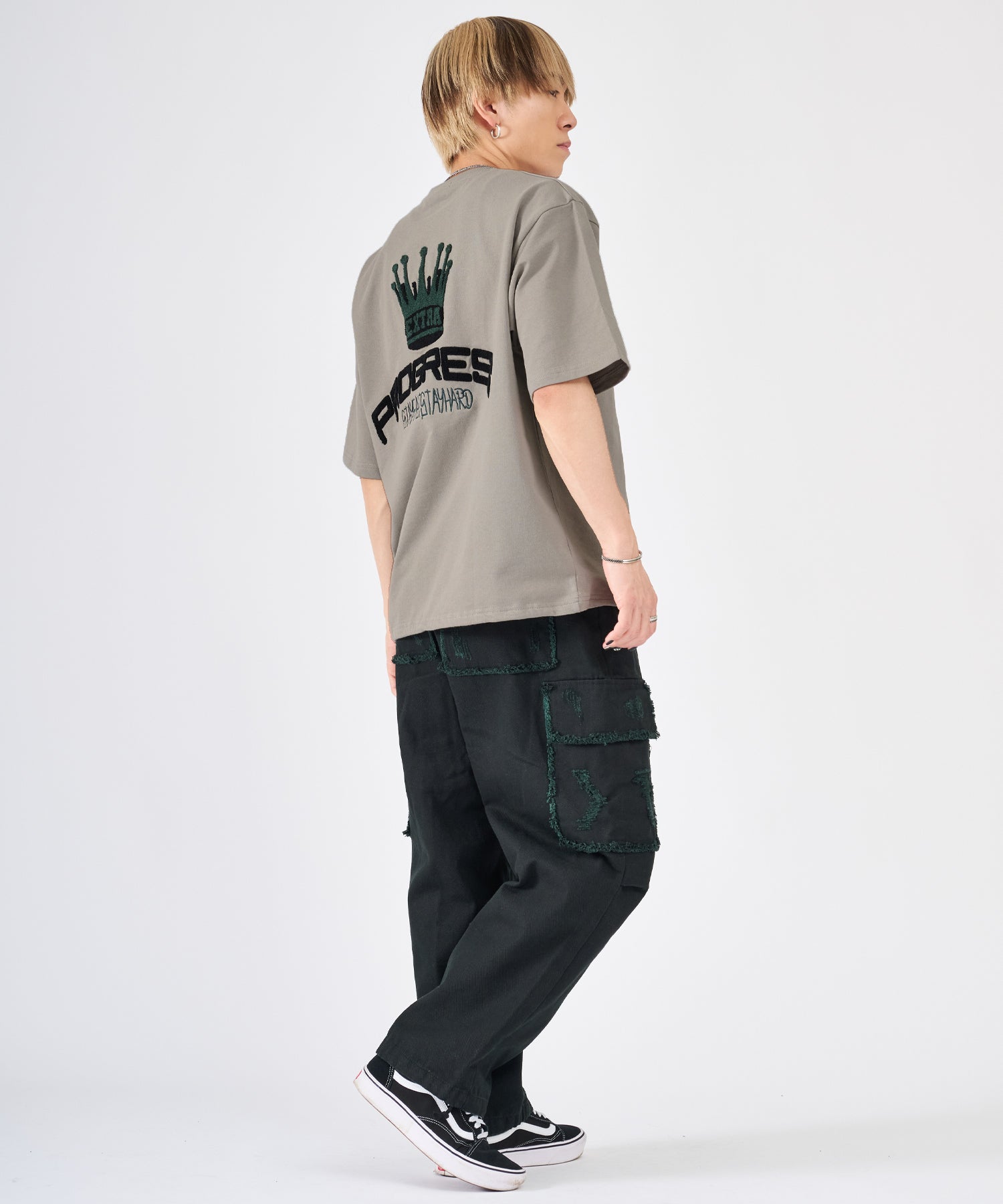 背中はフワフワのサガラ刺繍でデザインしたクラウンとロゴが大胆で印象的☆