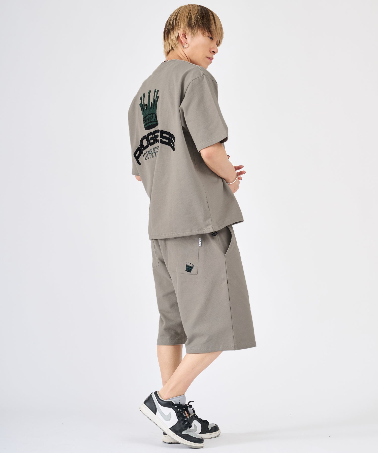 裾の両サイドにドローコードを配置しており、丈を調整したりシルエットの変化が楽しめるデザイン☆パンツはバックの右ポケット裾にさり気なく配置したクラウンの刺繍も可愛い