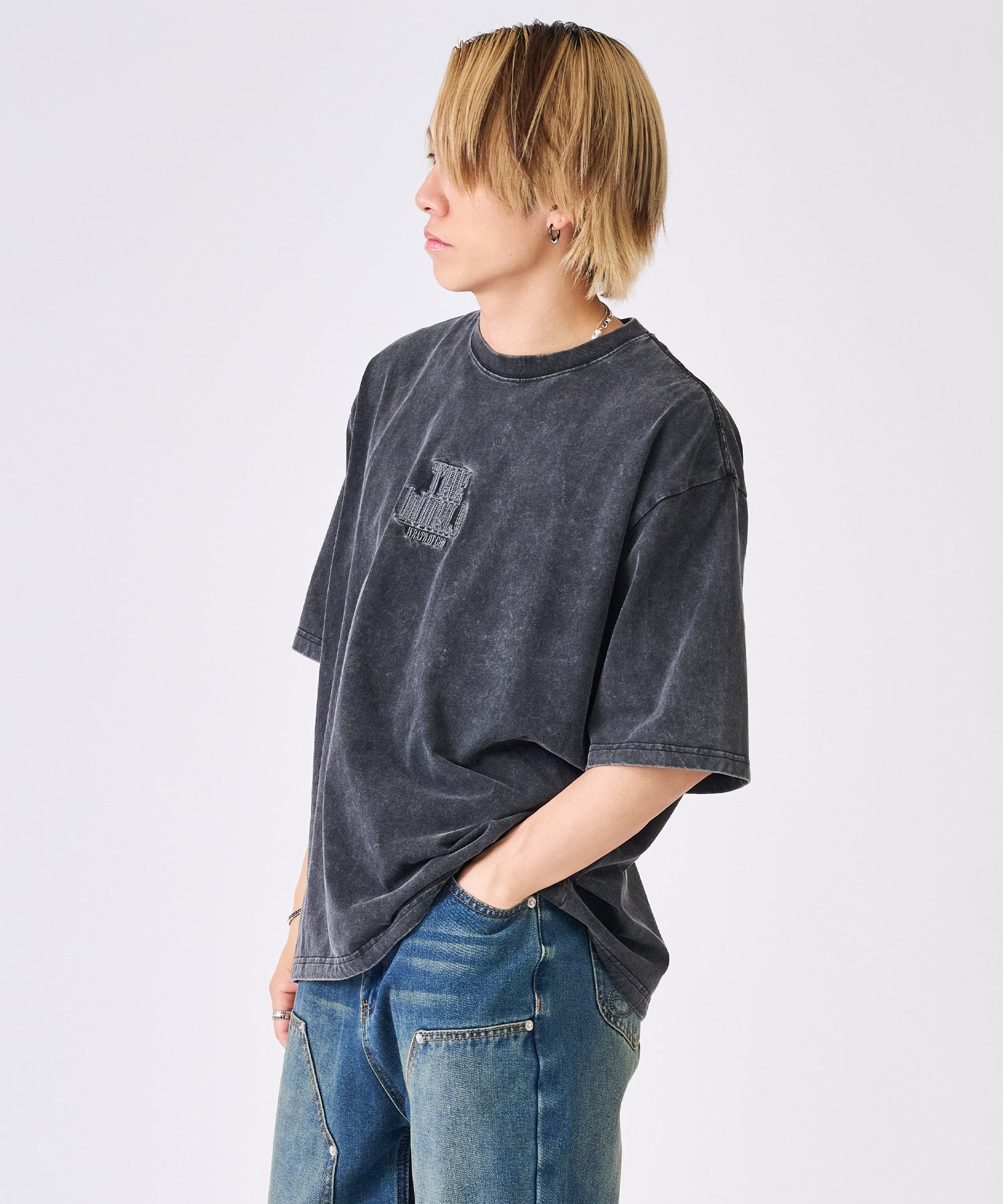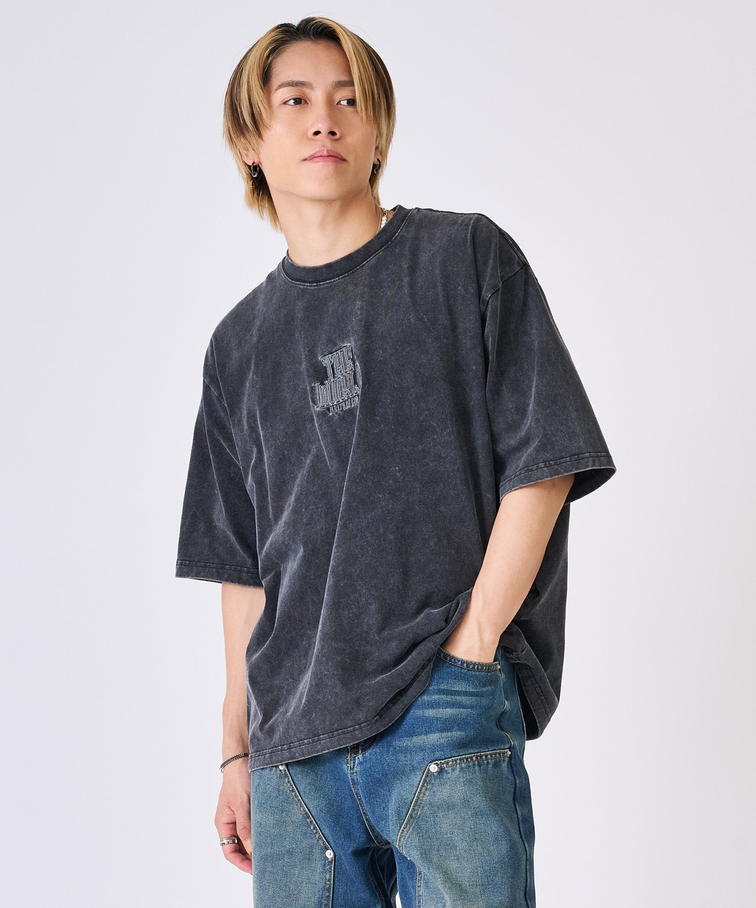 胸にワンポイントの刺繍があり、背中はストリート感あるロゴのバックプリント☆