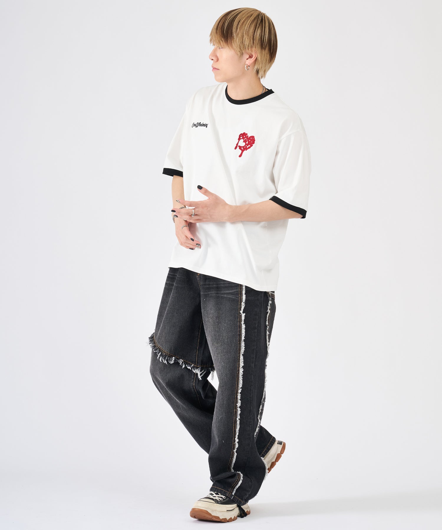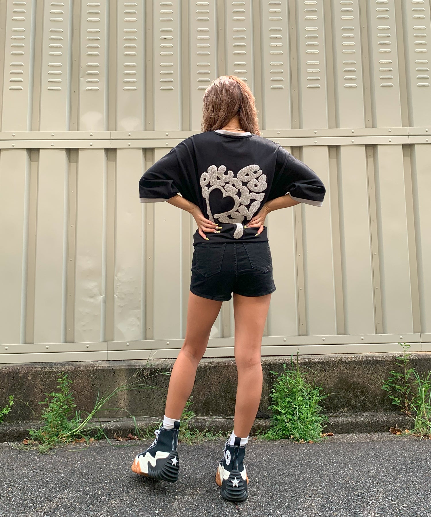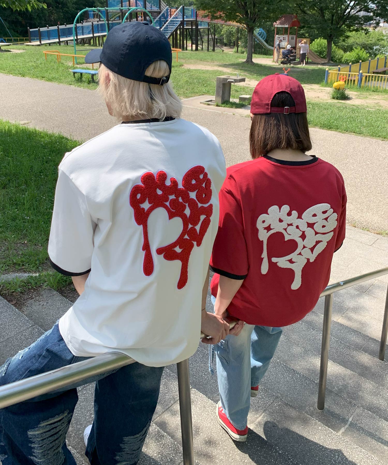 着こなし自由!!ハート柄が可愛いリンガーTシャツ❤