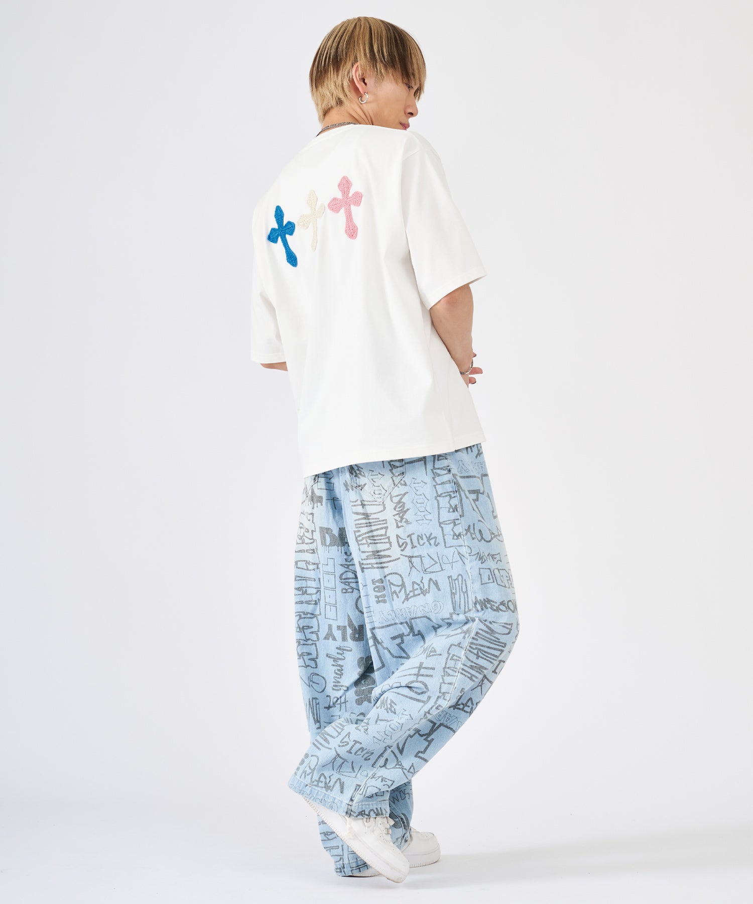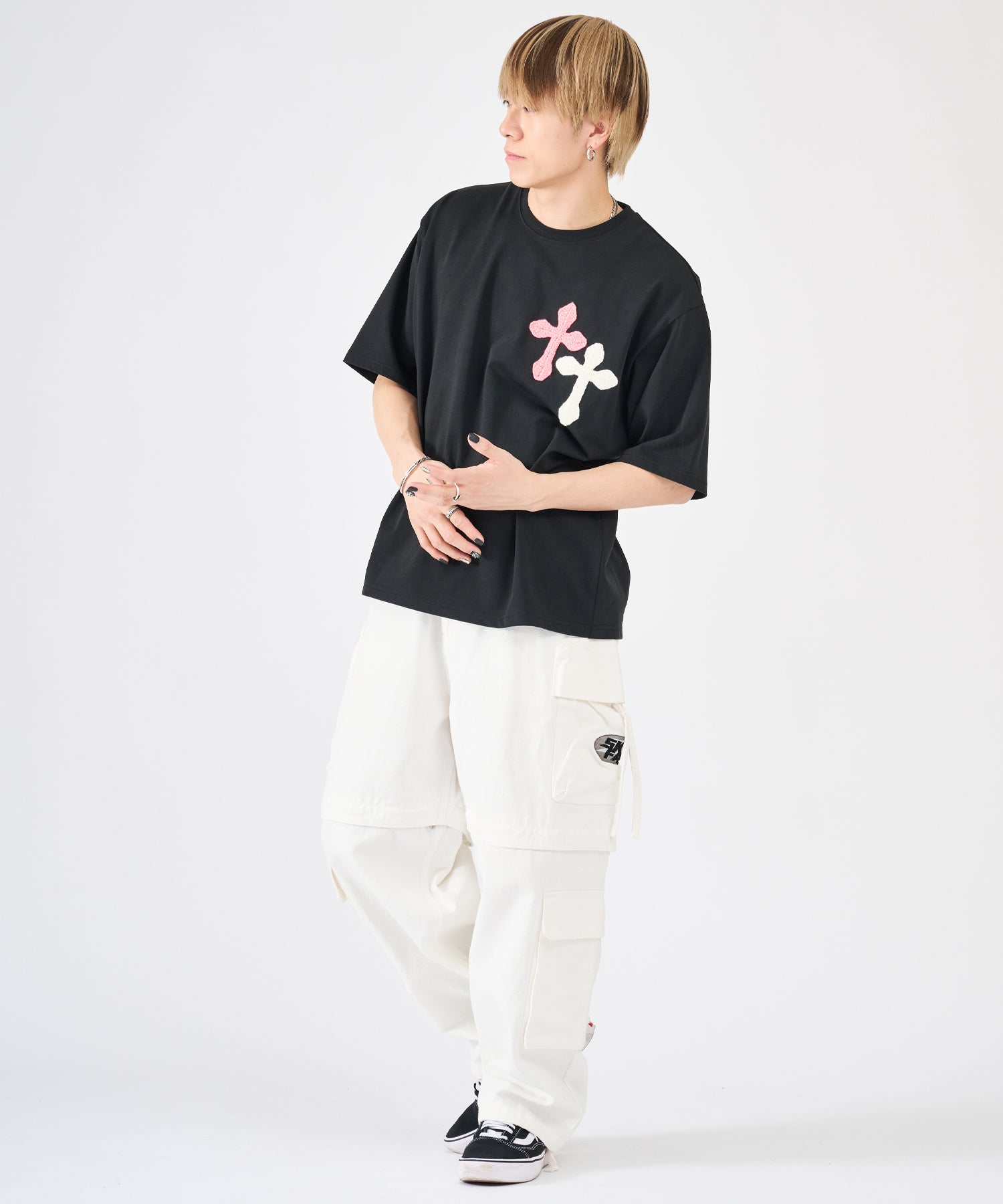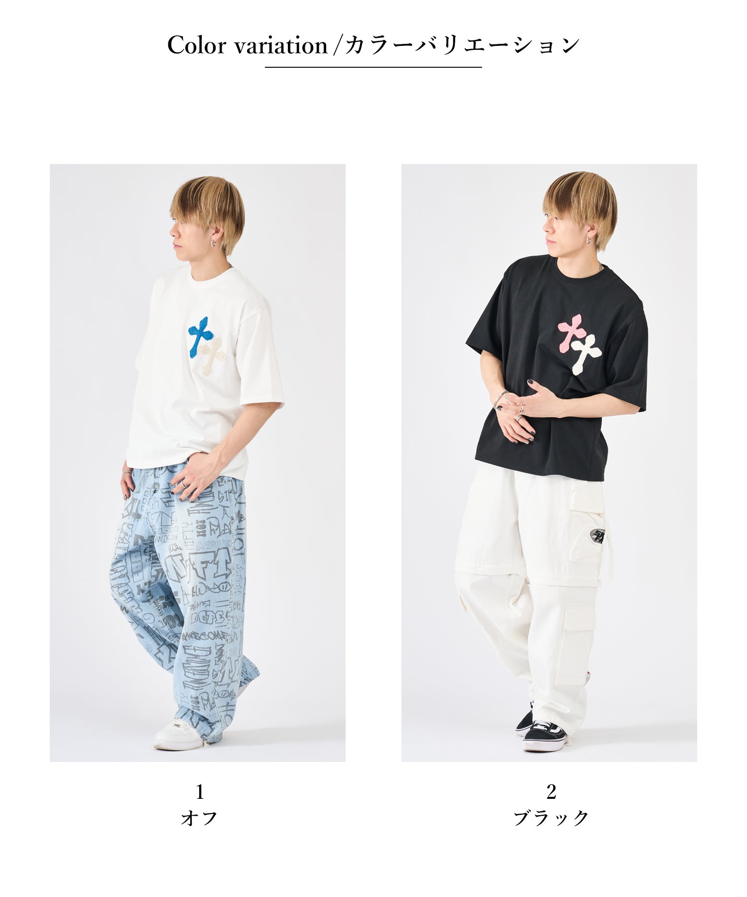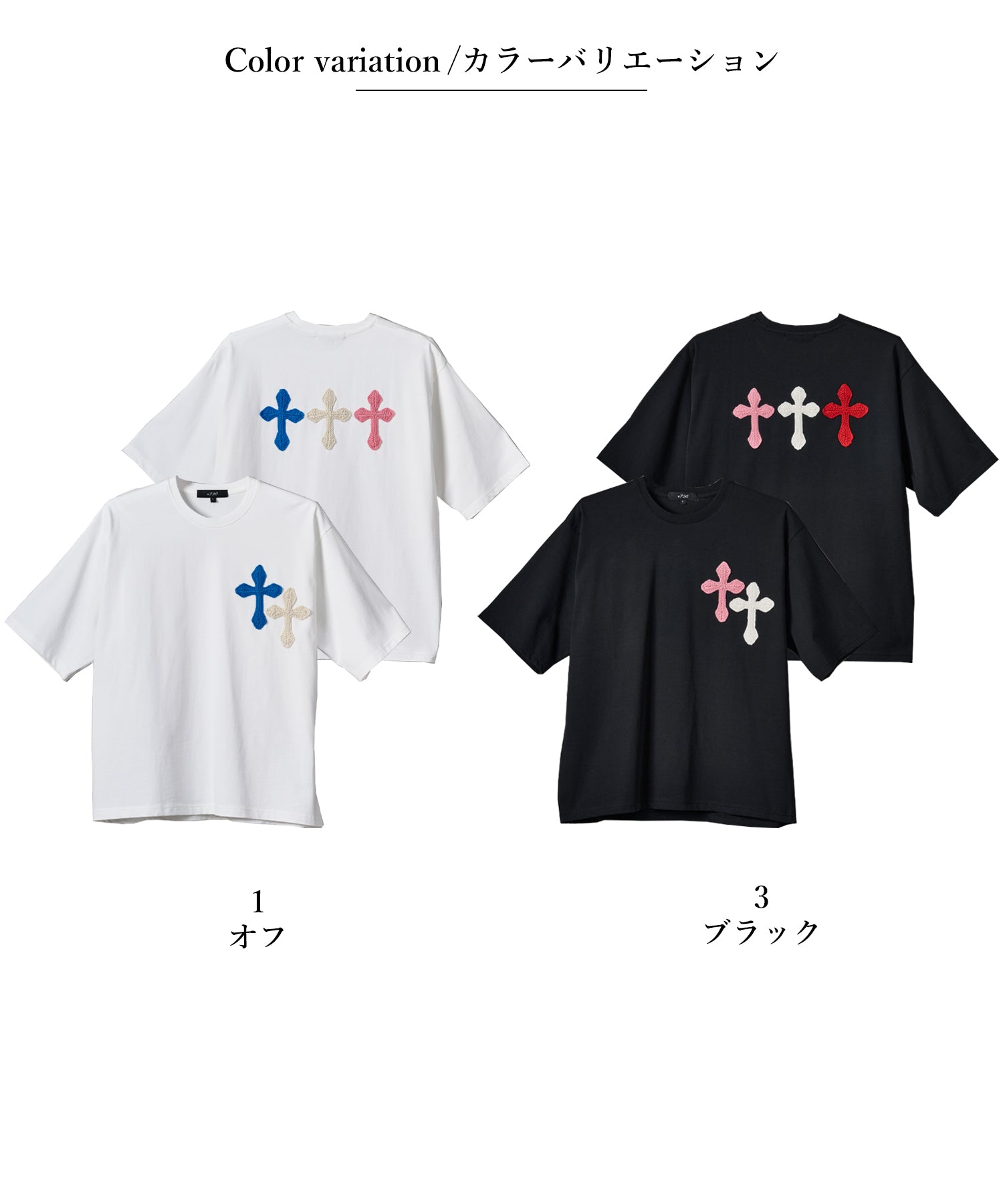 極太の糸を使ったクロスのアップリケ刺繍を胸と背中に配置することで存在感抜群のアイテム☆