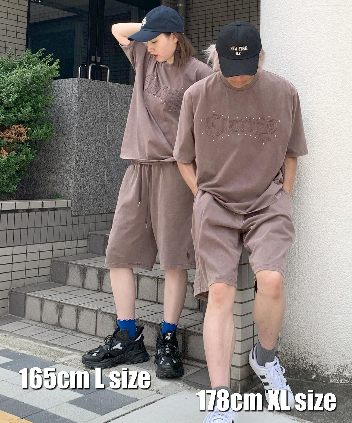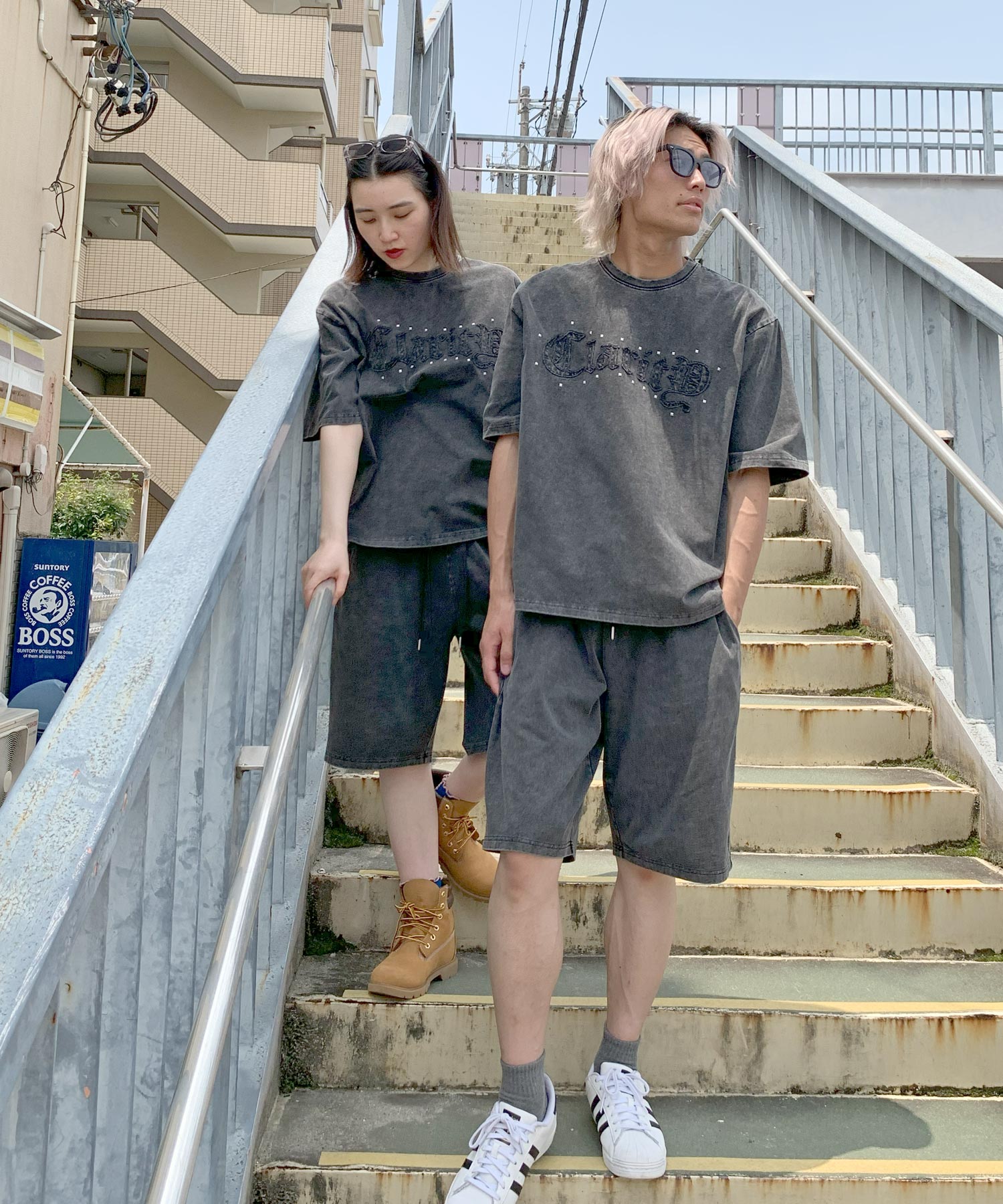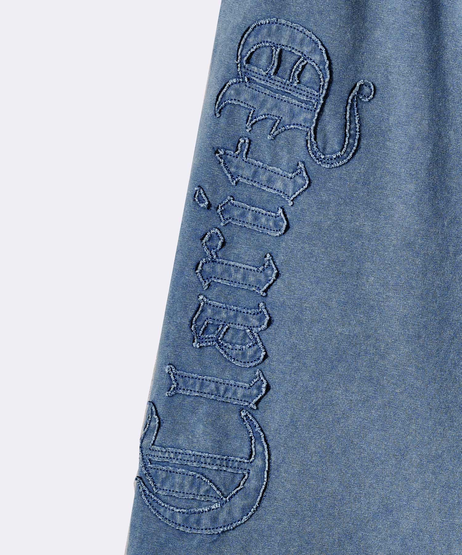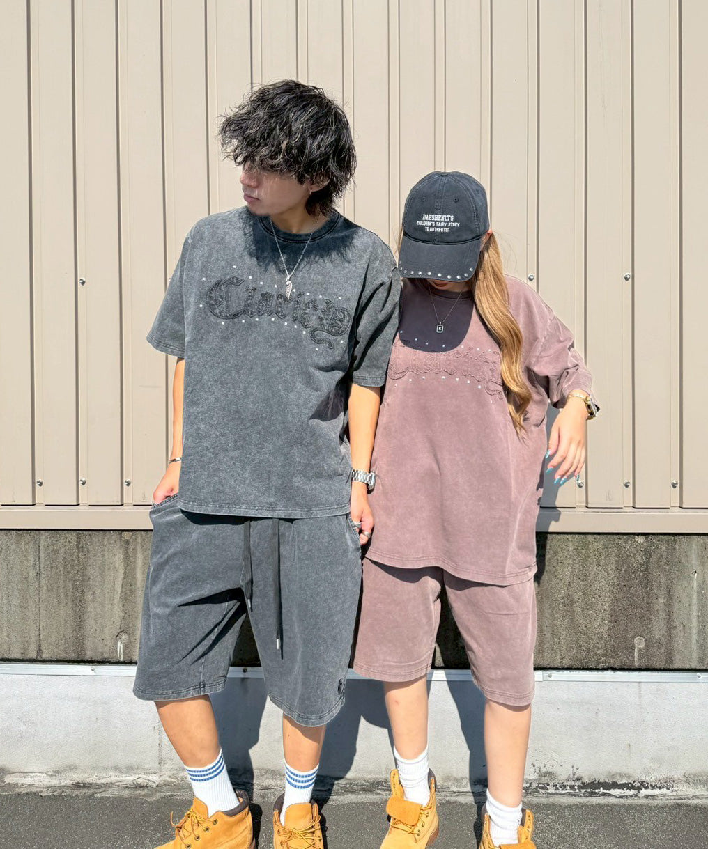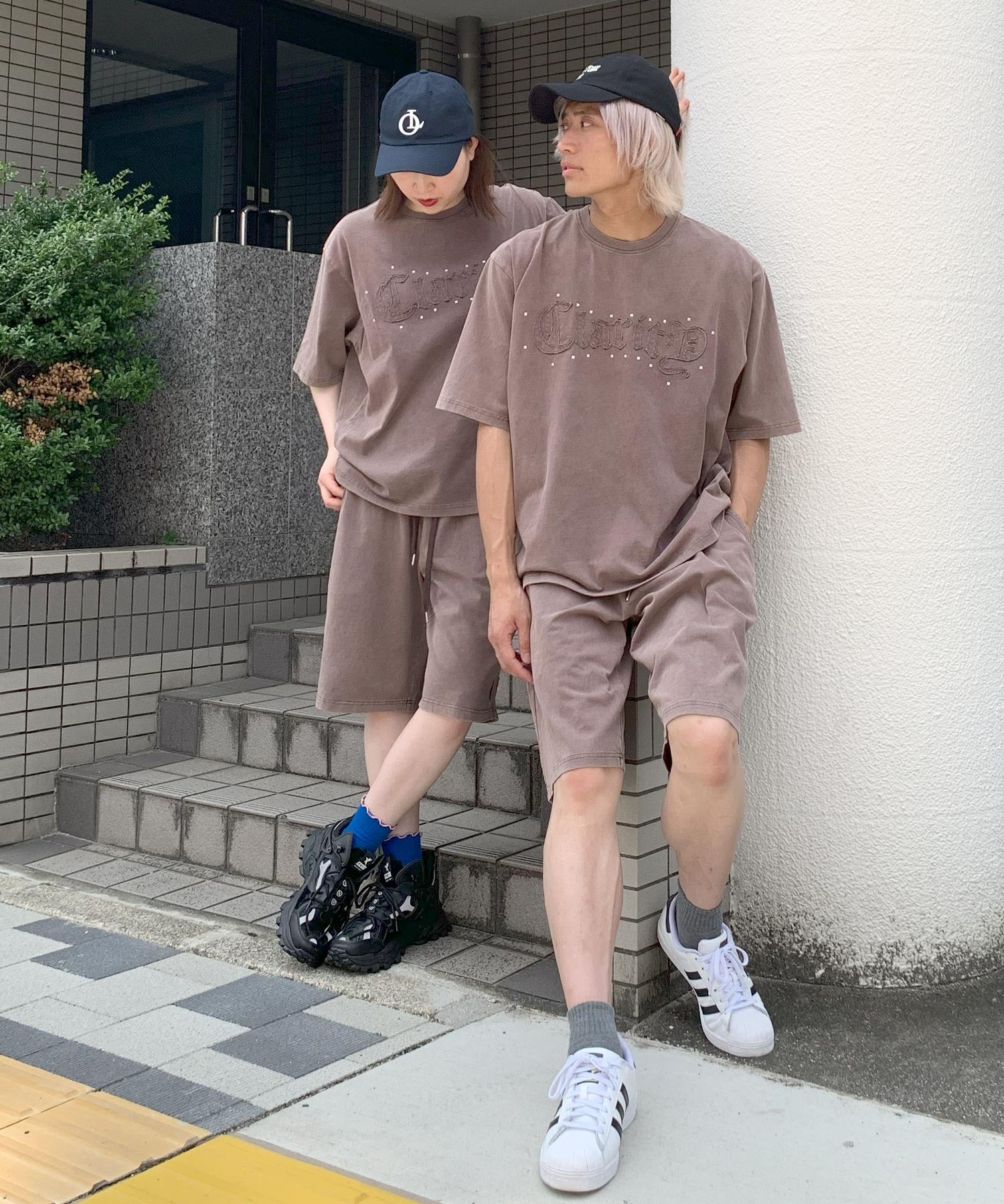 前とパンツの後ろ部分にあしらった立体的な厚盛りのロゴ刺繍がストリートな雰囲気にピッタリ☆彡