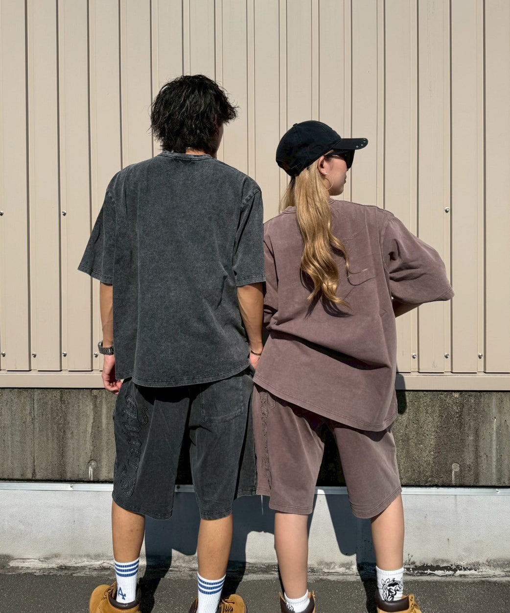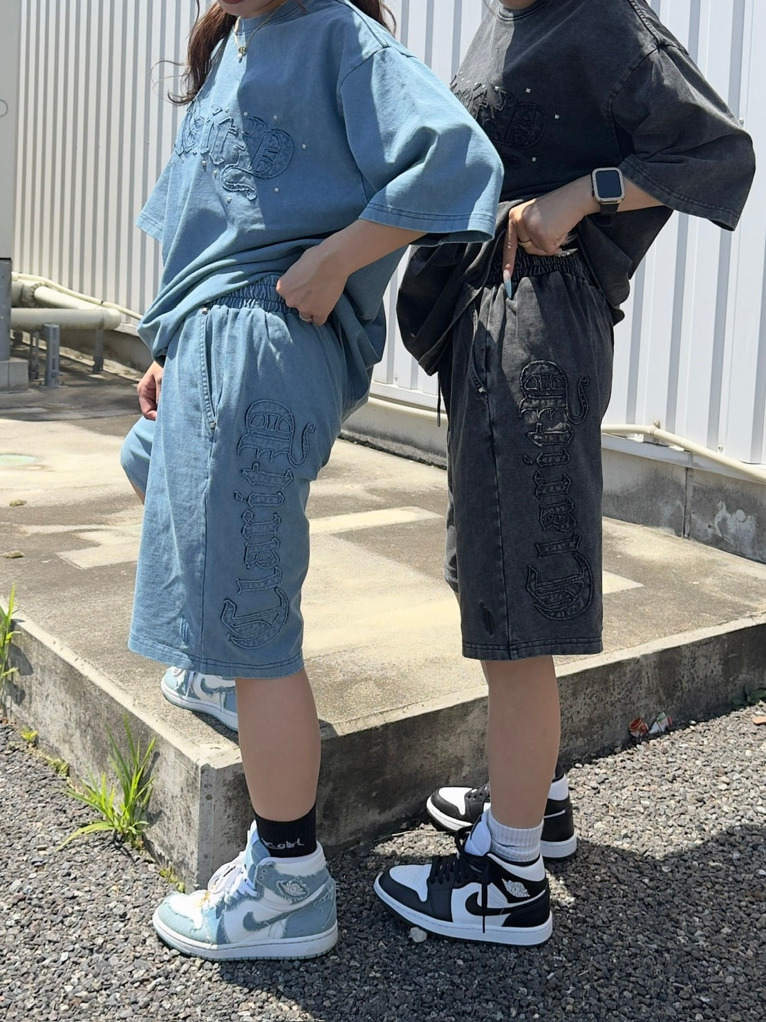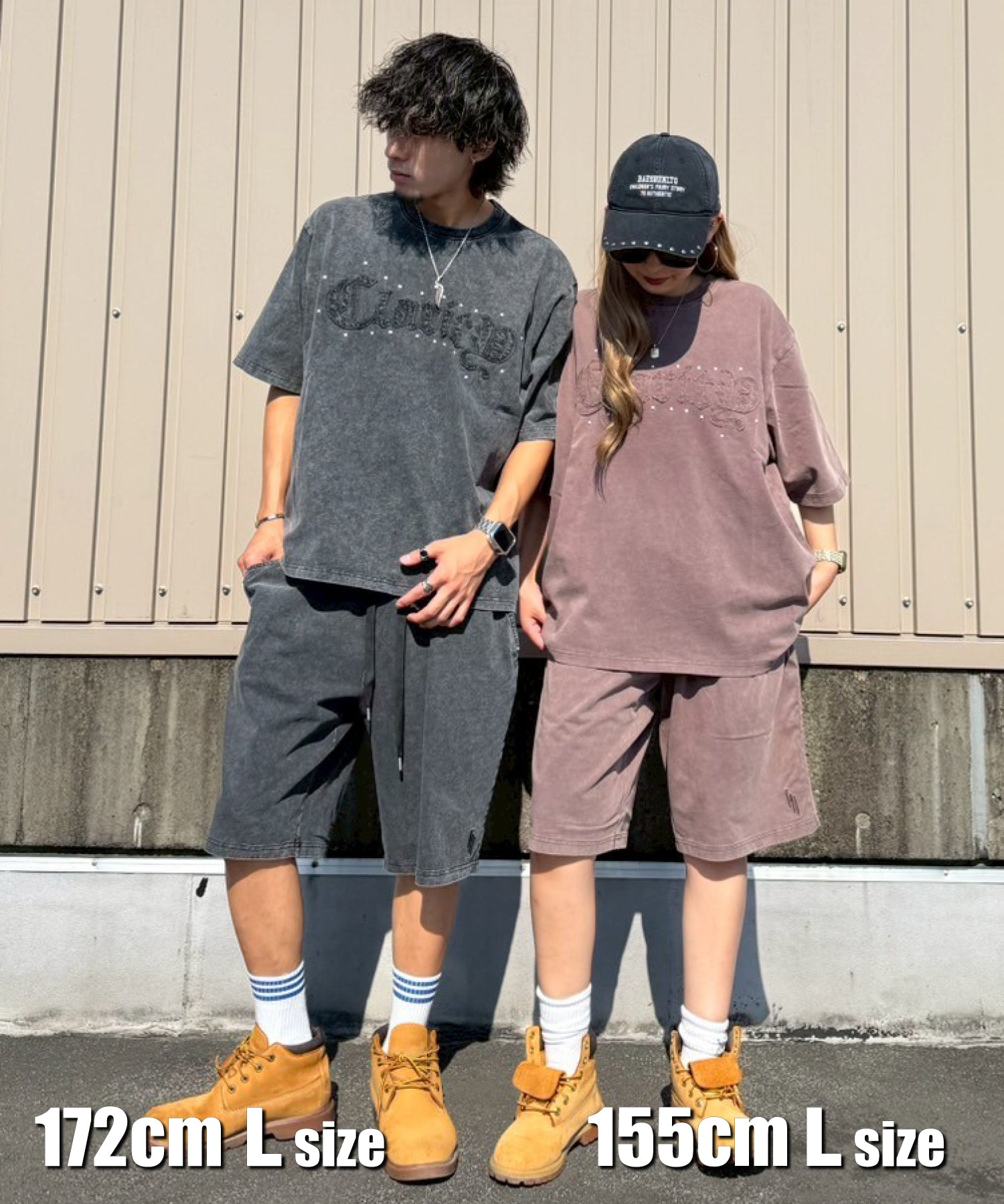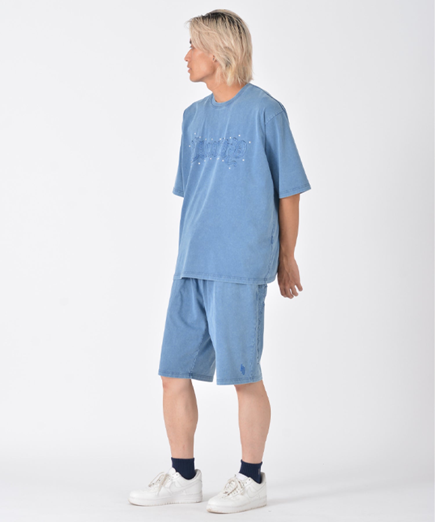前とパンツの後ろ部分にあしらった立体的な厚盛りのロゴ刺繍がストリートな雰囲気にピッタリ☆彡