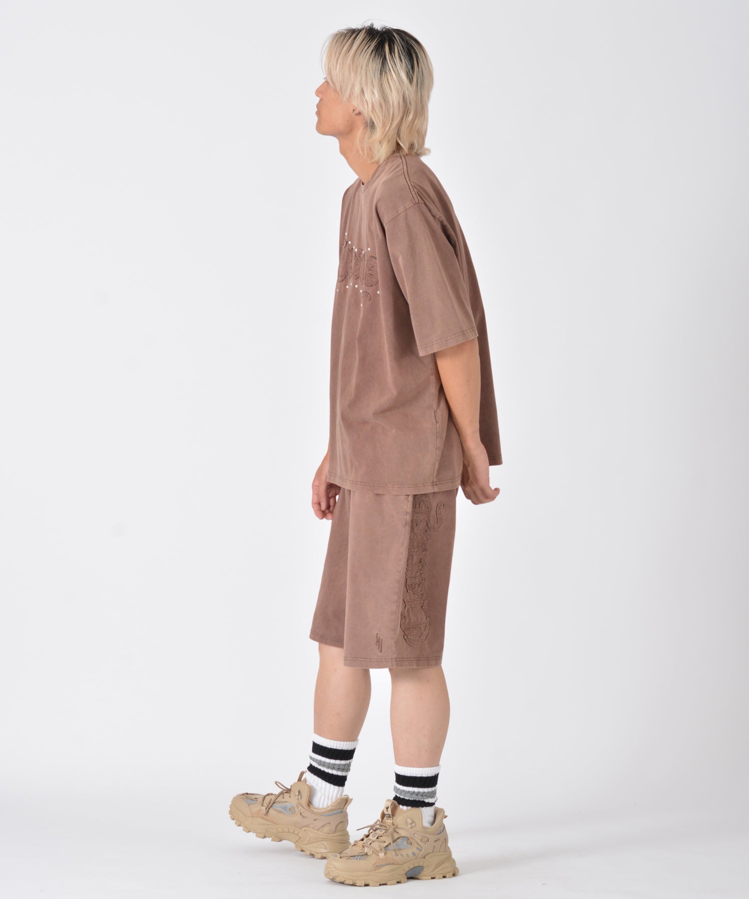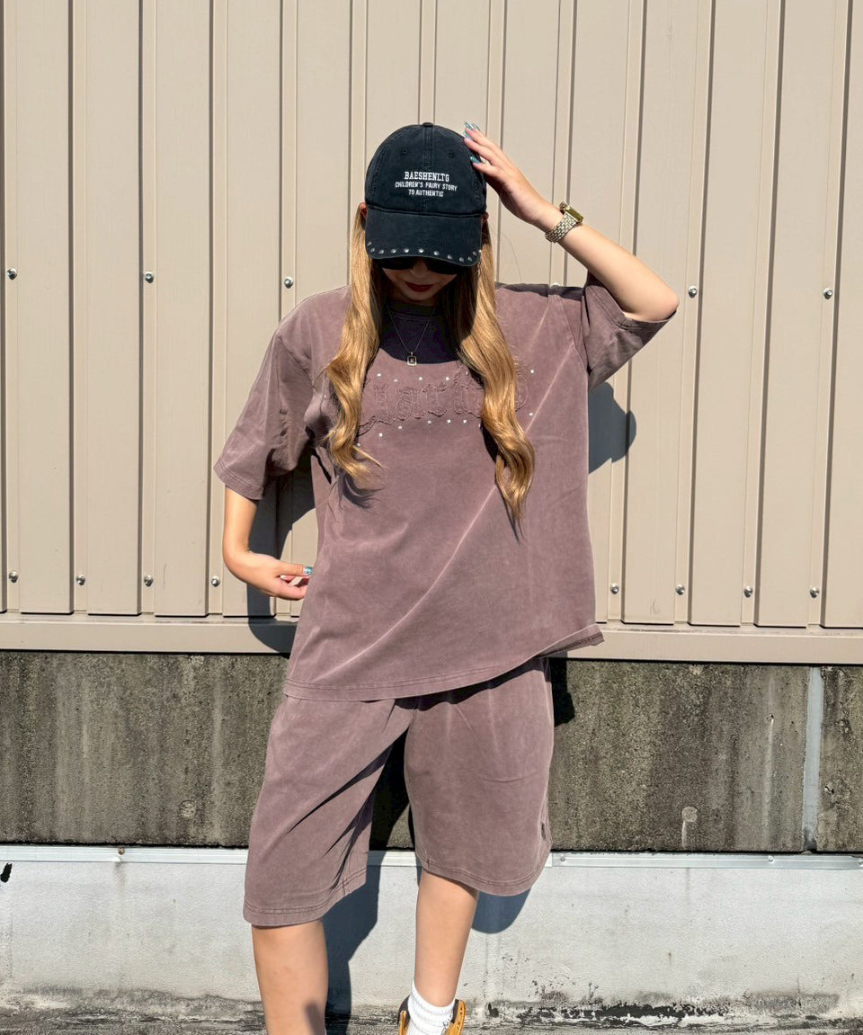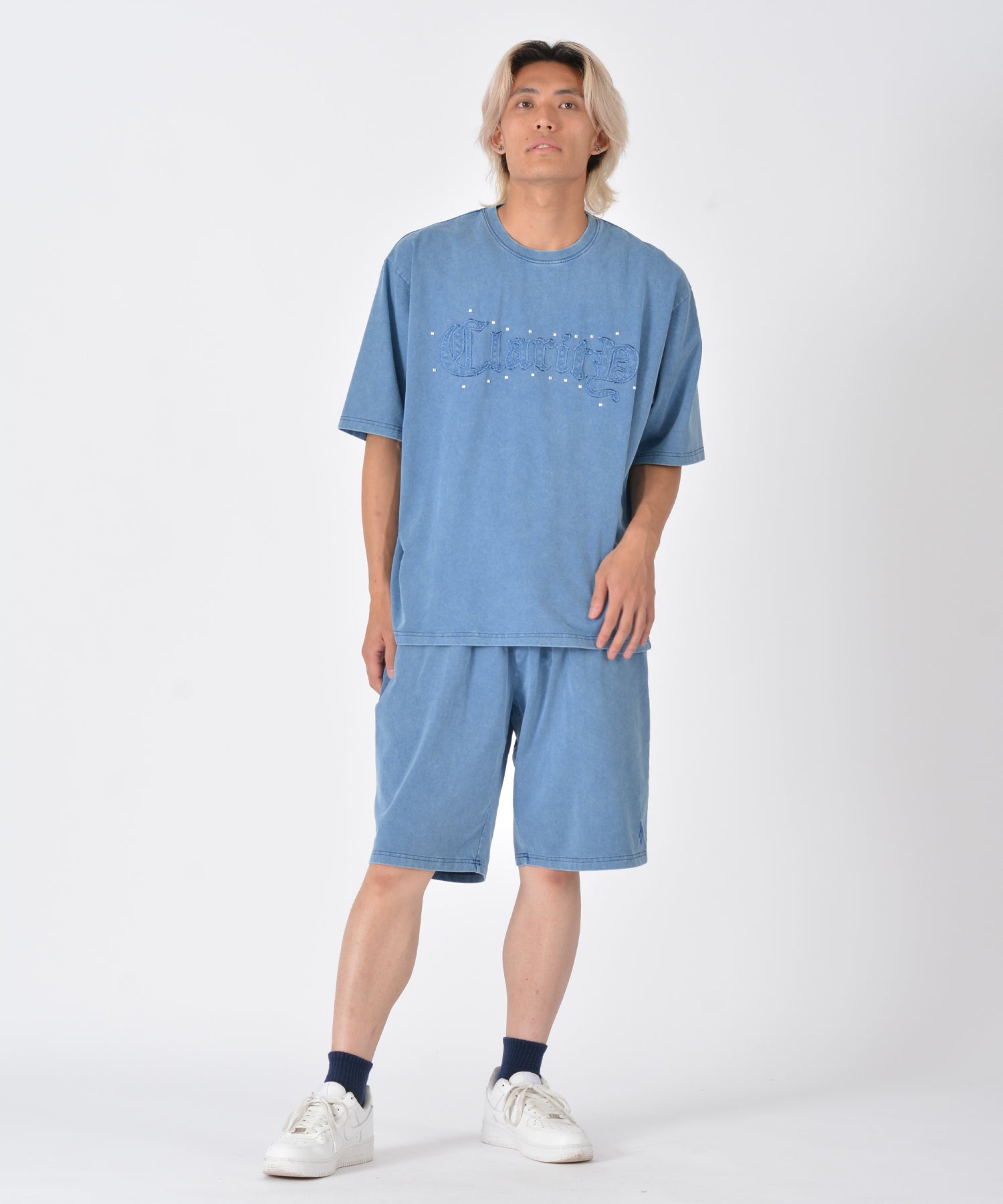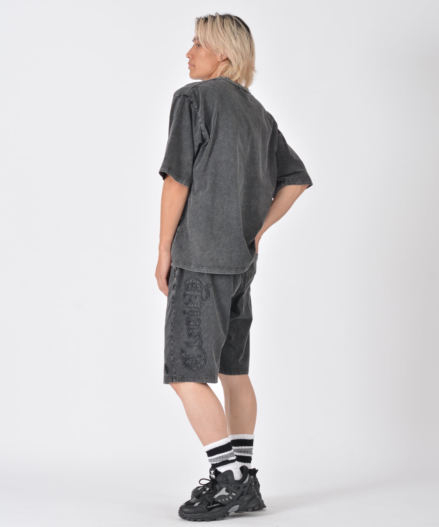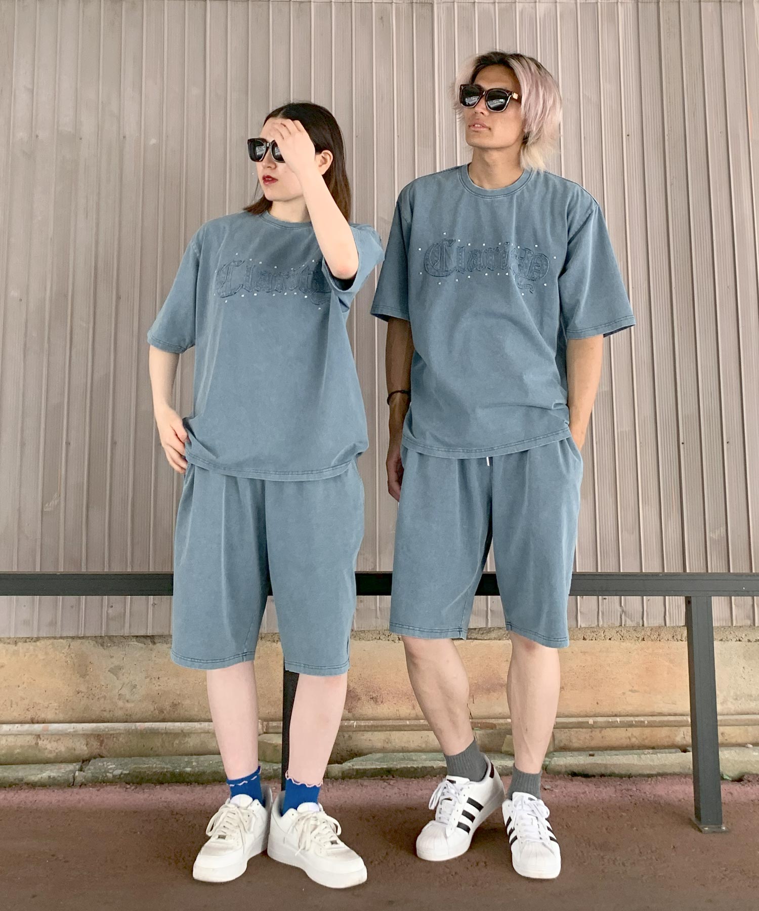 前とパンツの後ろ部分にあしらった立体的な厚盛りのロゴ刺繍がストリートな雰囲気にピッタリ☆彡