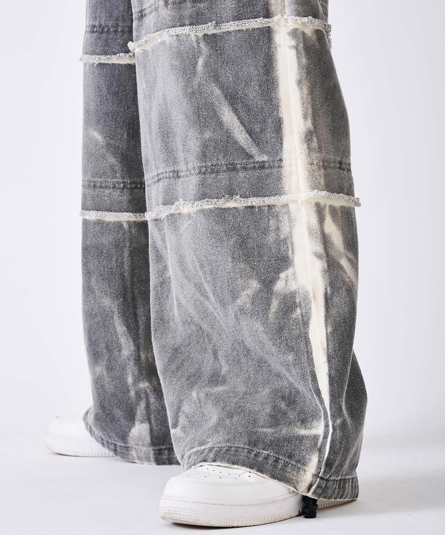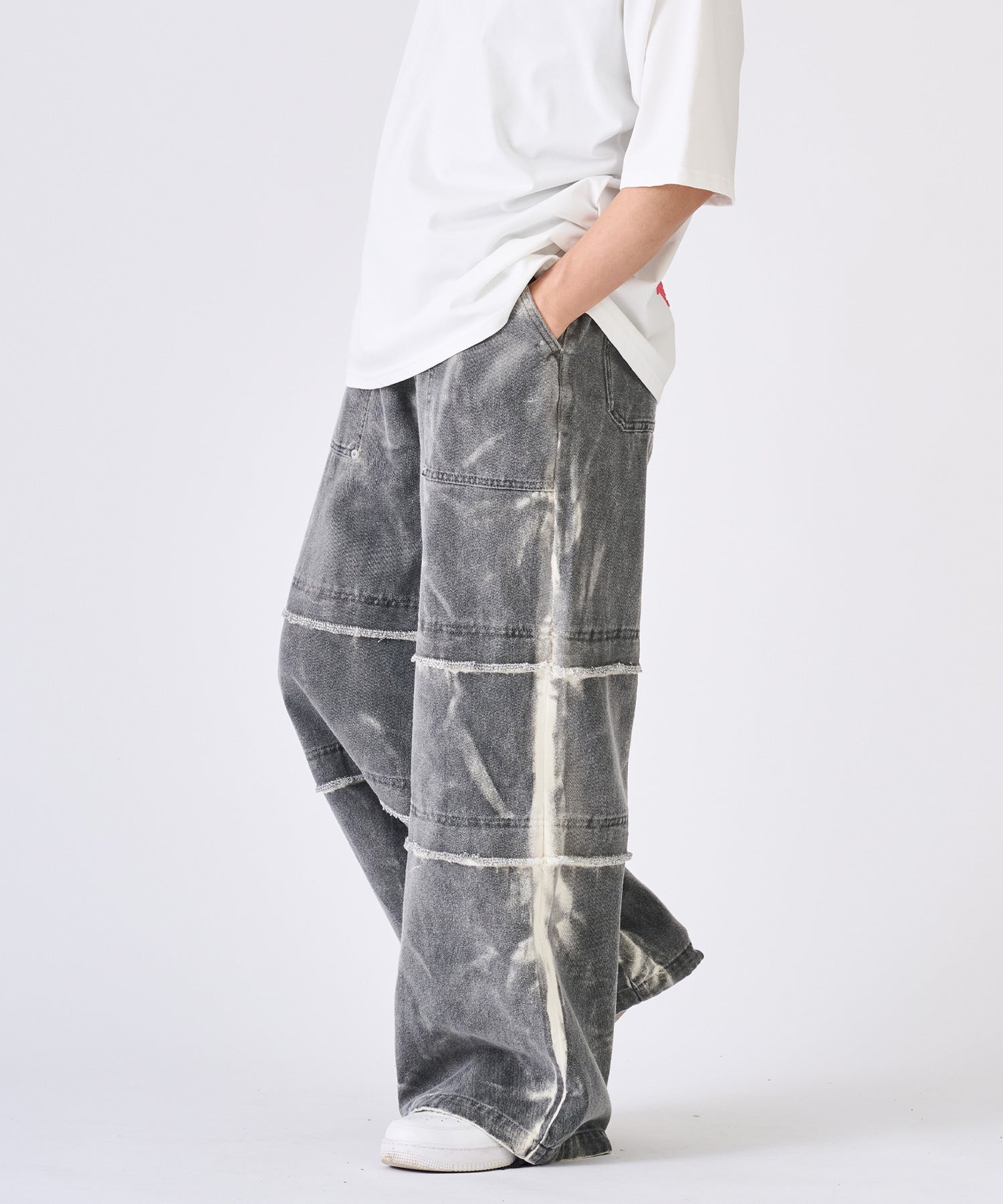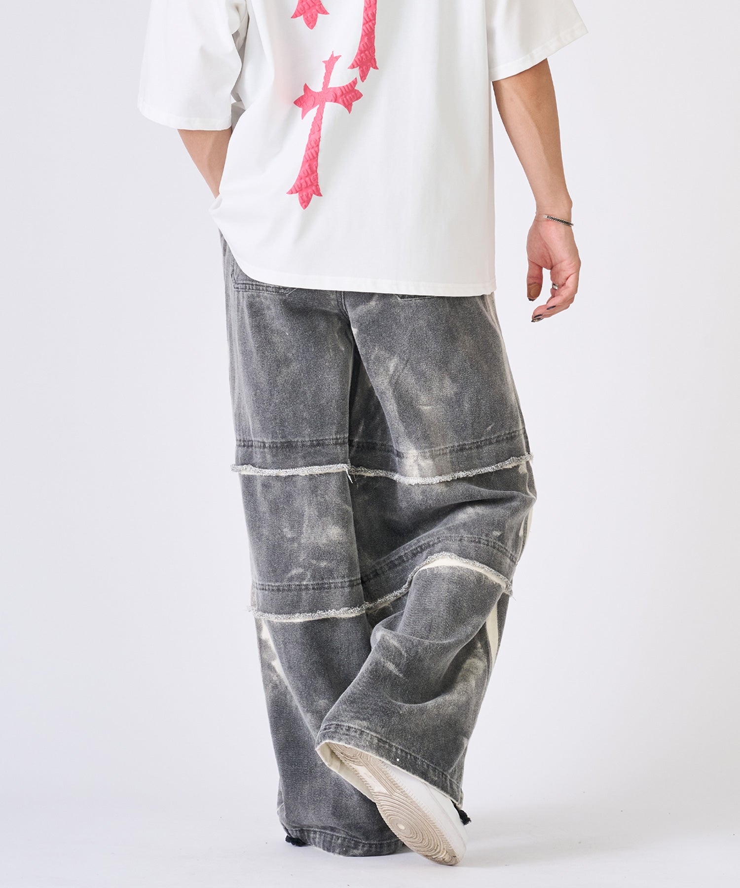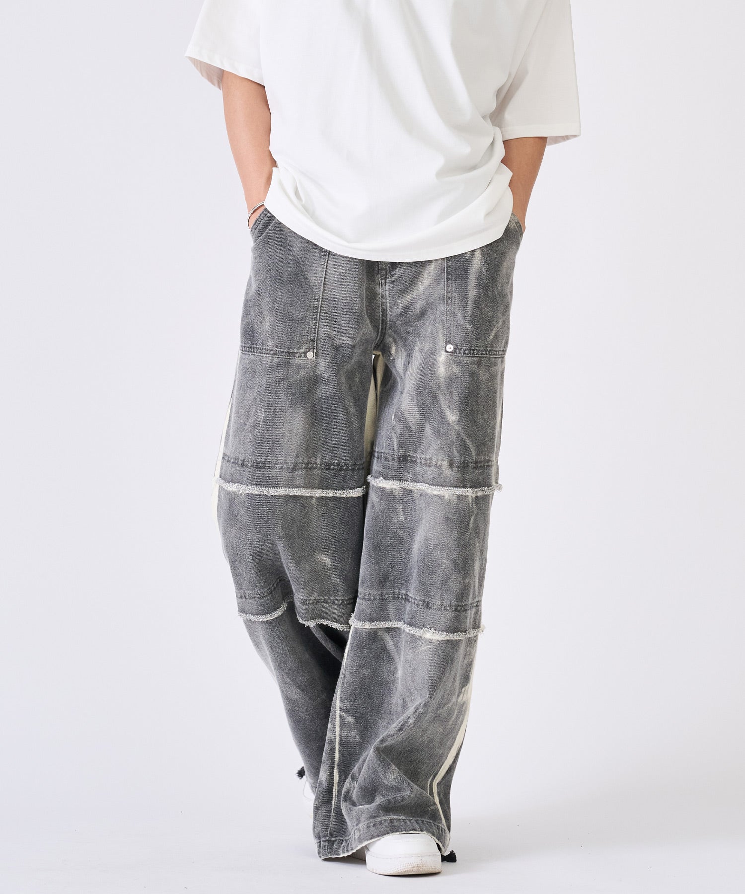 膝の部分は敢えて縫い繋いだデザインで、縫いしろ部分がはみ出してフリンジ仕上げになっているのも特徴的☆