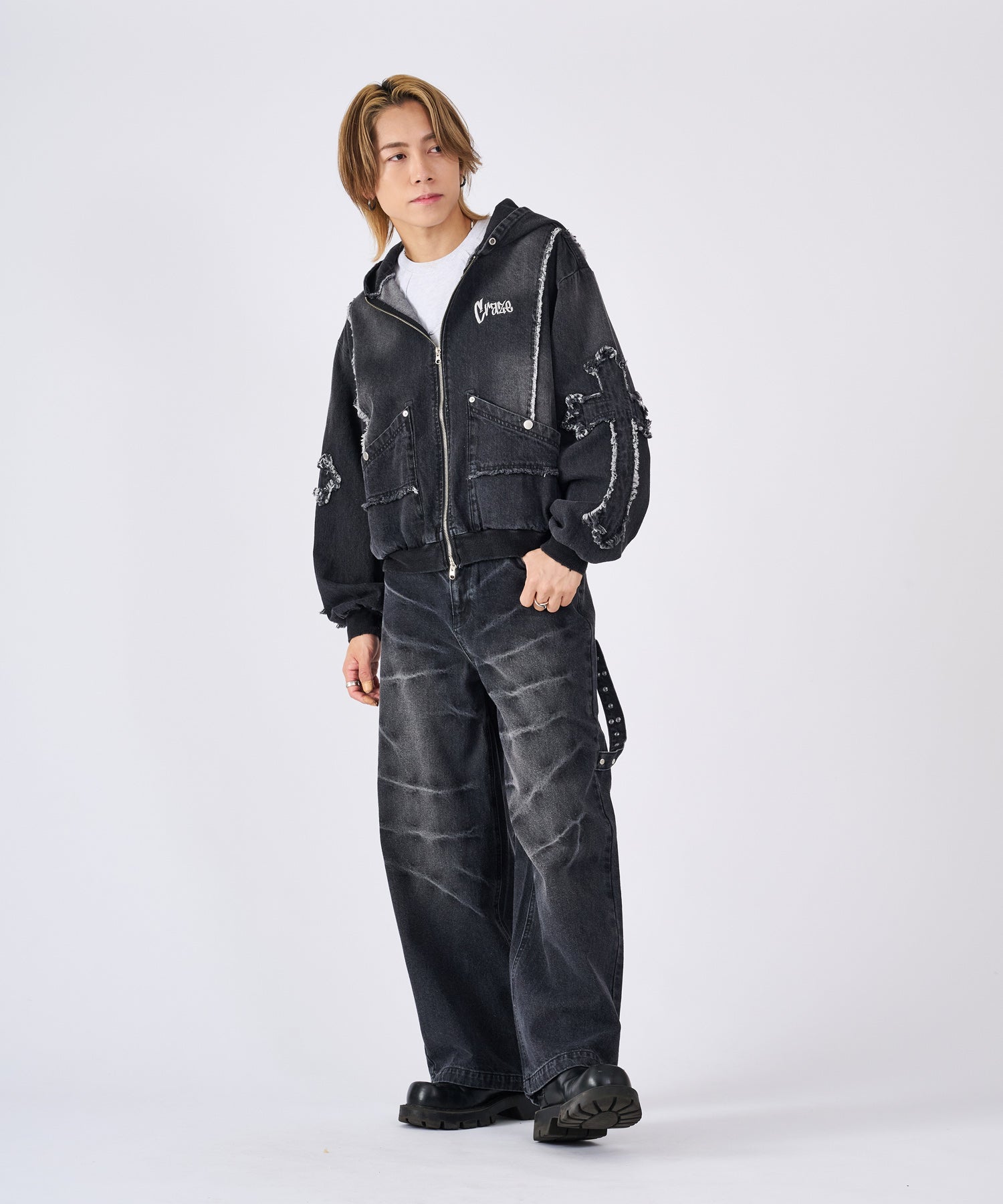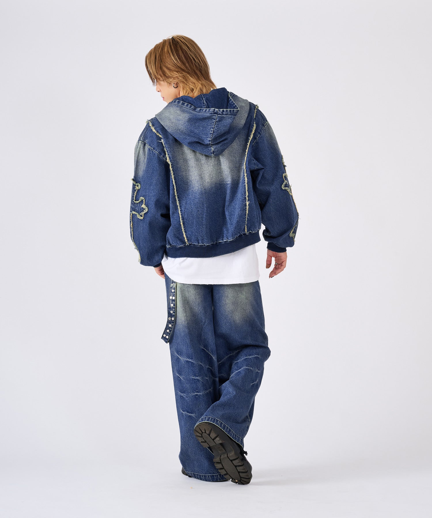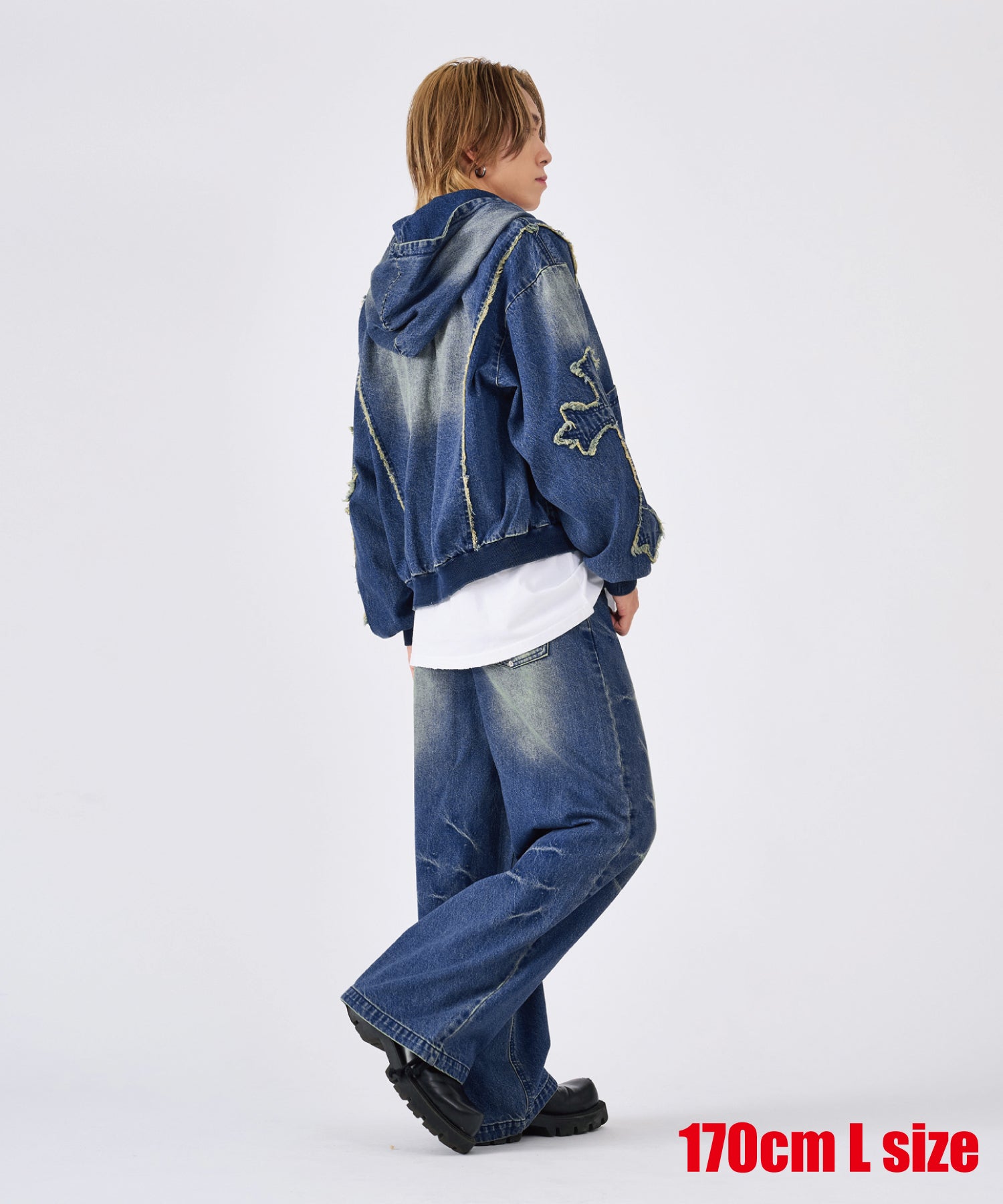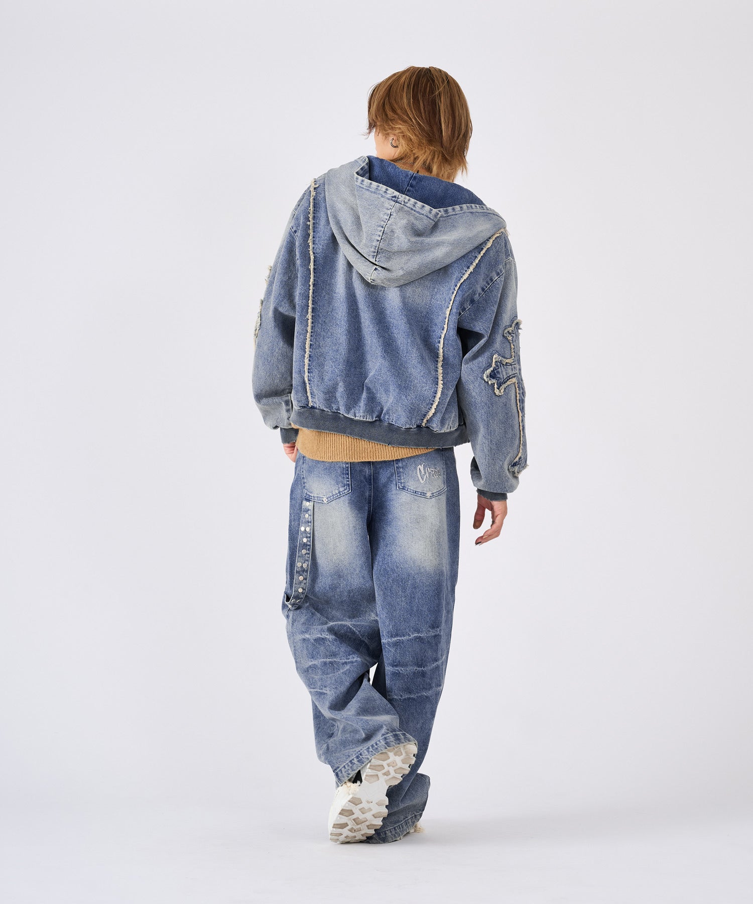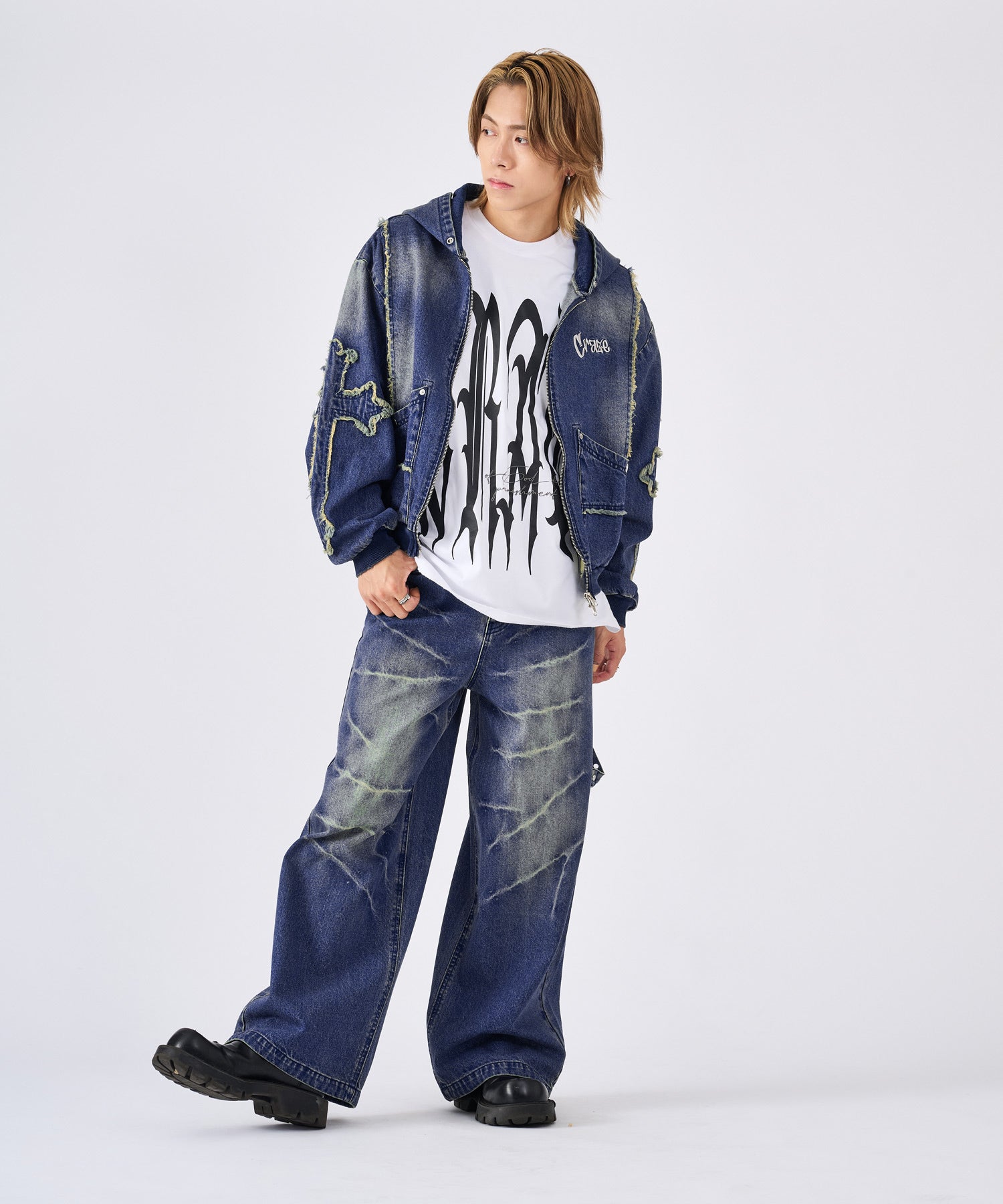 クロスアップリケがかっこいいデニムセットアップ☆ストリート好きにはたまらないアイテム♥