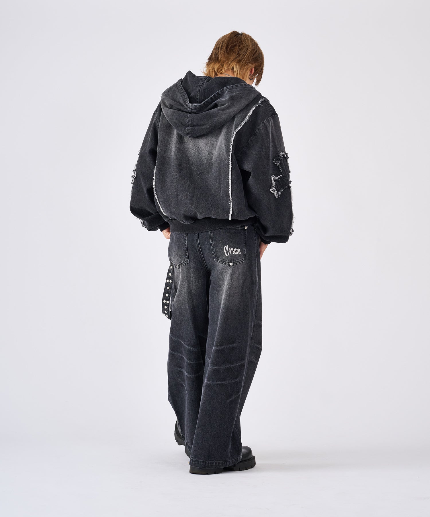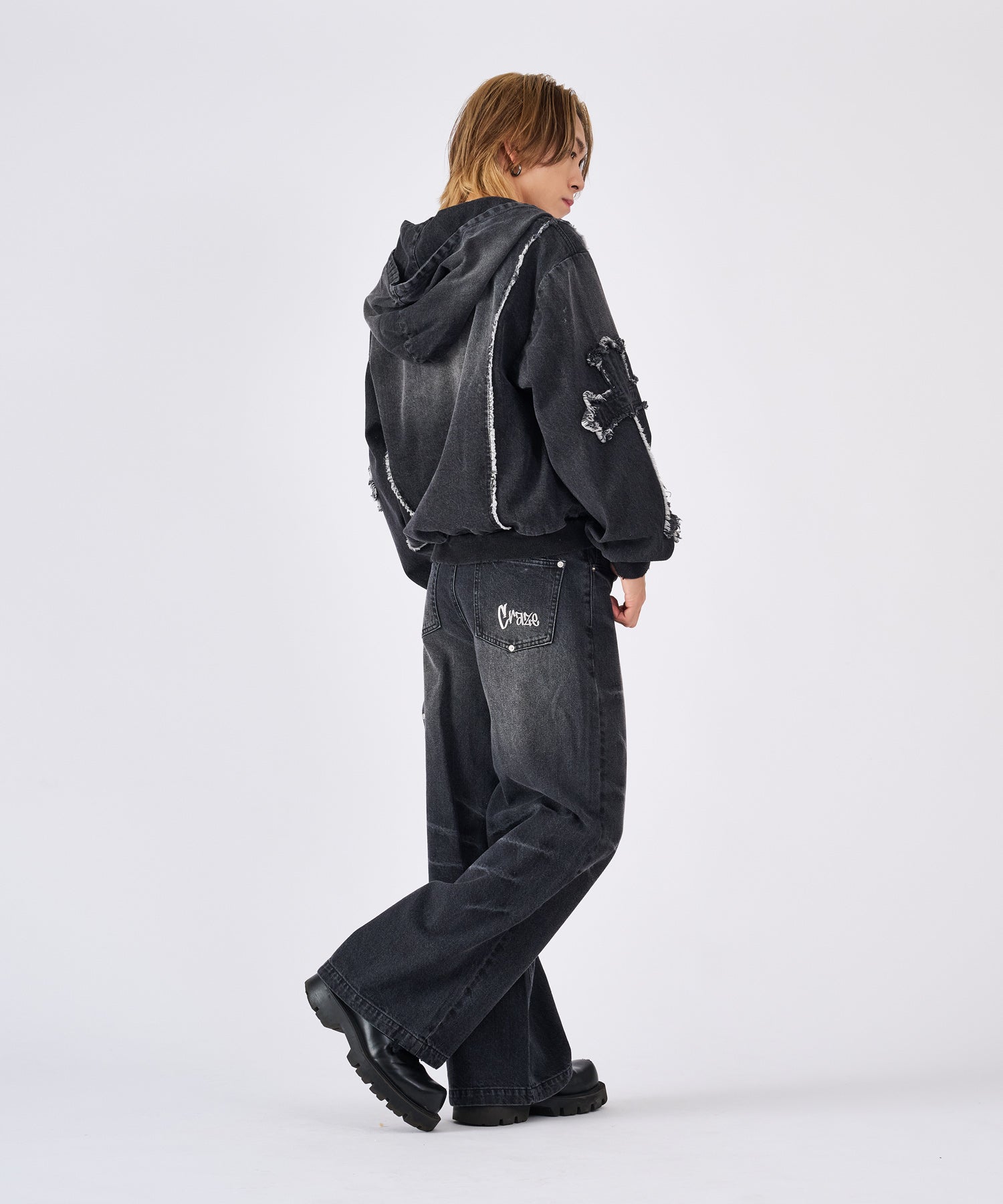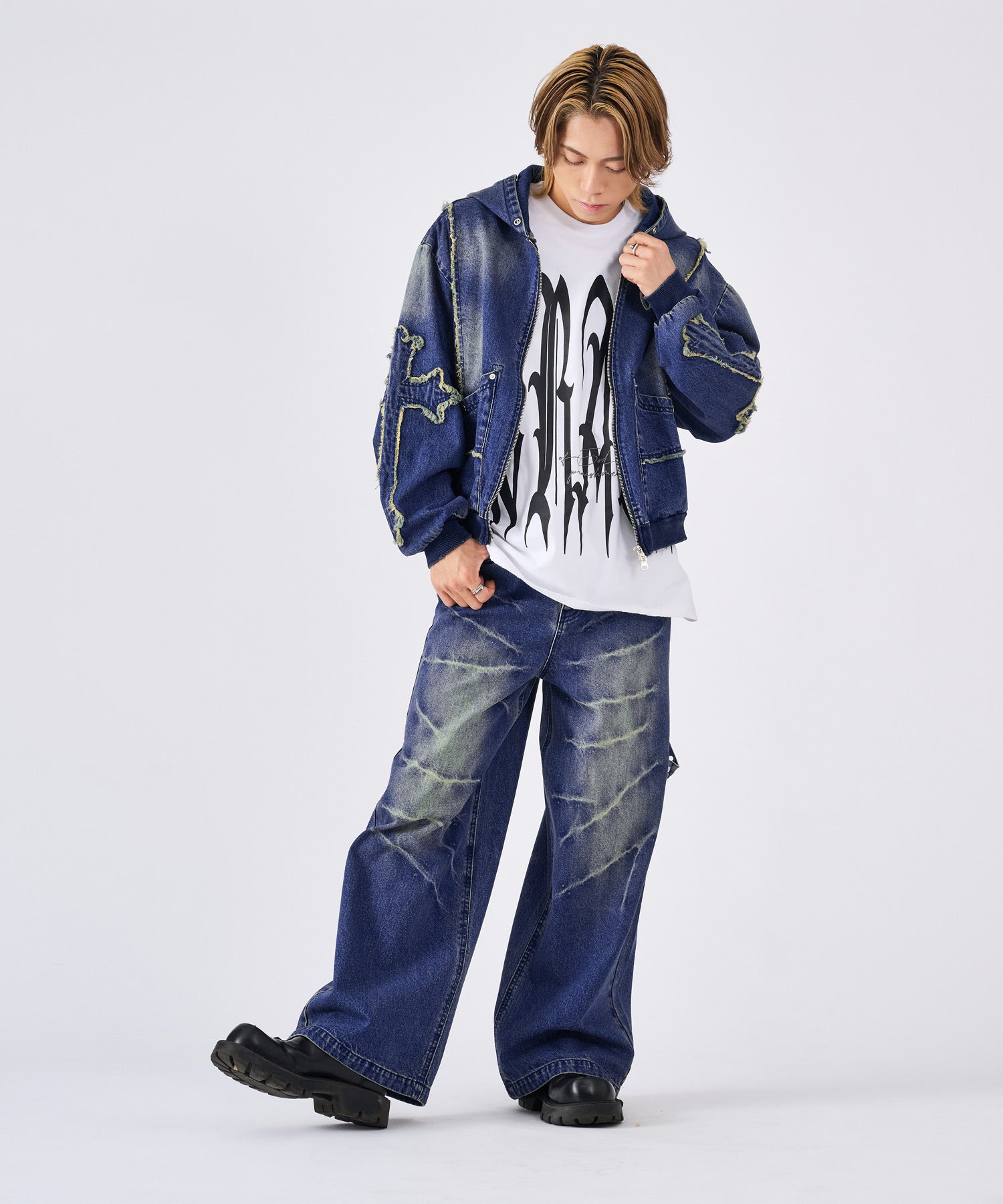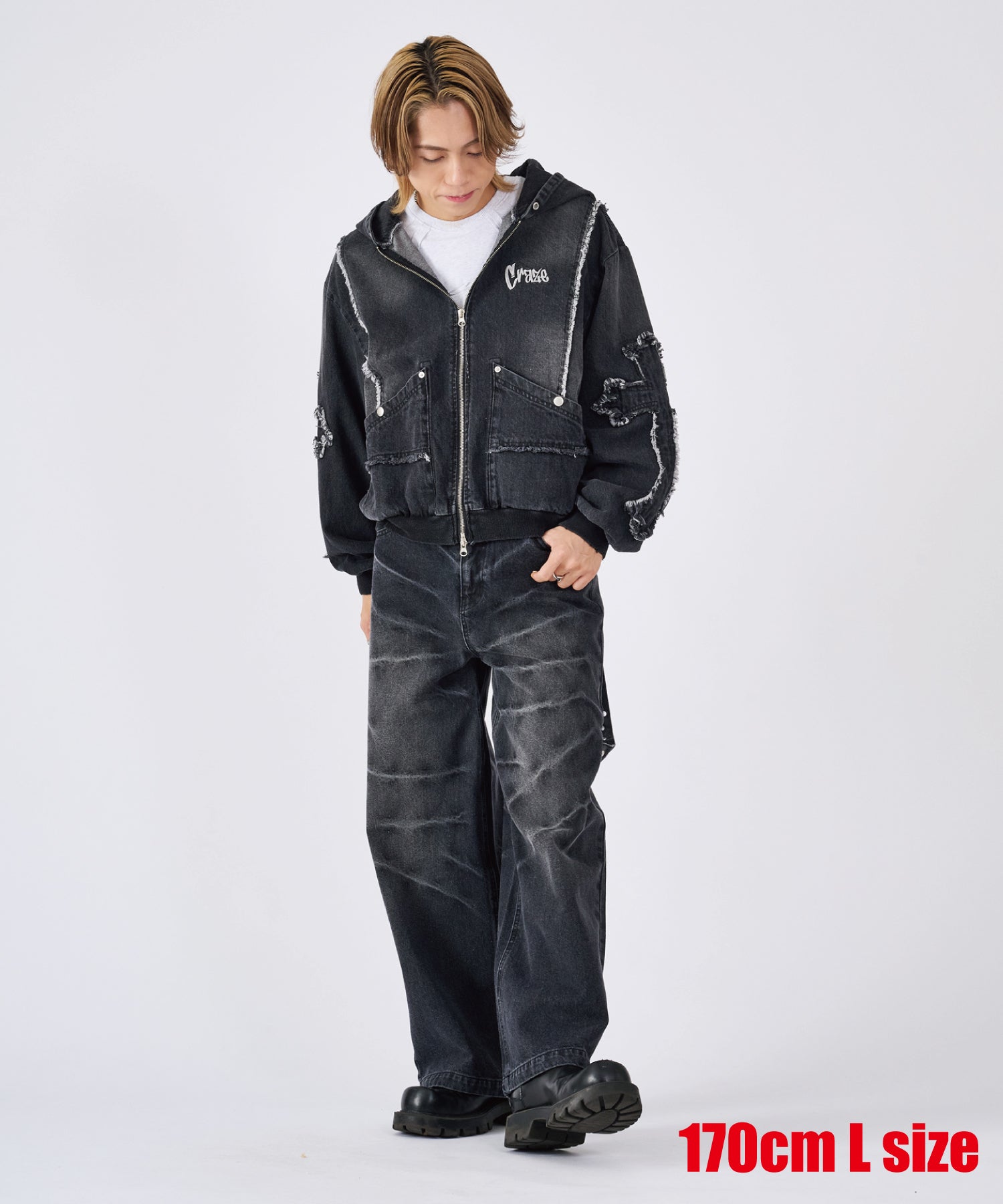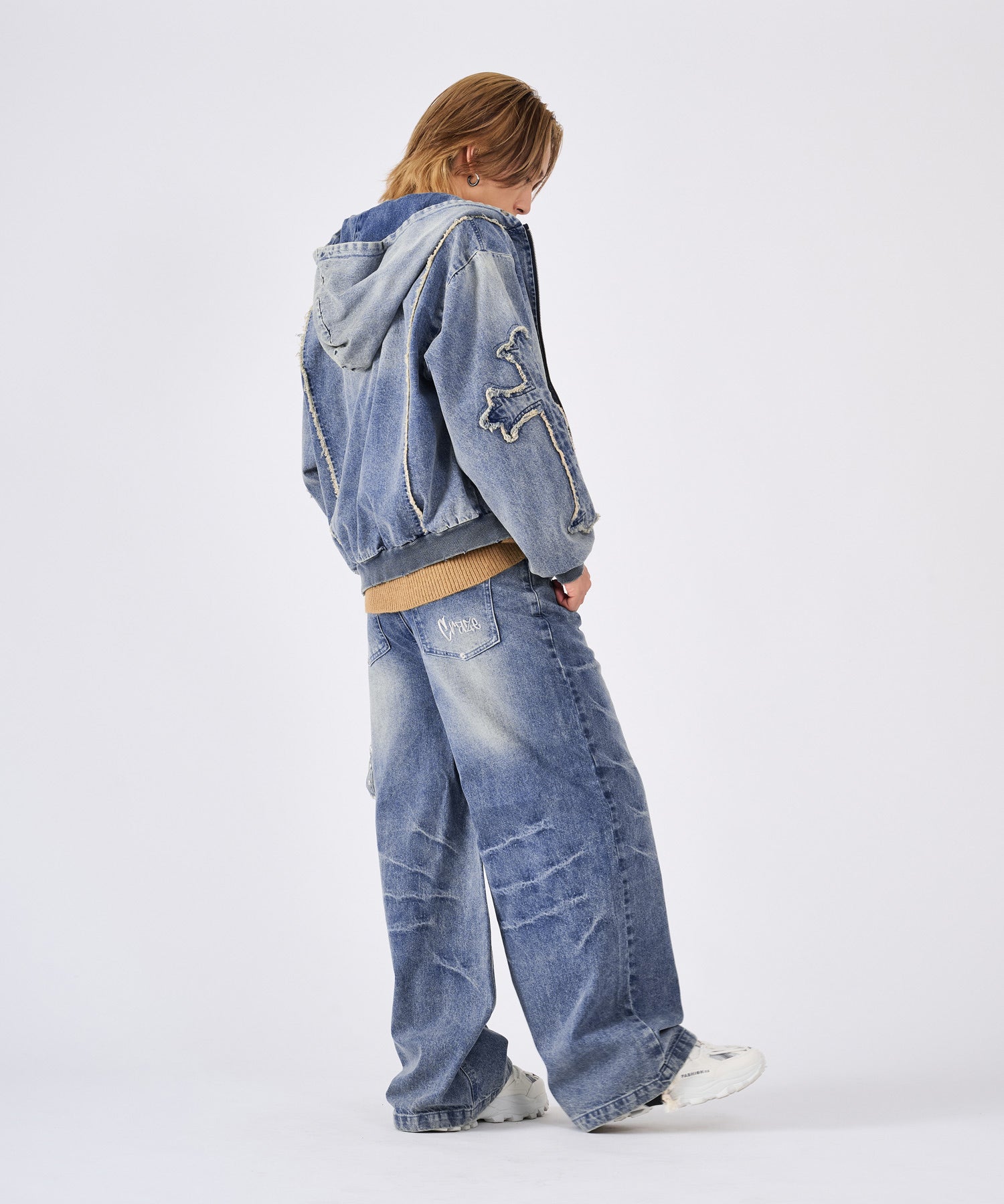 クロスアップリケがかっこいいデニムセットアップ☆ストリート好きにはたまらないアイテム♥