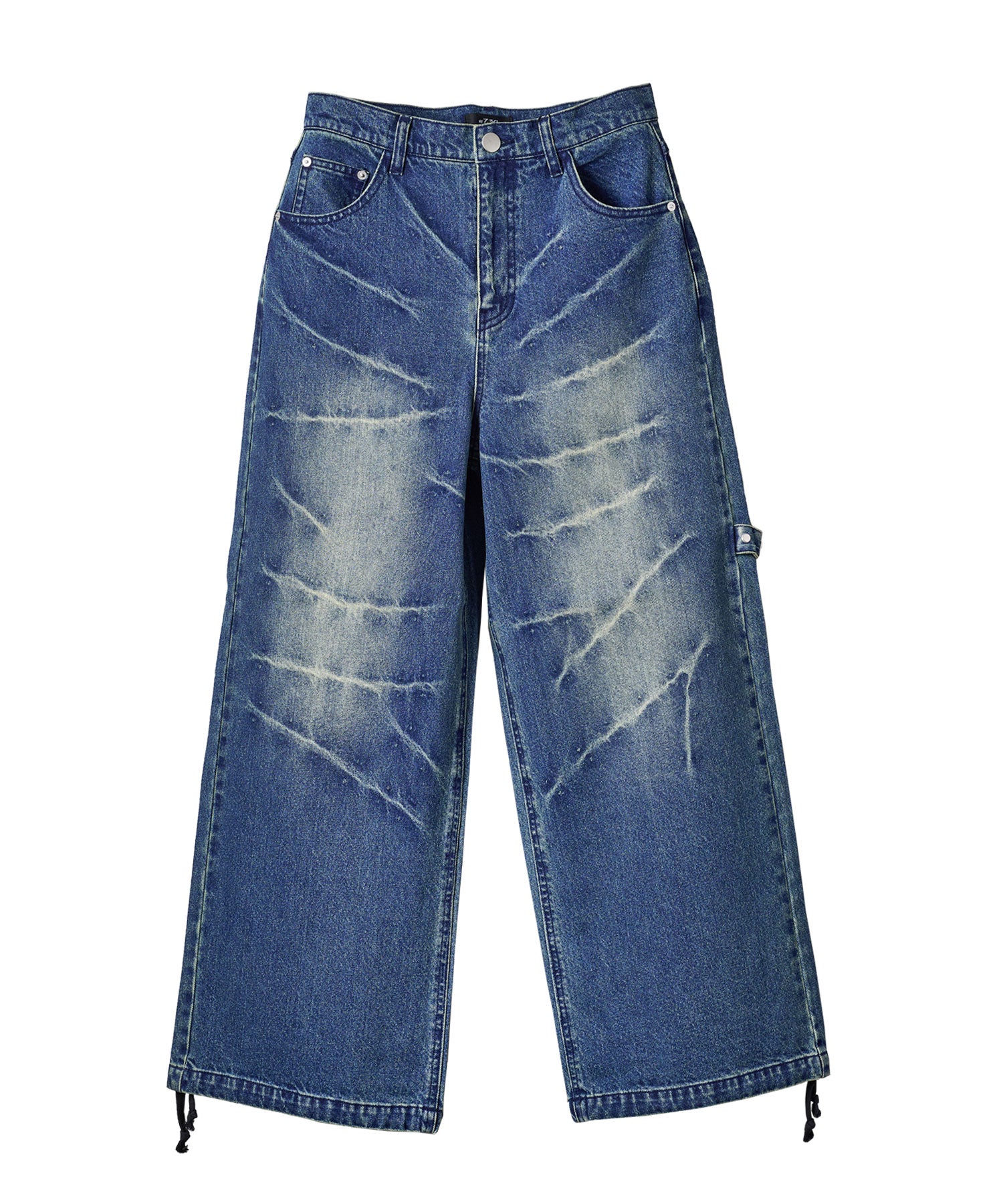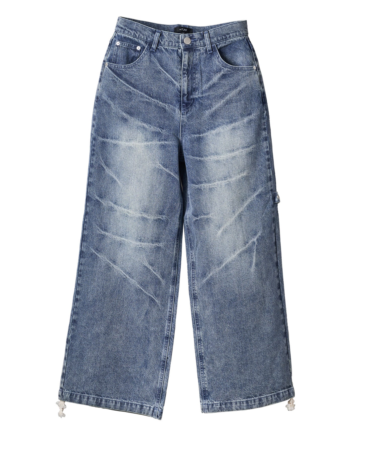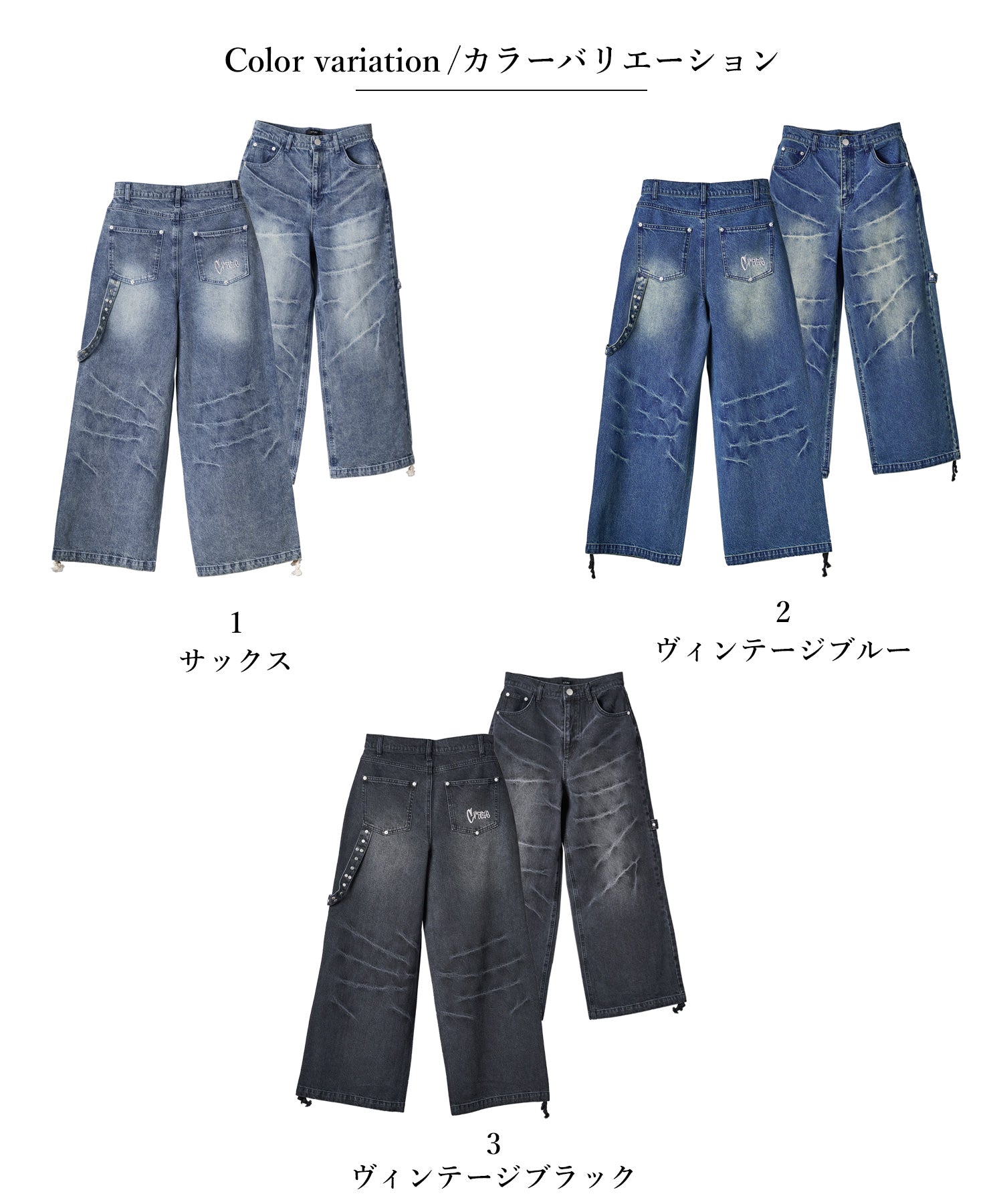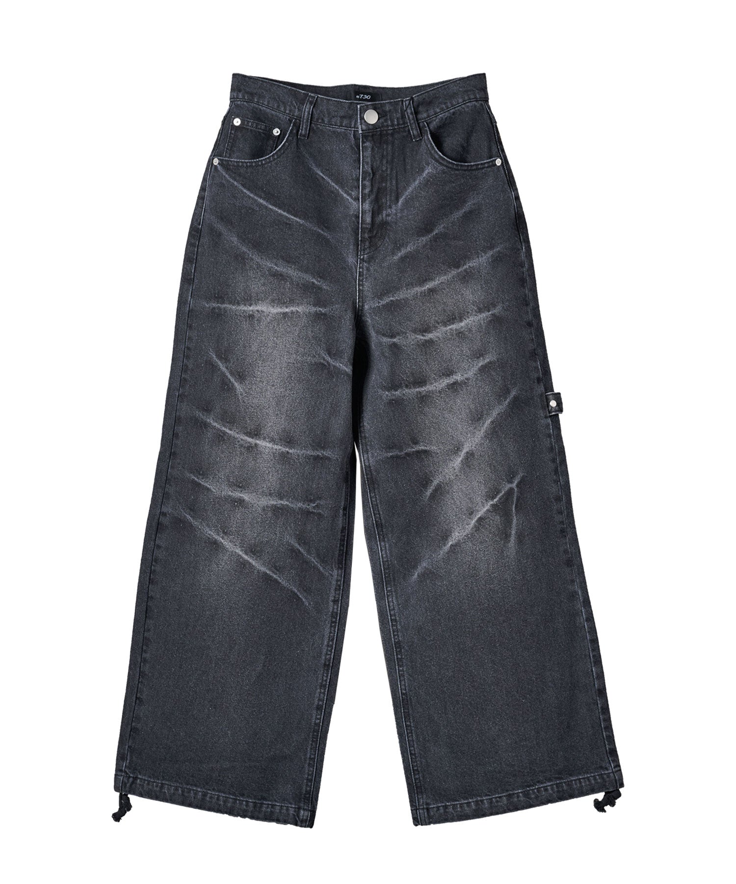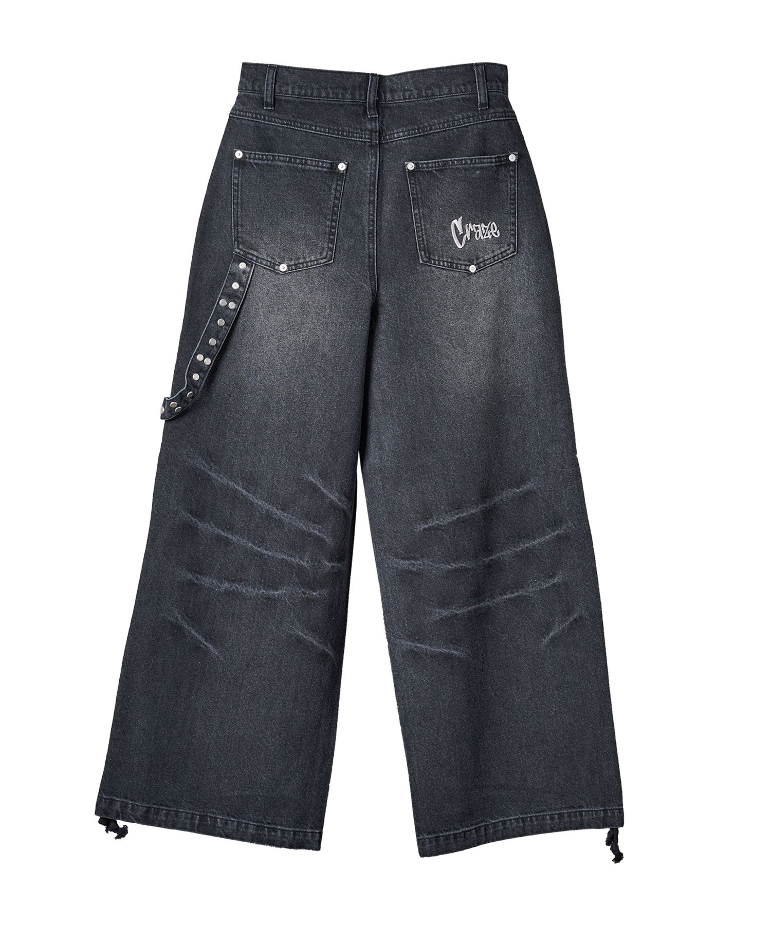 サイドのループは、リベットを施した長めのデザインで、アクセサリー的なディティールとしてアップデートされたデザイン☆やや股上深めのデザインは、ワイドながら脚長に見えるシルエット!裾はドローコードで絞ることもできるので、長さやシルエットを調整可能☆