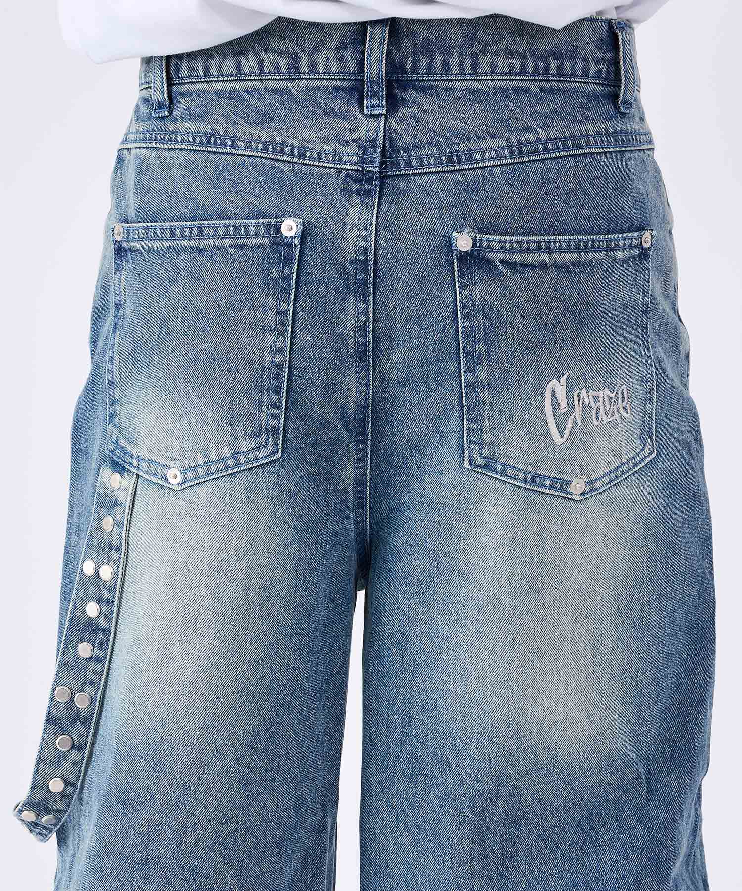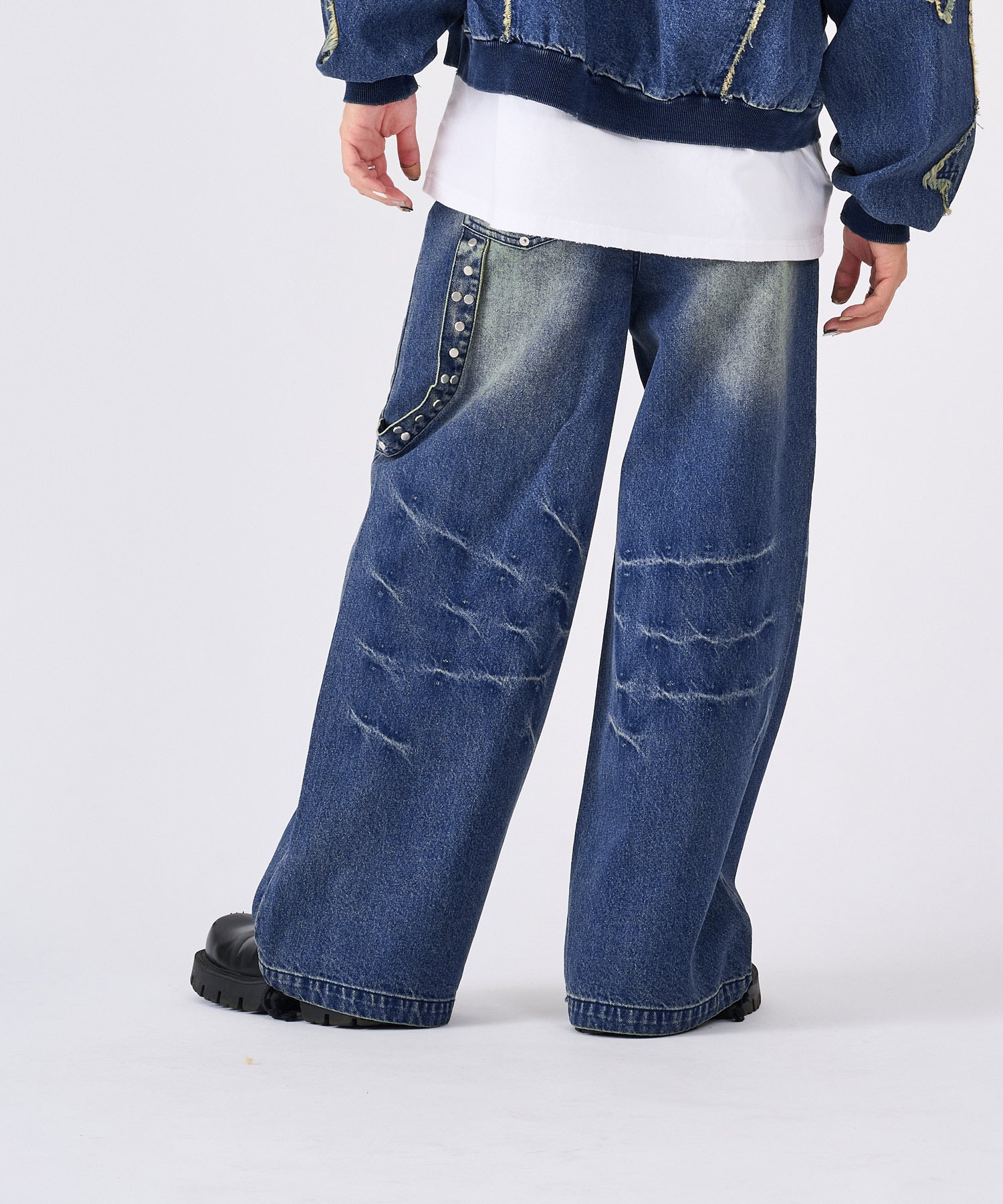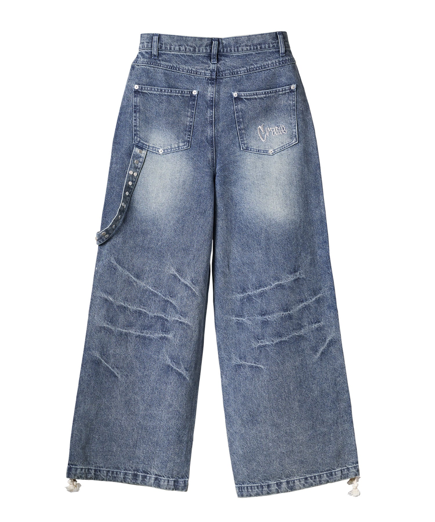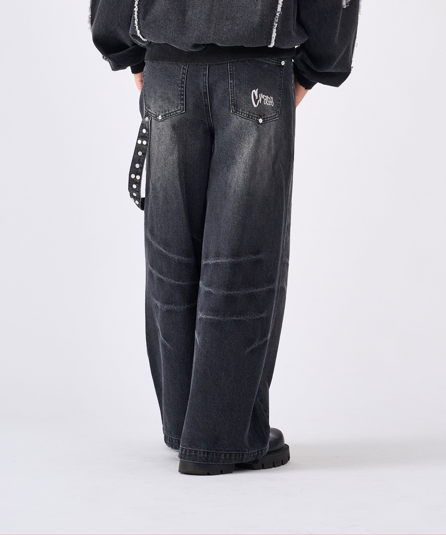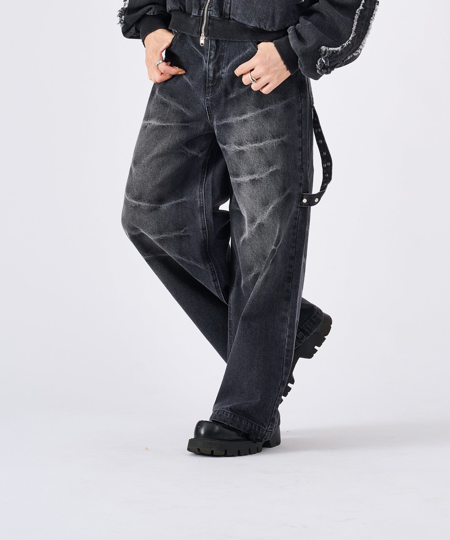 サイドのループは、リベットを施した長めのデザインで、アクセサリー的なディティールとしてアップデートされたデザイン☆やや股上深めのデザインは、ワイドながら脚長に見えるシルエット!裾はドローコードで絞ることもできるので、長さやシルエットを調整可能☆