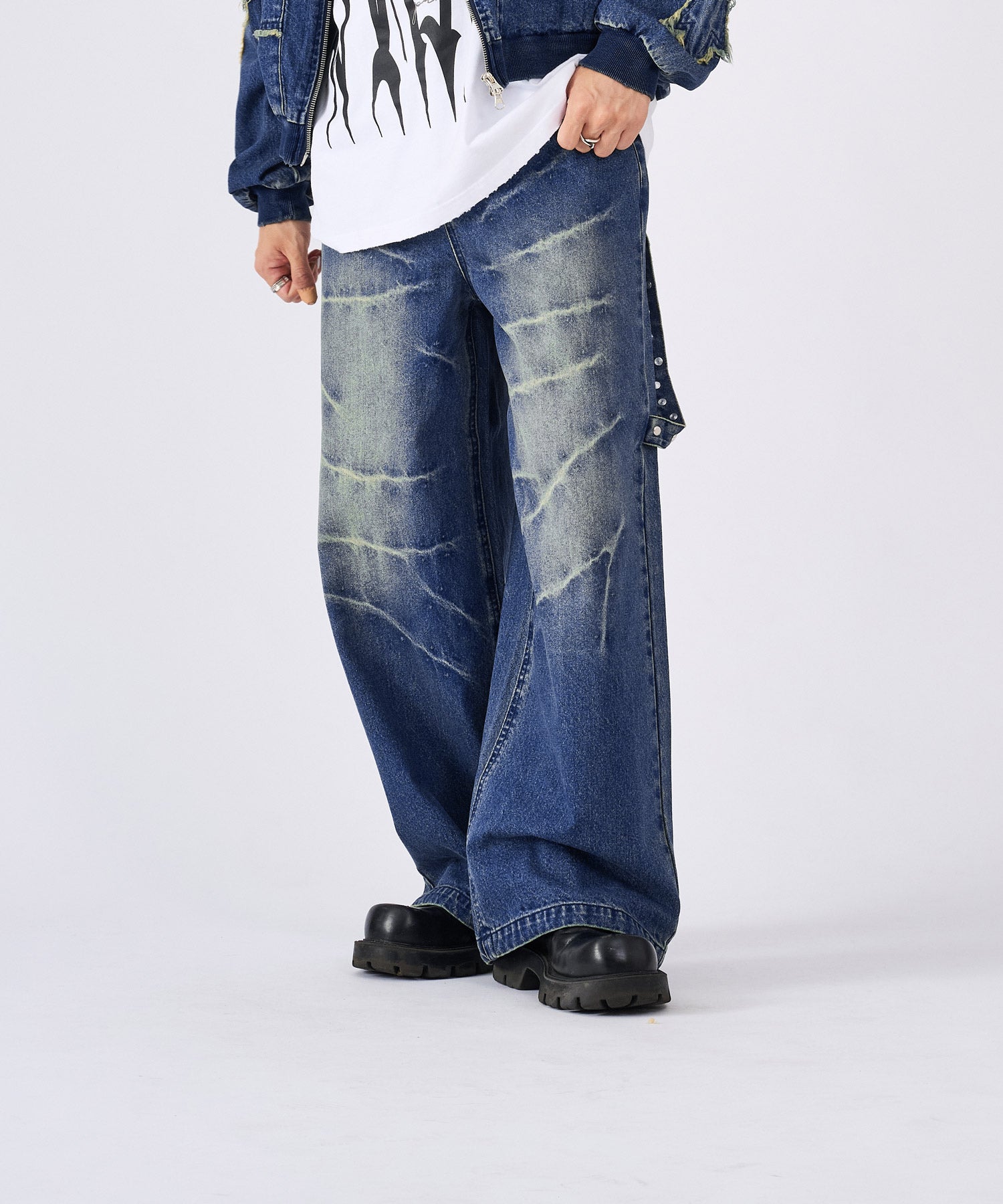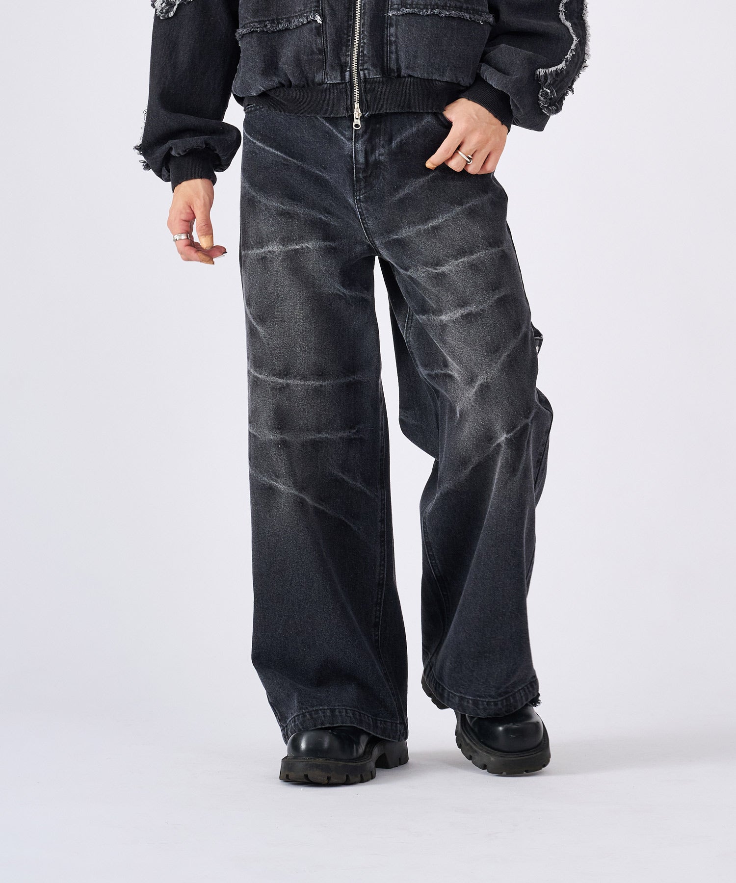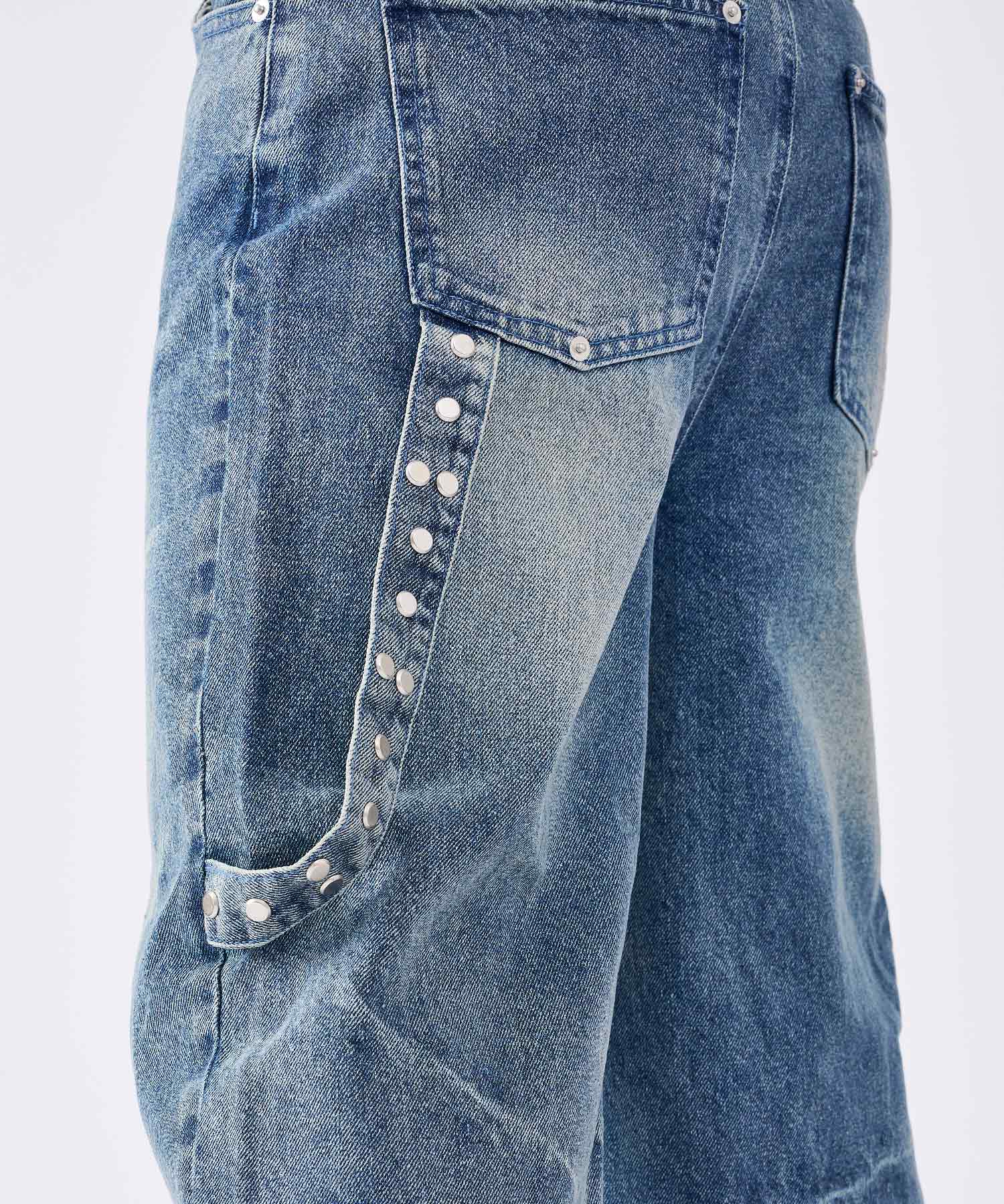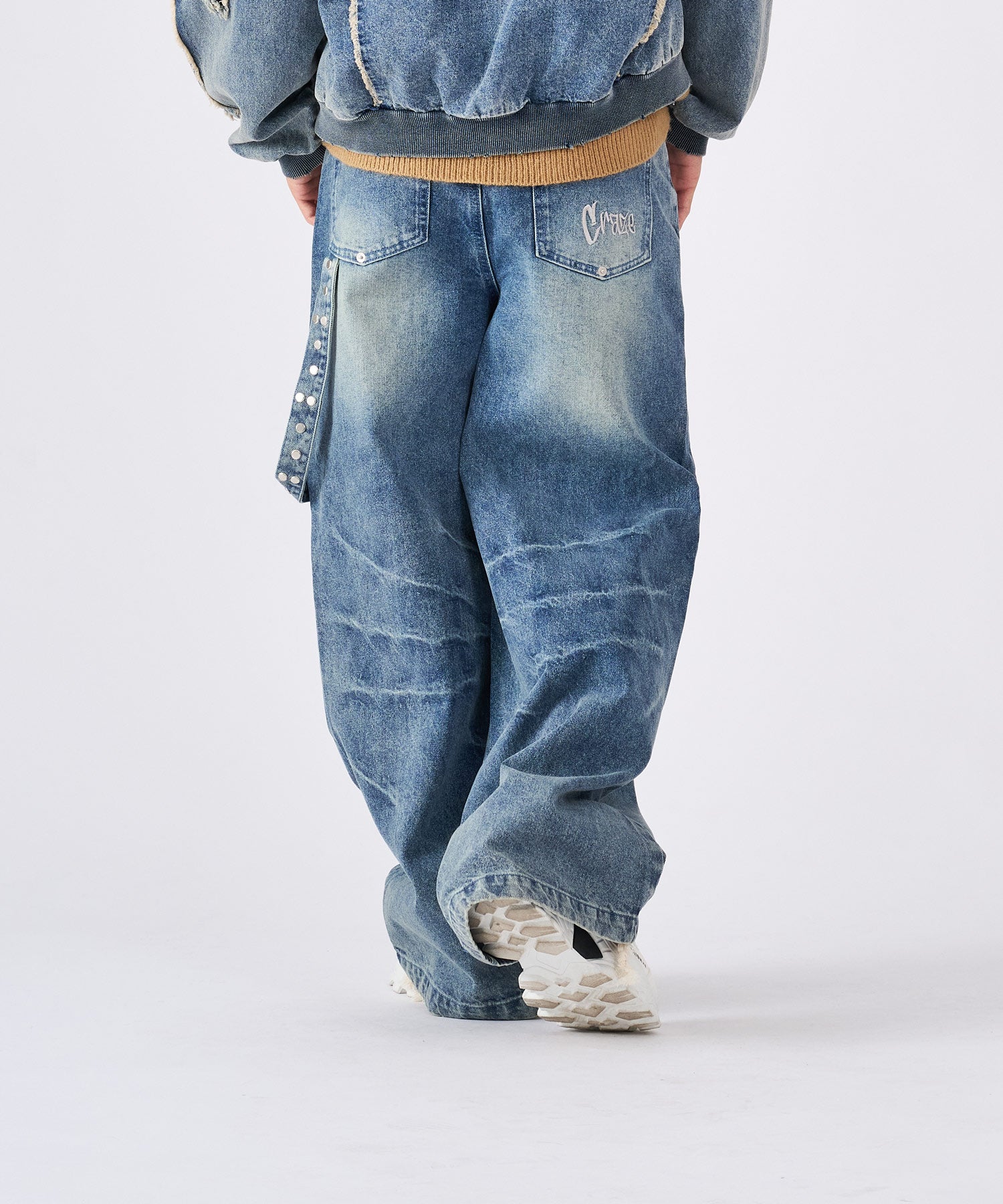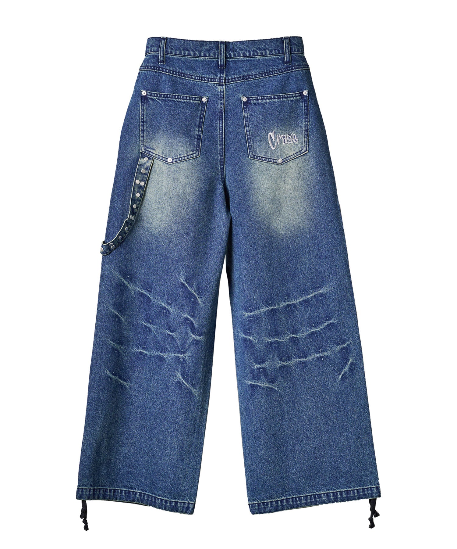 サイドのループは、リベットを施した長めのデザインで、アクセサリー的なディティールとしてアップデートされたデザイン☆やや股上深めのデザインは、ワイドながら脚長に見えるシルエット!裾はドローコードで絞ることもできるので、長さやシルエットを調整可能☆