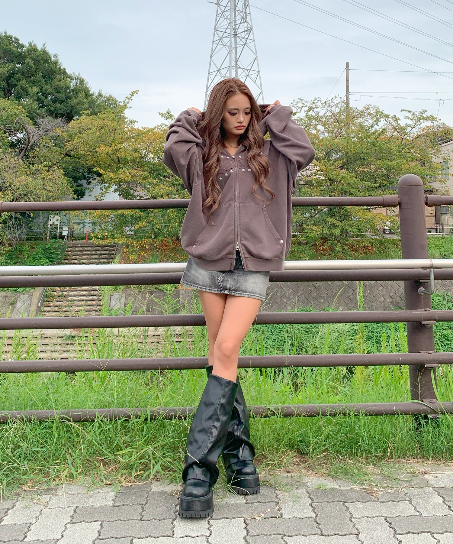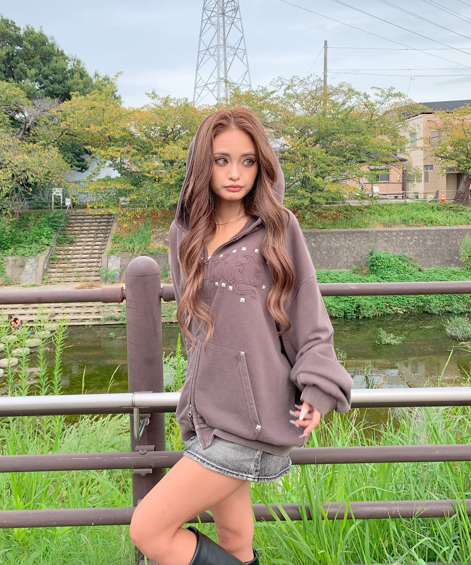 アップリケが可愛いオーバーサイズのZIPパーカー❤