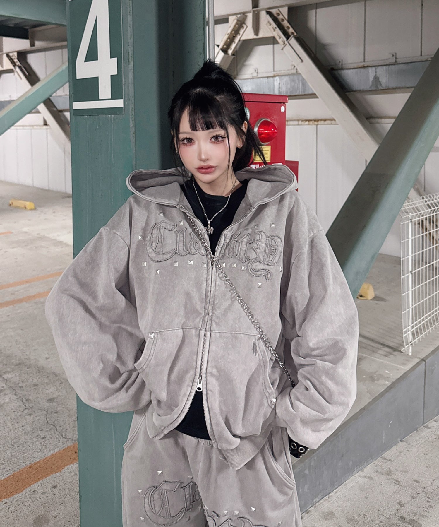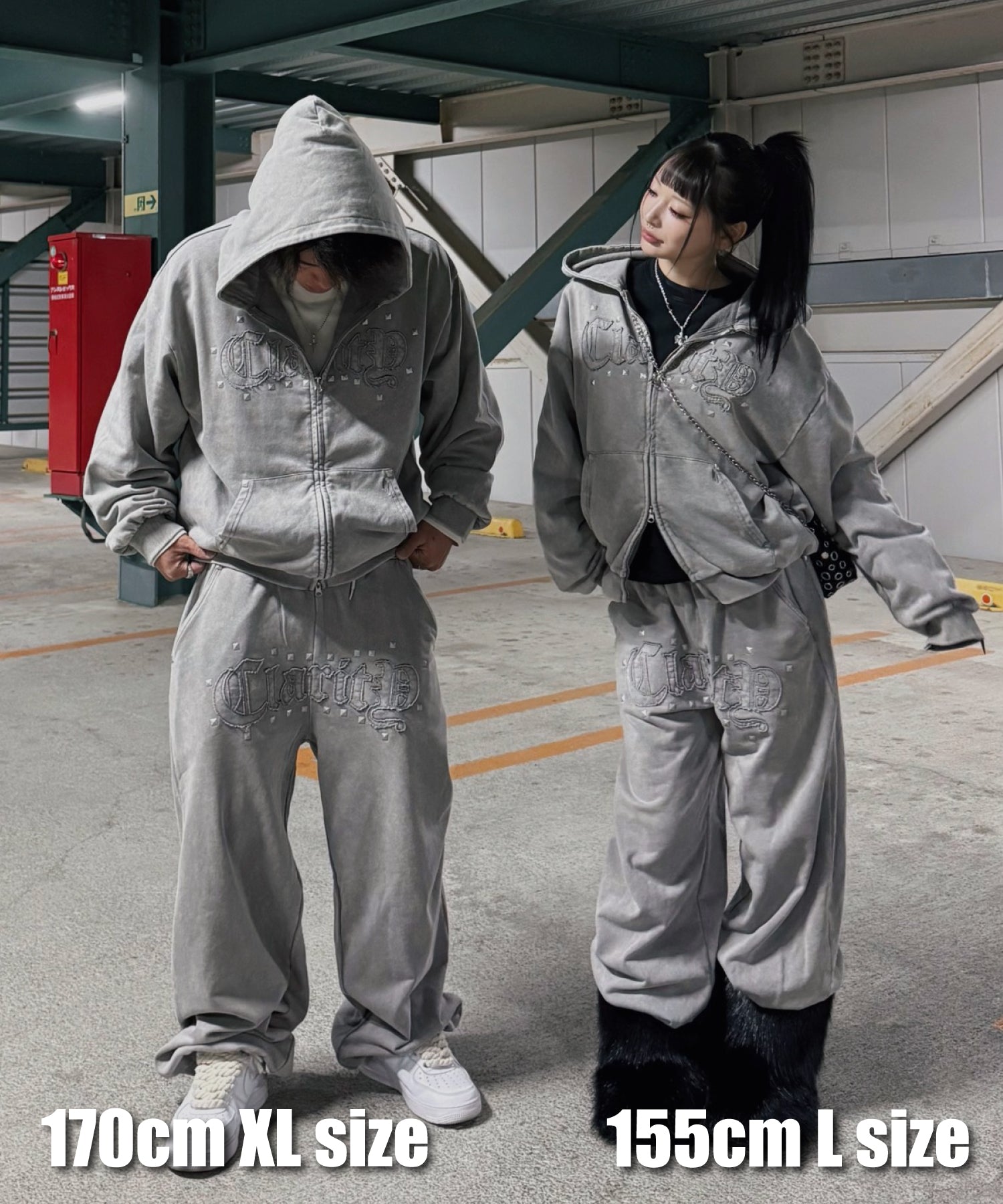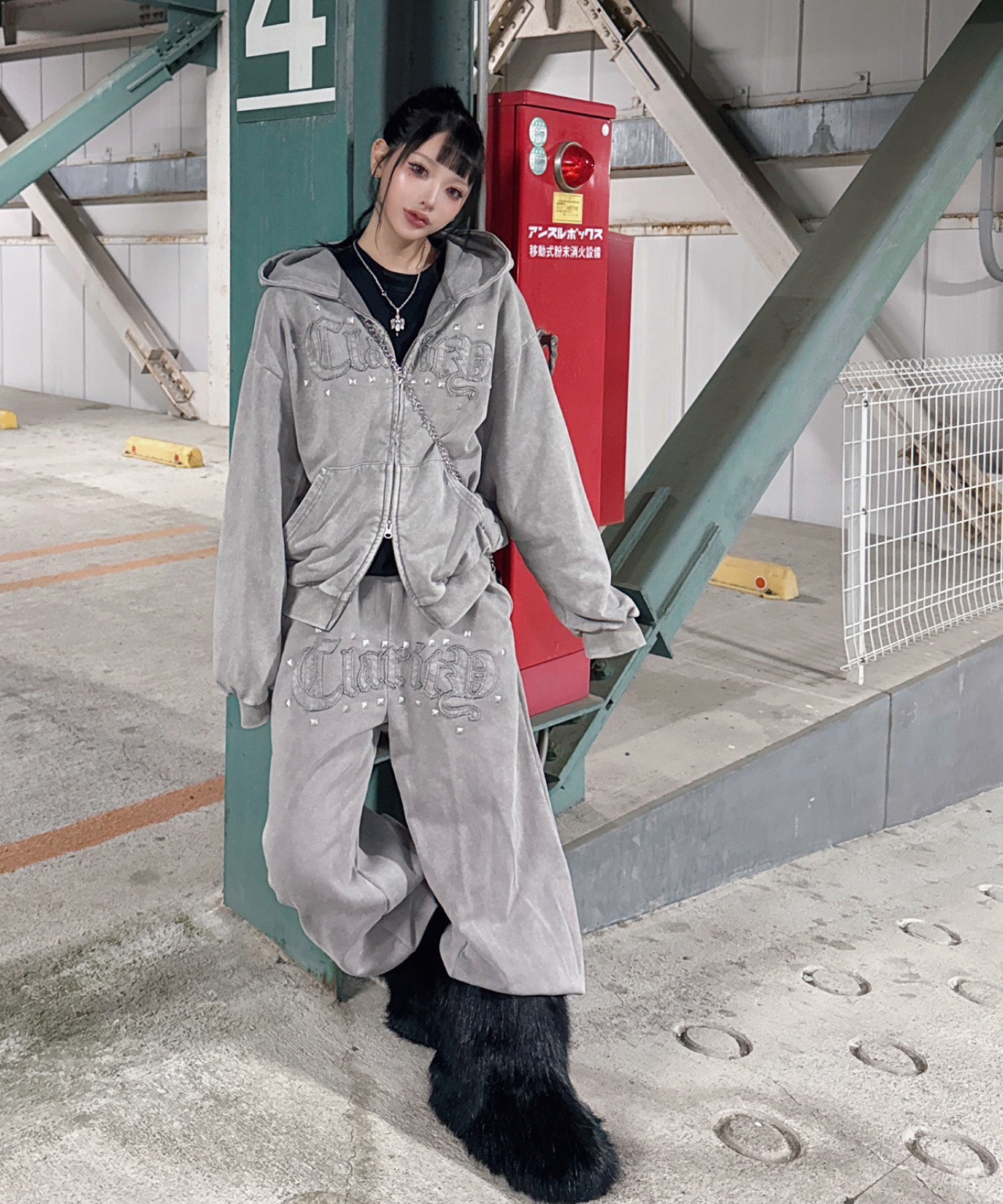 パーカーとパンツのロゴ部分にはスタッズも付いているので超かっこいい♪