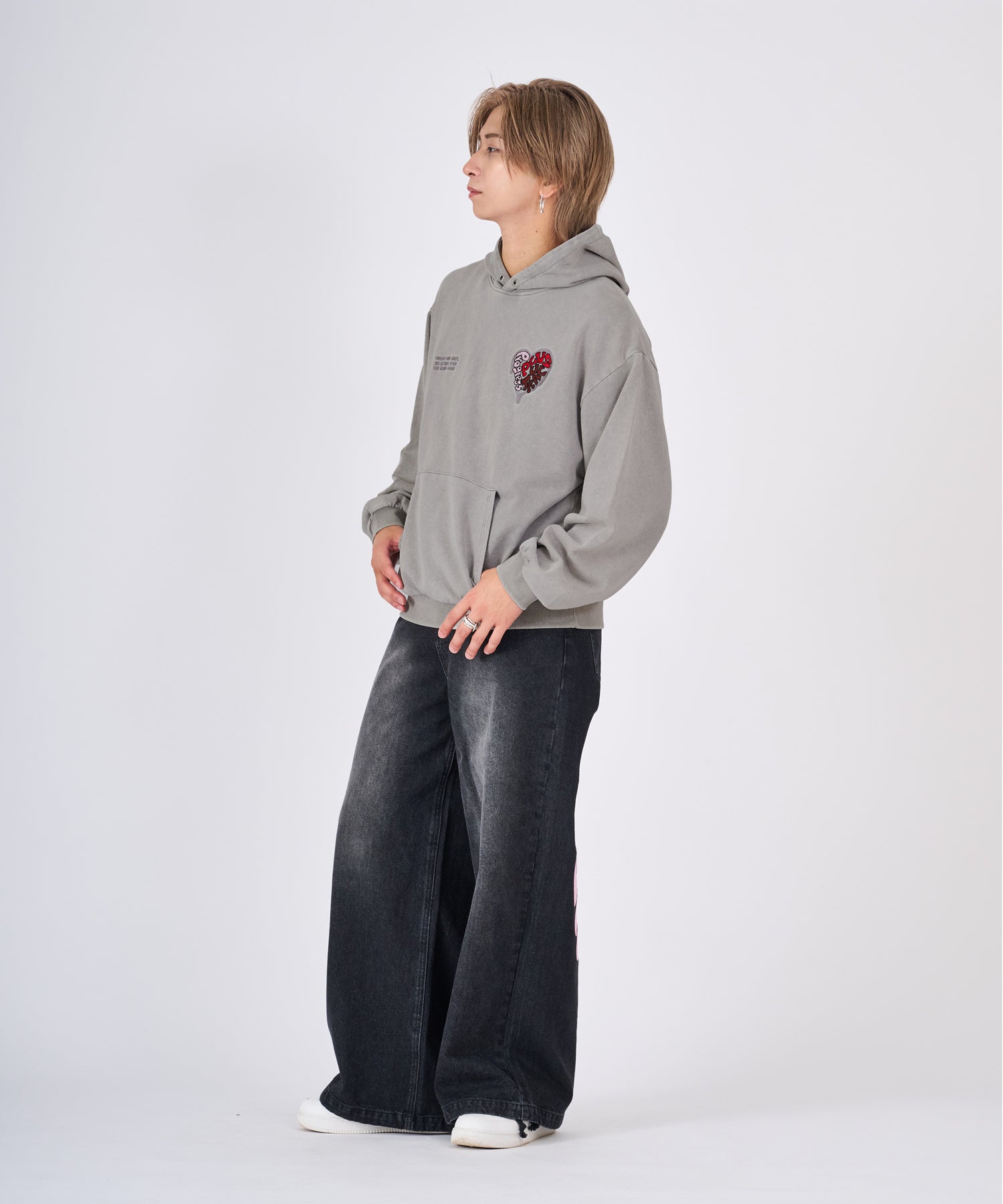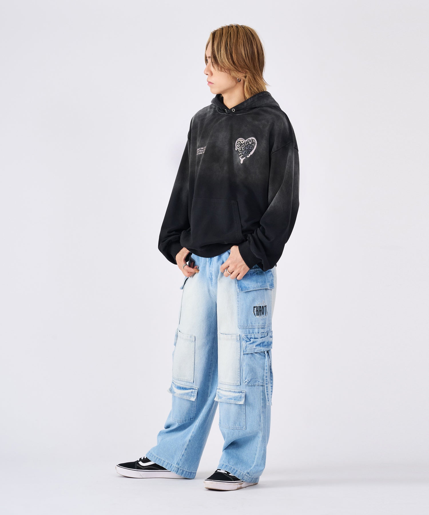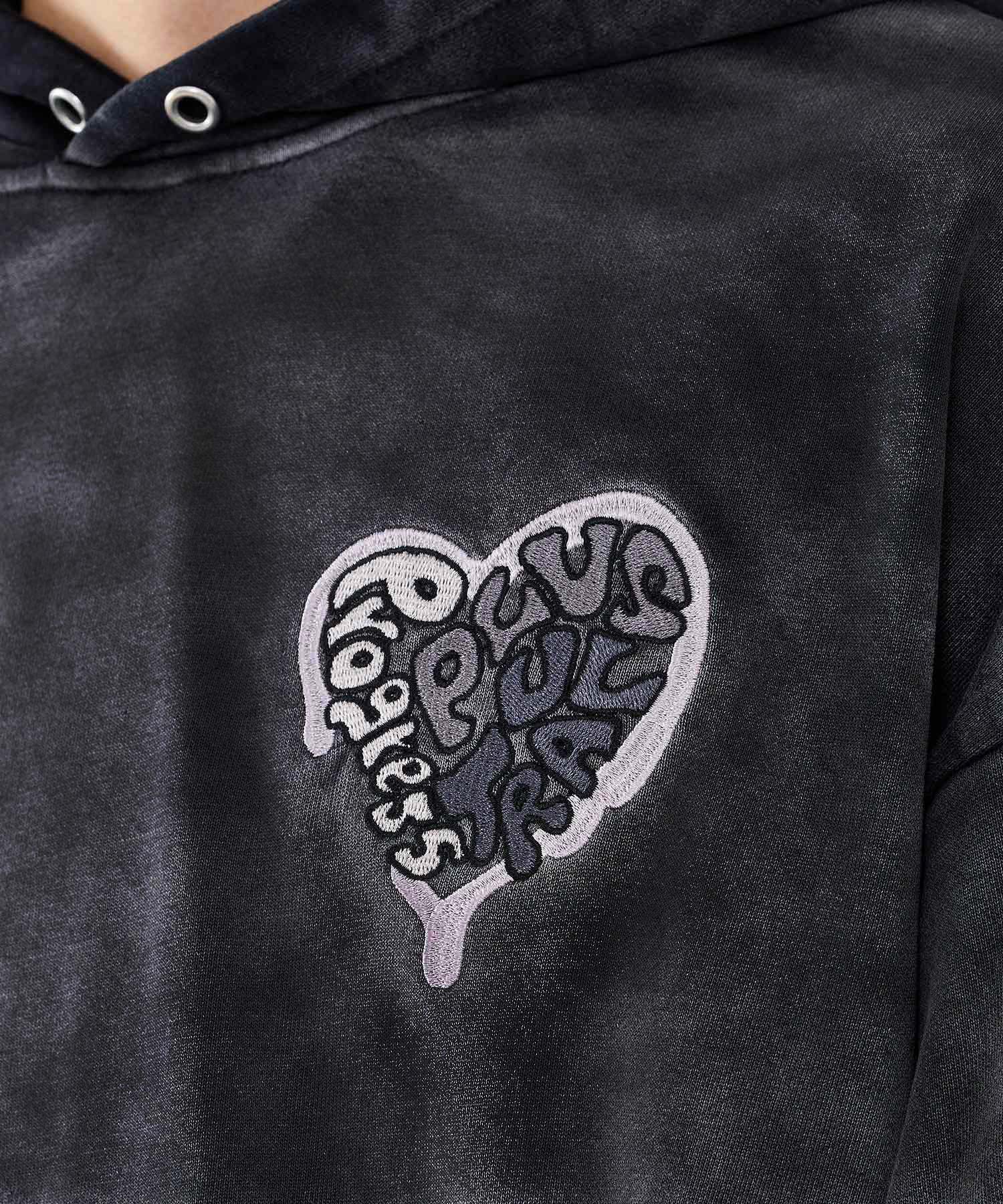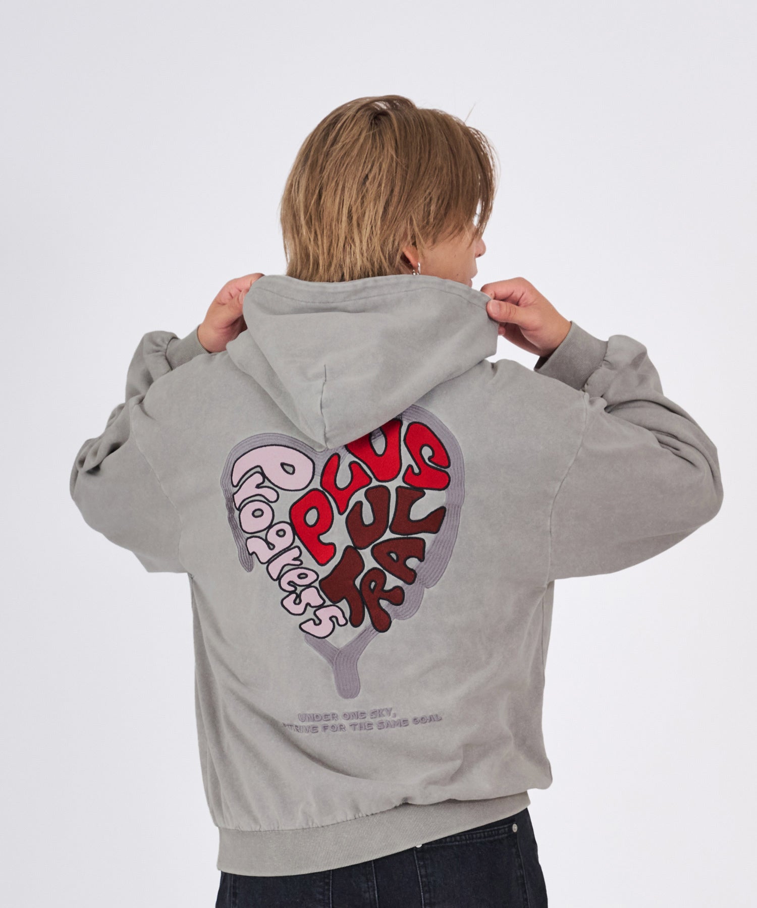 背中と胸のハート柄が人気のプルパーカー❤ハート柄になっているロゴは、カラーがグラデーションになっていて可愛い❤フロントにはポケットを設けたプルパーカーの定番的デザインなのでコーデにも合わせやすい♪