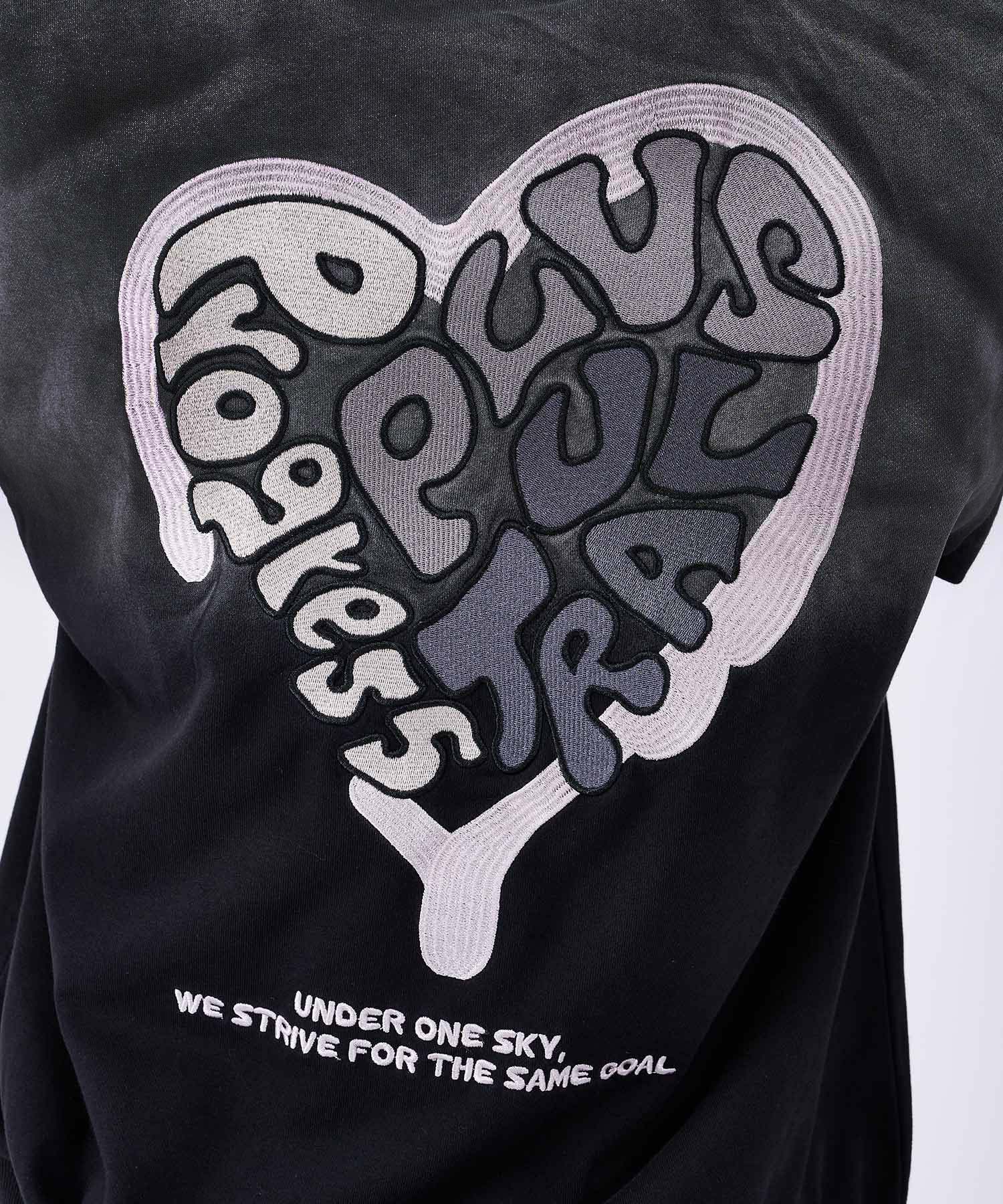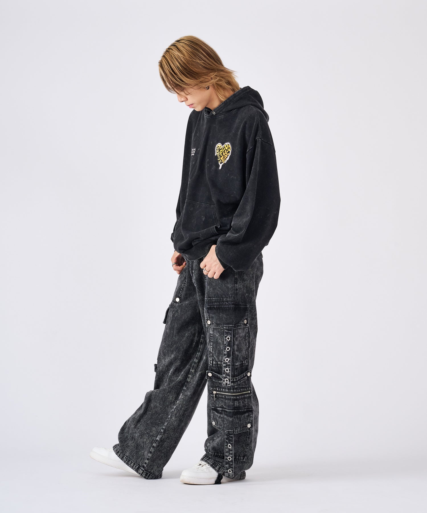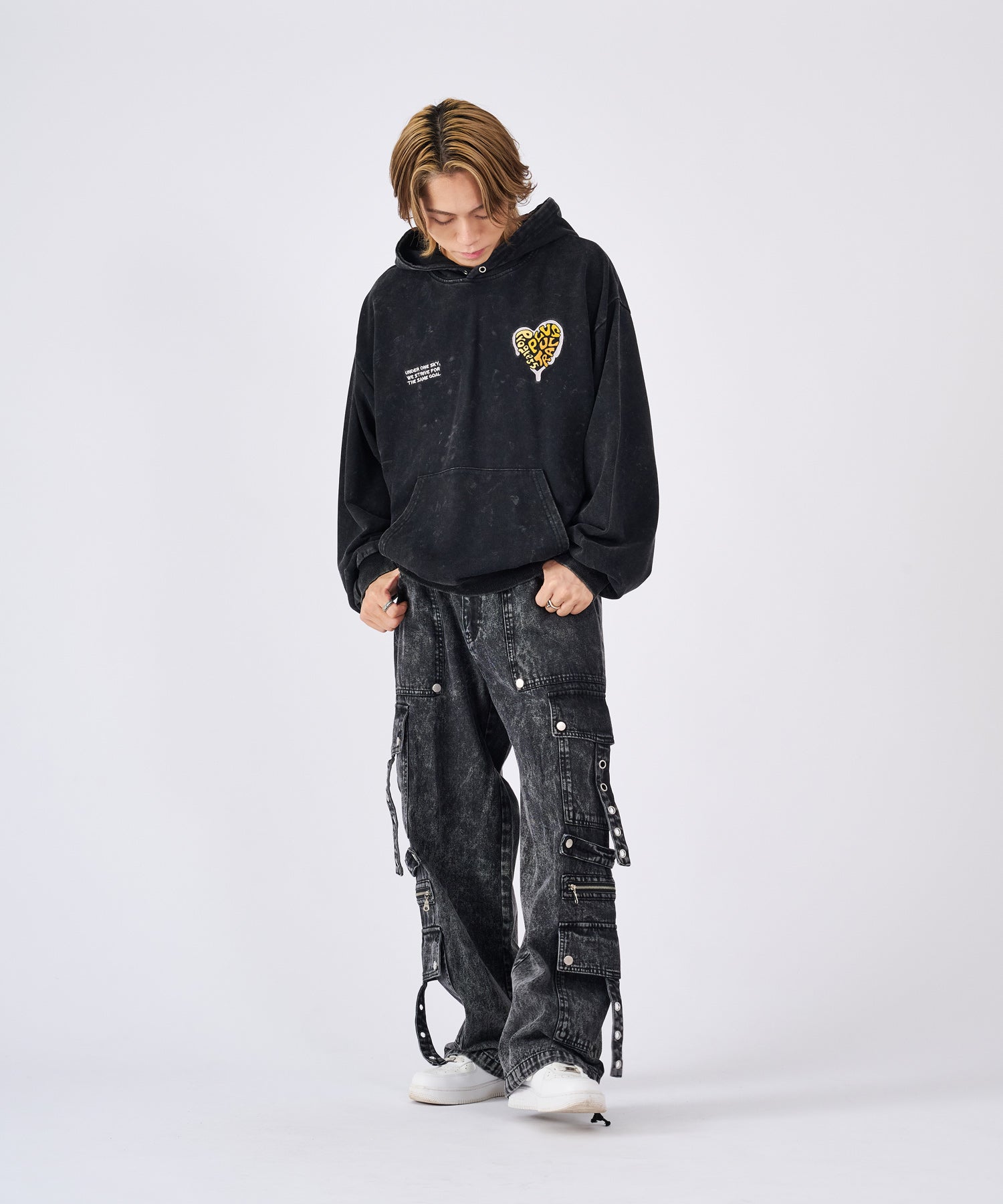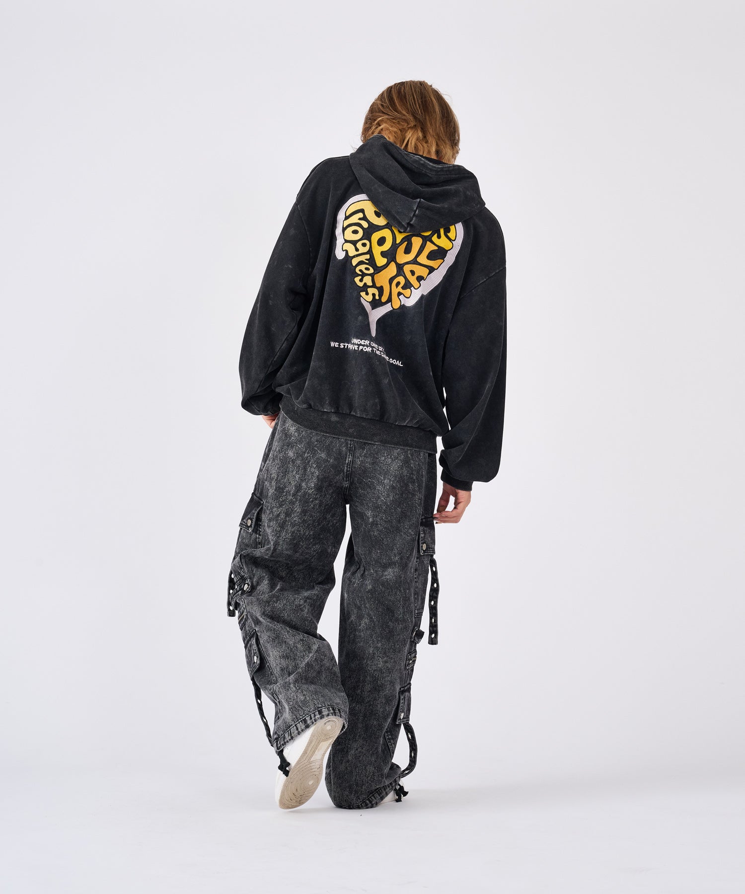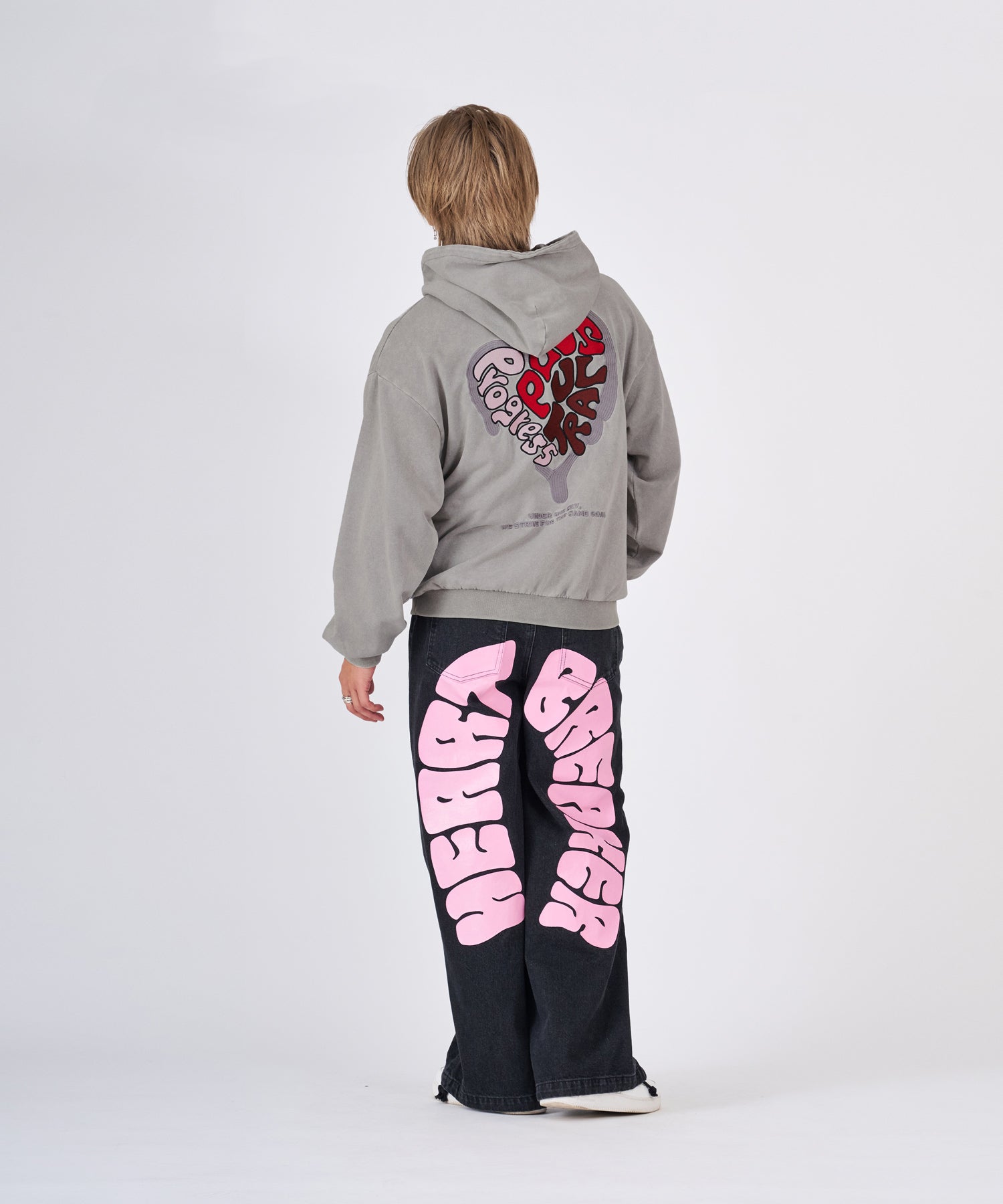 背中と胸のハート柄が人気のプルパーカー❤ハート柄になっているロゴは、カラーがグラデーションになっていて可愛い❤フロントにはポケットを設けたプルパーカーの定番的デザインなのでコーデにも合わせやすい♪