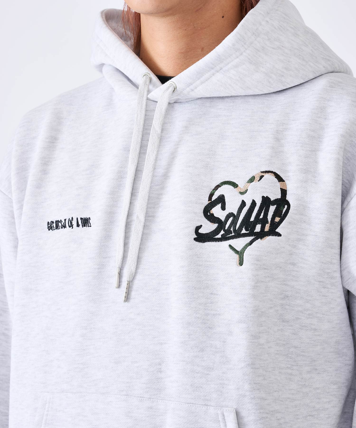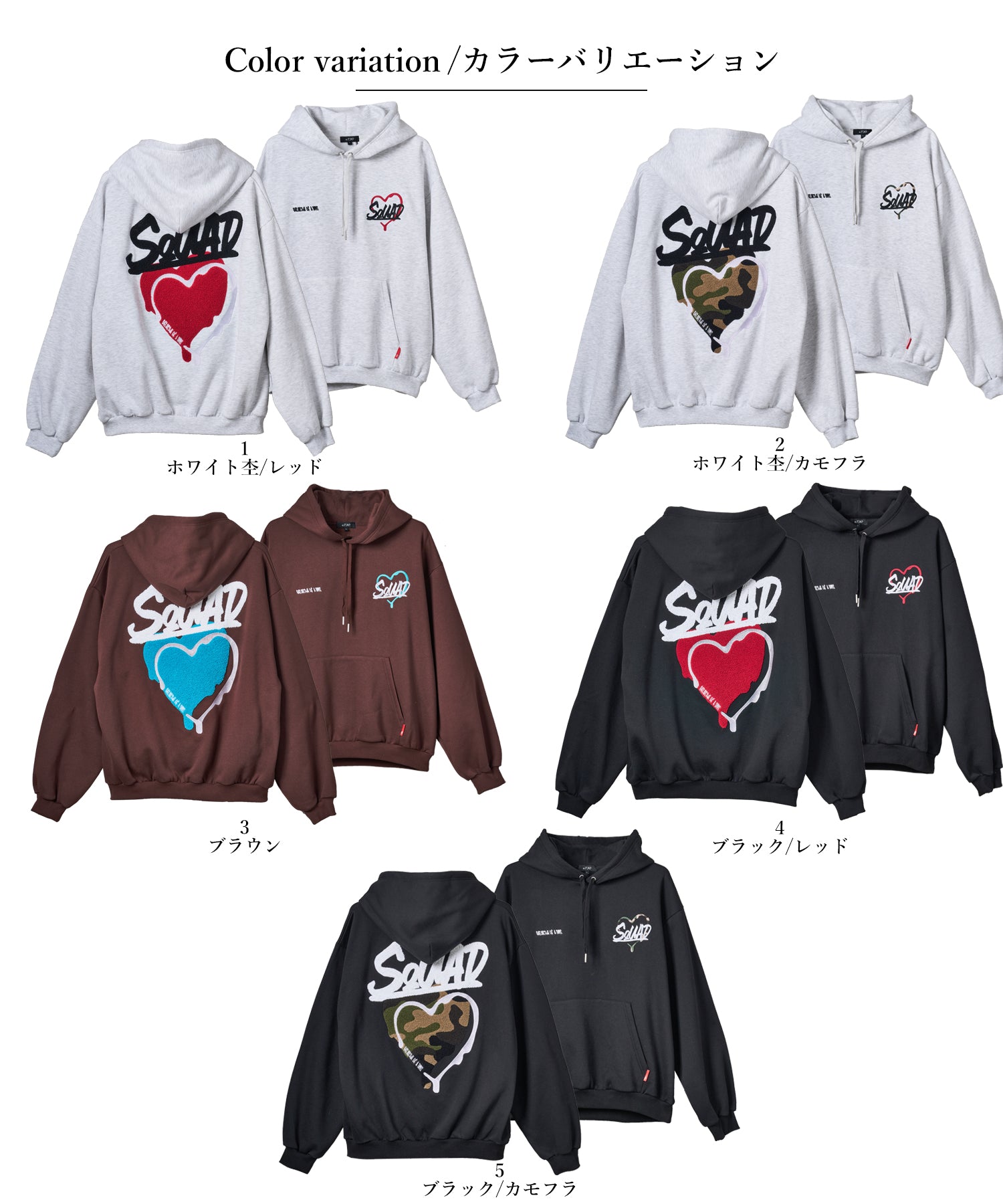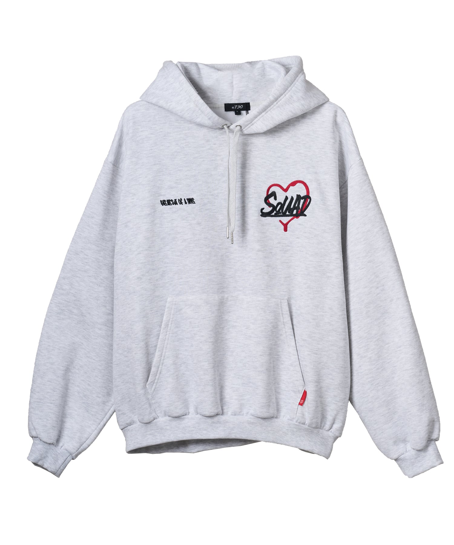 ハート型の刺繍が可愛いオーバーサイズのプルパーカー❤