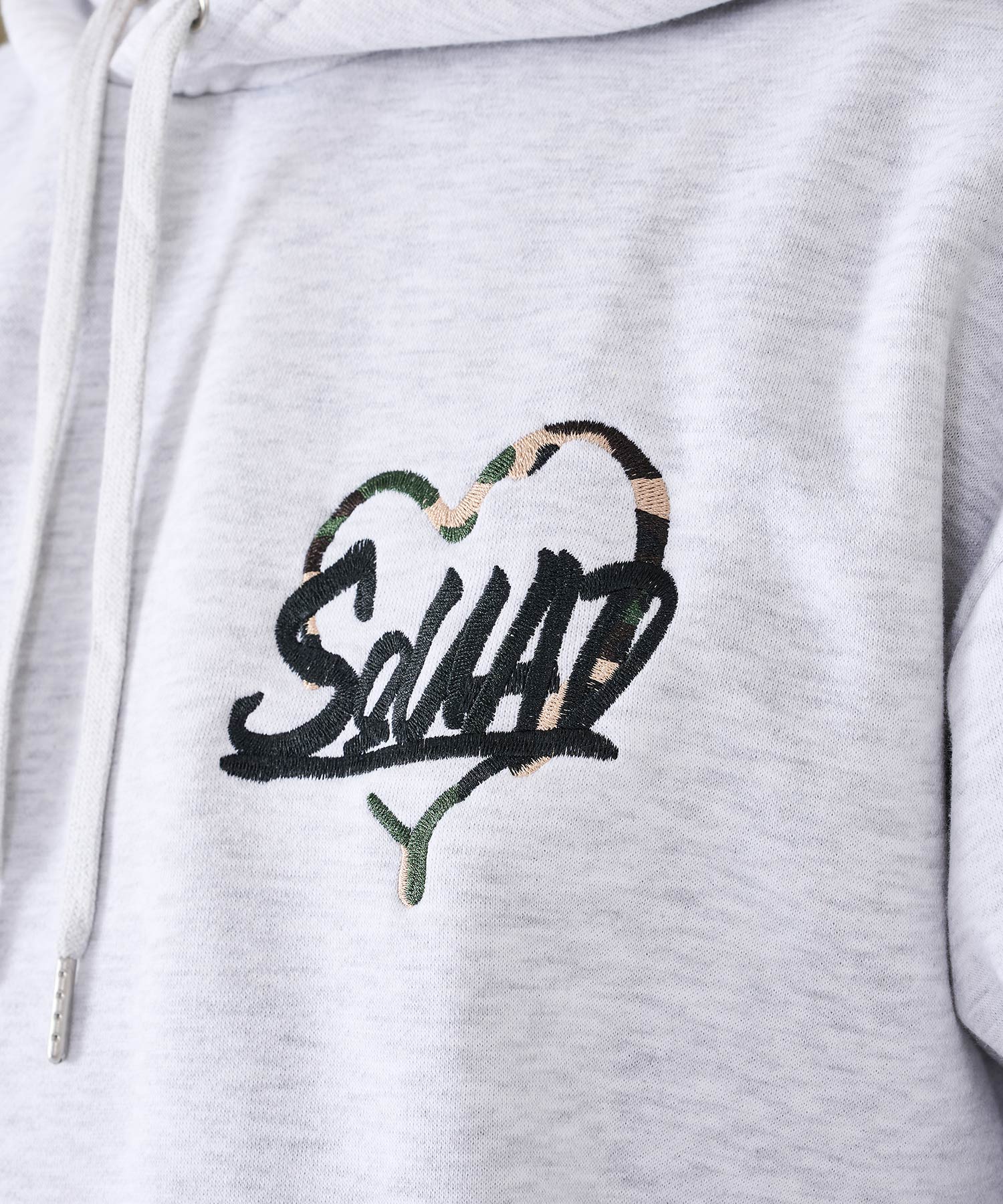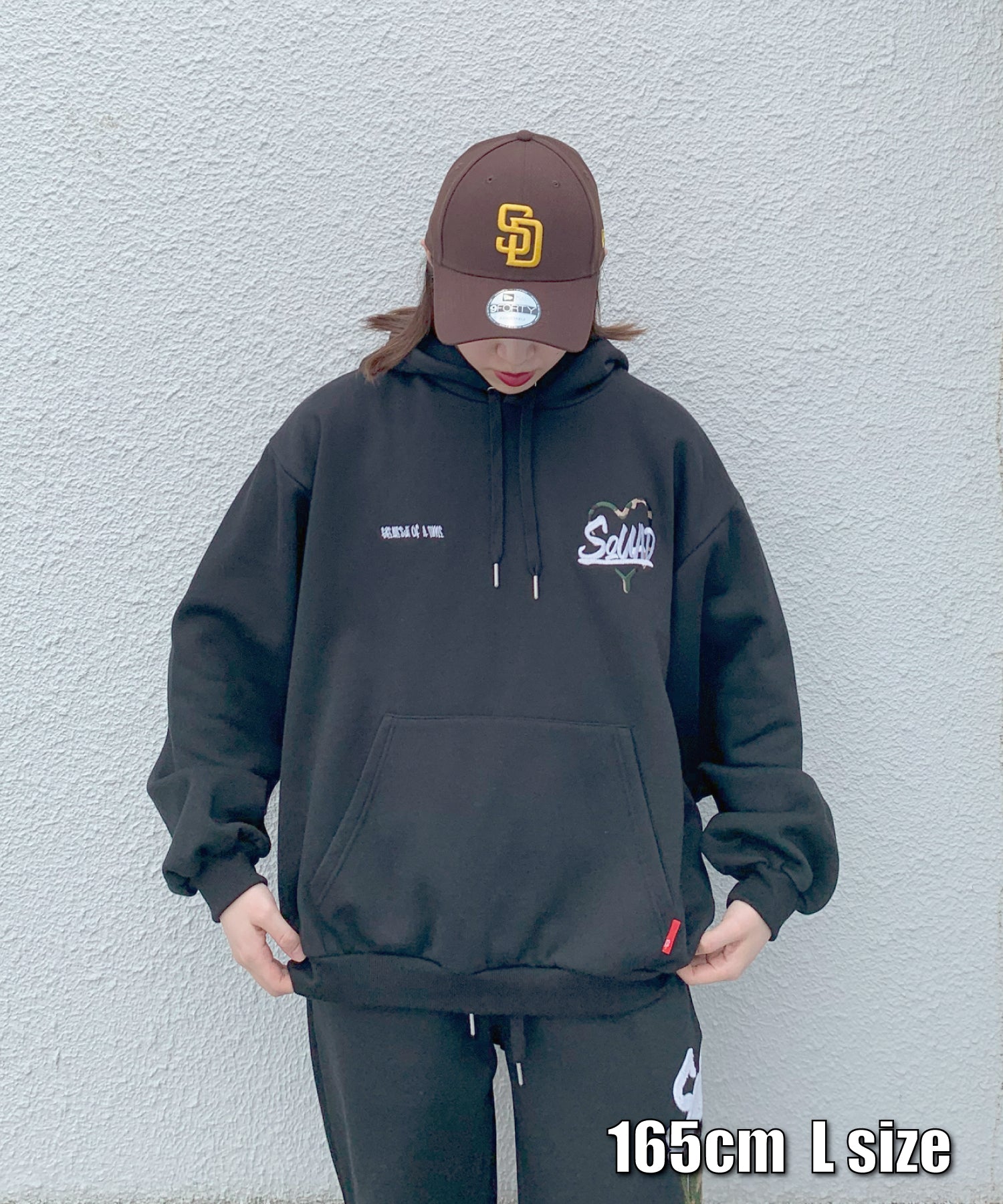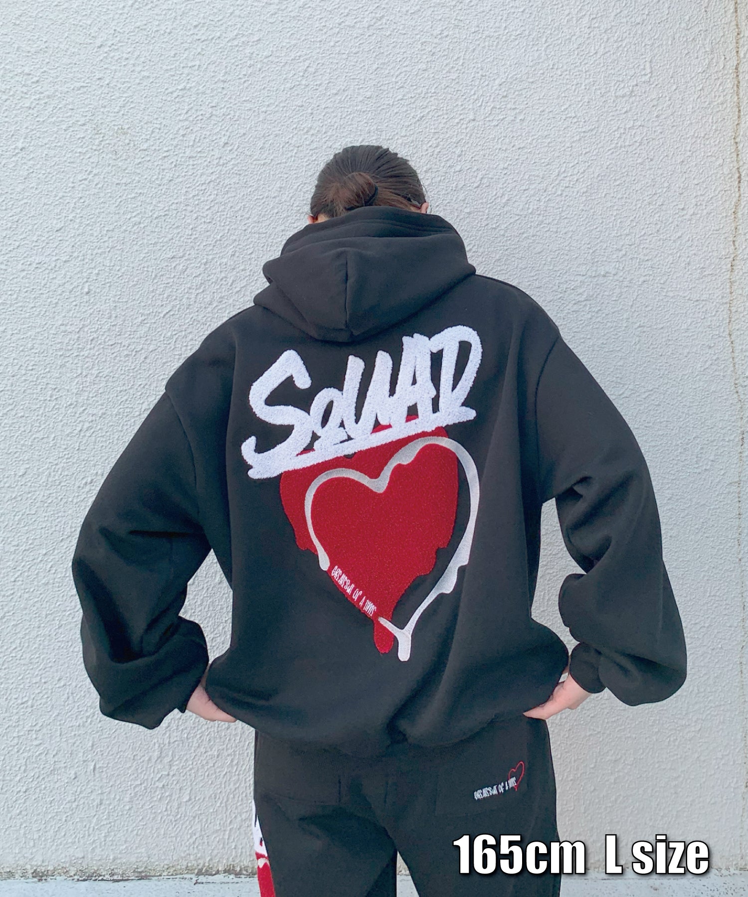 ハート型の刺繍が可愛いオーバーサイズのプルパーカー❤