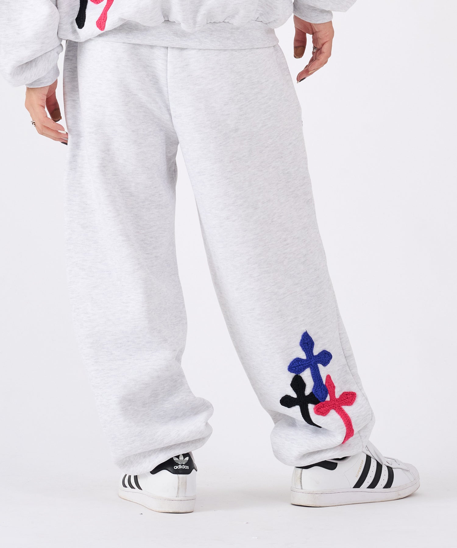 極太の糸を使ったクロスのアップリケ刺繍を配置することで存在感抜群のアイテム☆