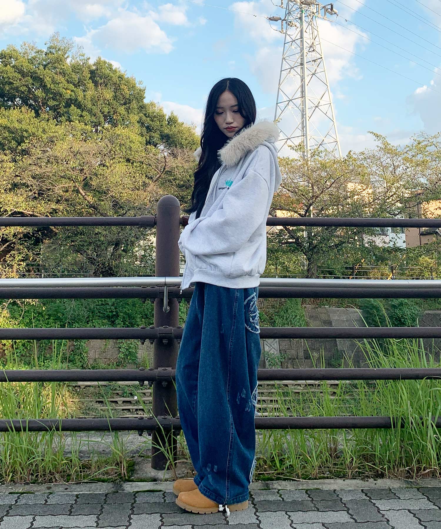 裏起毛のスウェット素材は、ボリュームがあってオーバーサイズなシルエットがより演出されて冬でも温かく着られます(^^)