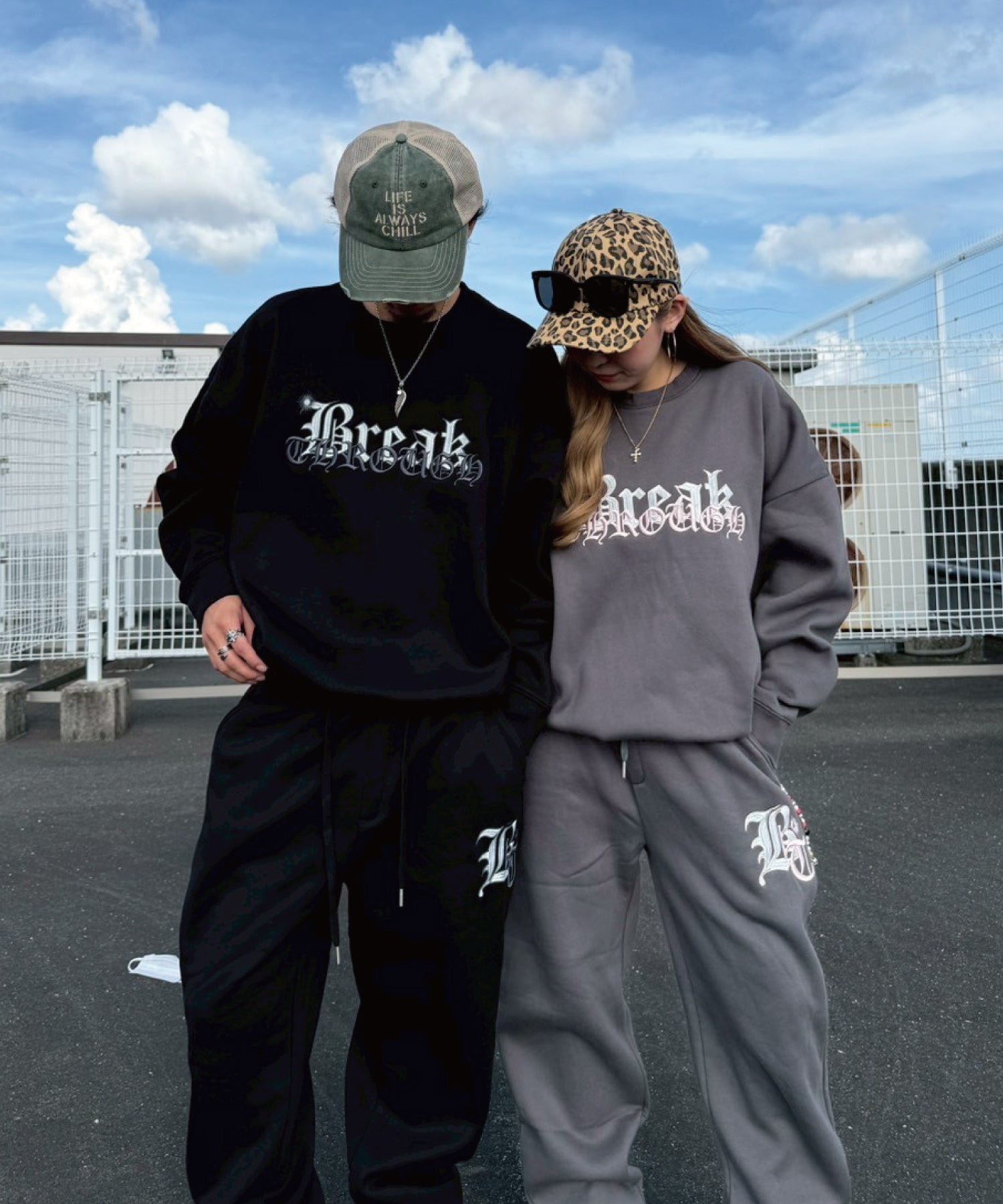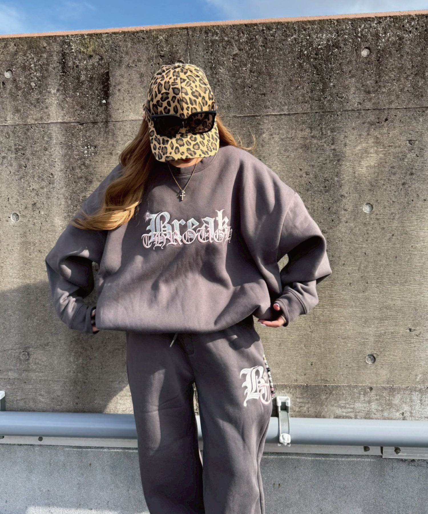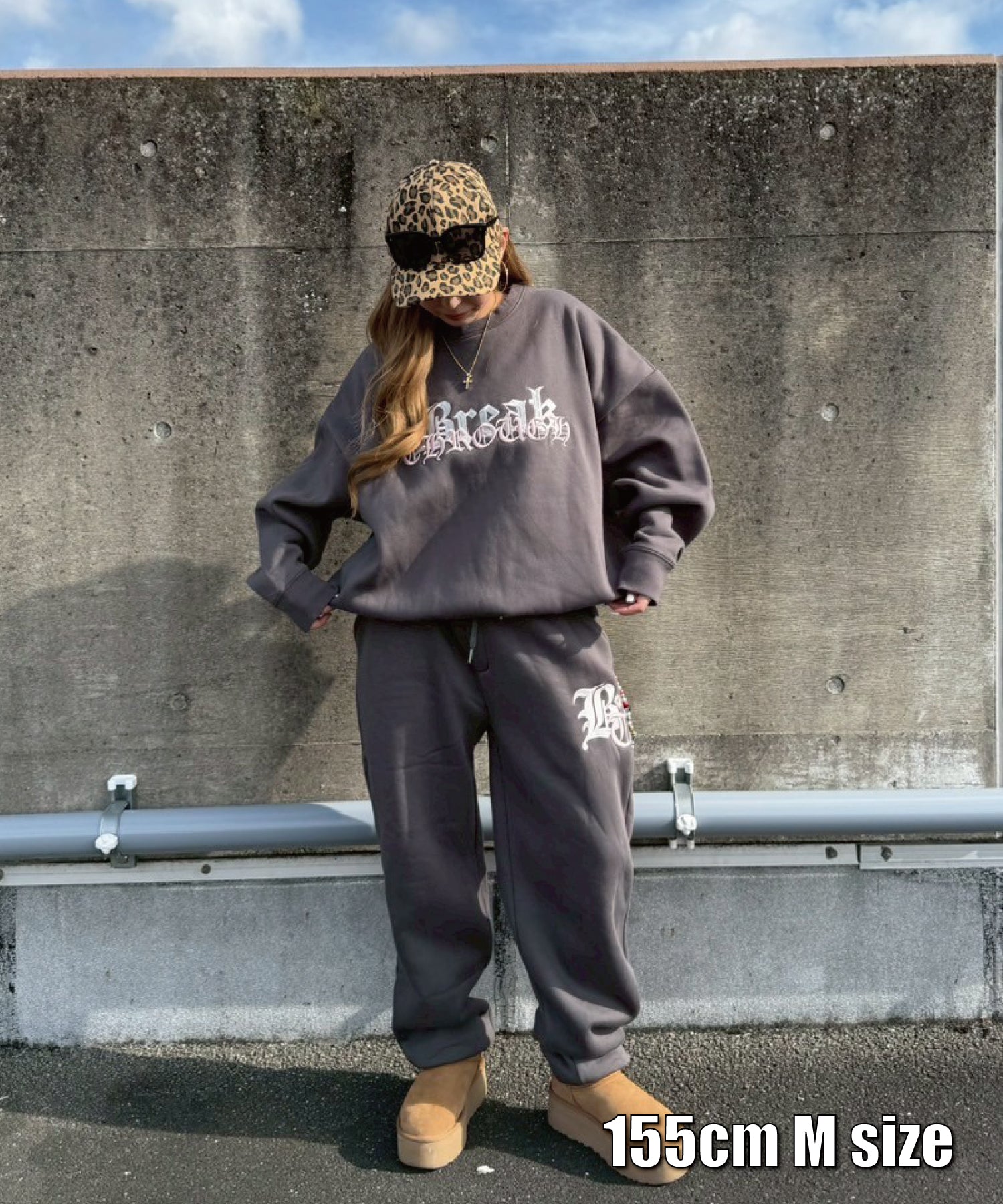 フロントの刺繍が可愛いスウェットとパンツのセットアップ☆