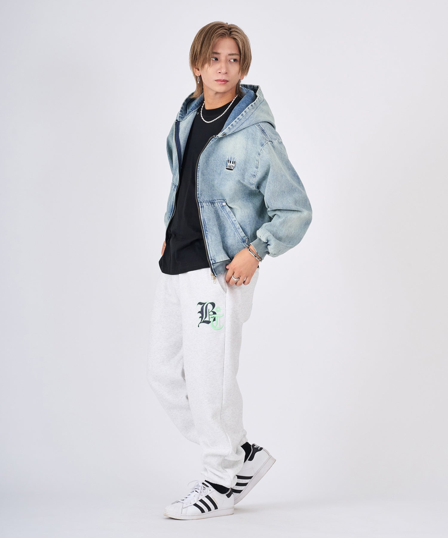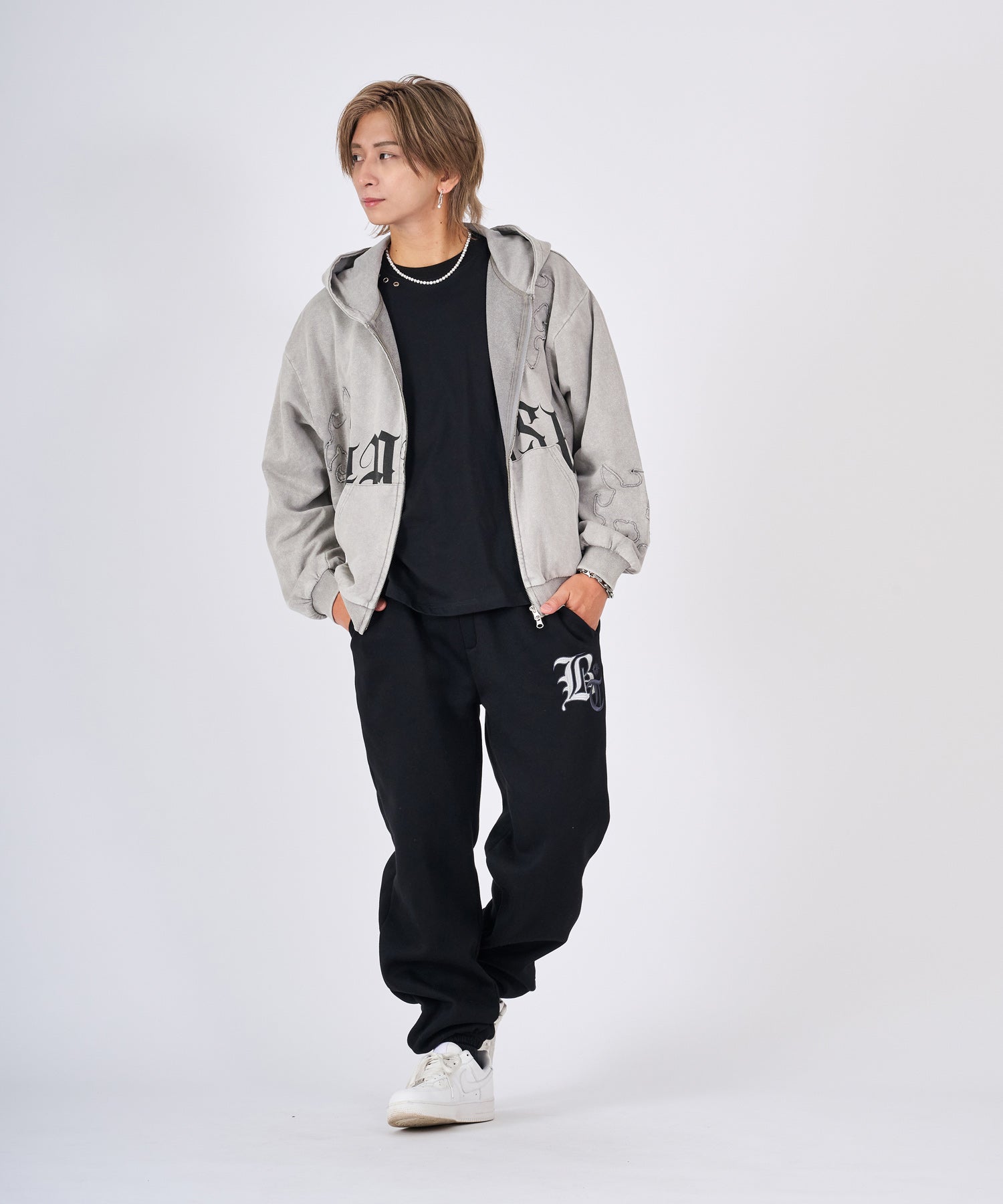 立体的なロゴ刺繍が印象的!裾は絞ったデザインでスニーカーにも相性抜群!!
