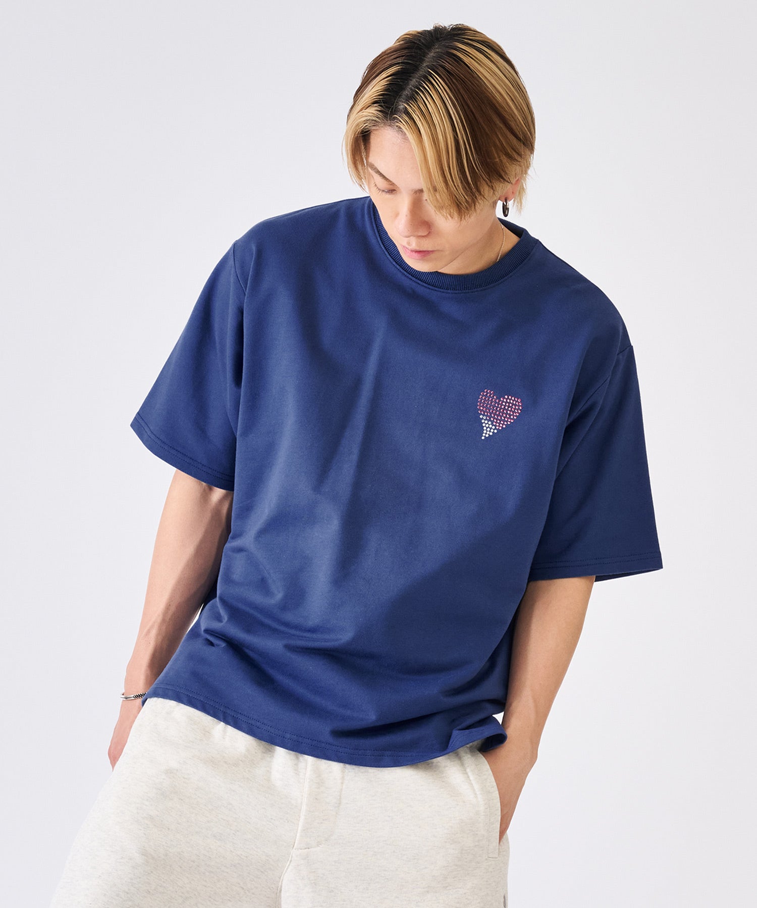 胸のワンポイントは2色のラインストーンを使ったハート型❤