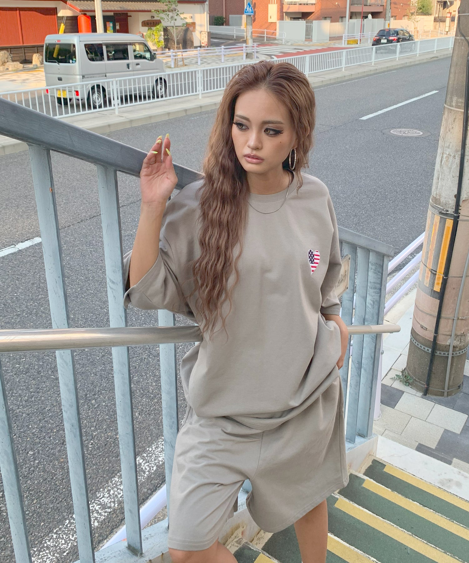 ハート柄が可愛いTシャツとショートパンツのセットアップ❤