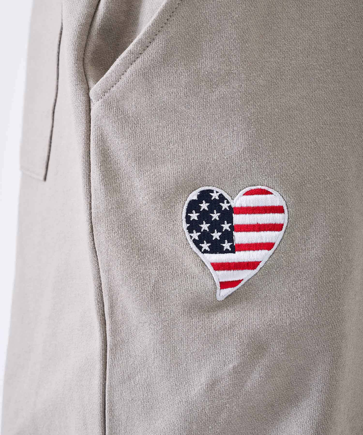 ワンポイントのハート型の刺繍は星条旗柄になっていて可愛い❤
