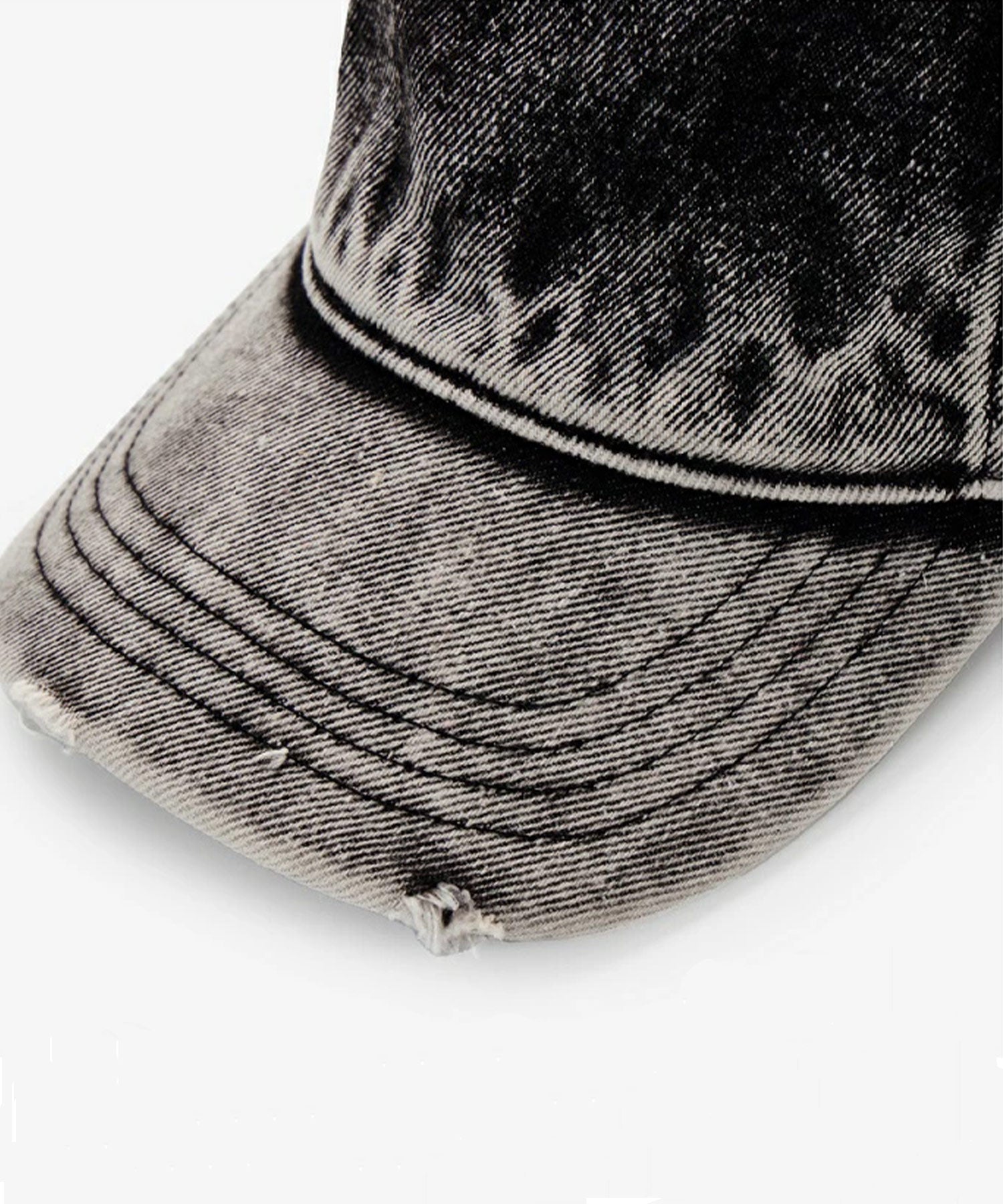 VARZARのオリジナルロゴメタルスタッズとサイズ調整部分のメタルパーツがアクセントになったシンプルなデザインかつヴィンテージ感のあるブリーチ加工が魅力的なアイテム☆